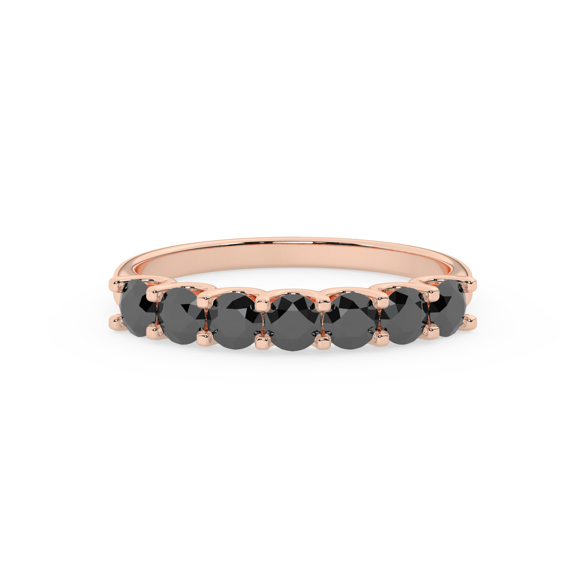 טבעת חצי איטרניטי שיבוץ יו קולקציה 4 דגם 50128B כסף מצופה זהב אדום רוזגולד משובצת אבני מעבדה מוסונייט שחורות במשקל כולל של 0.70 קראט עם תעודה גמולוגית