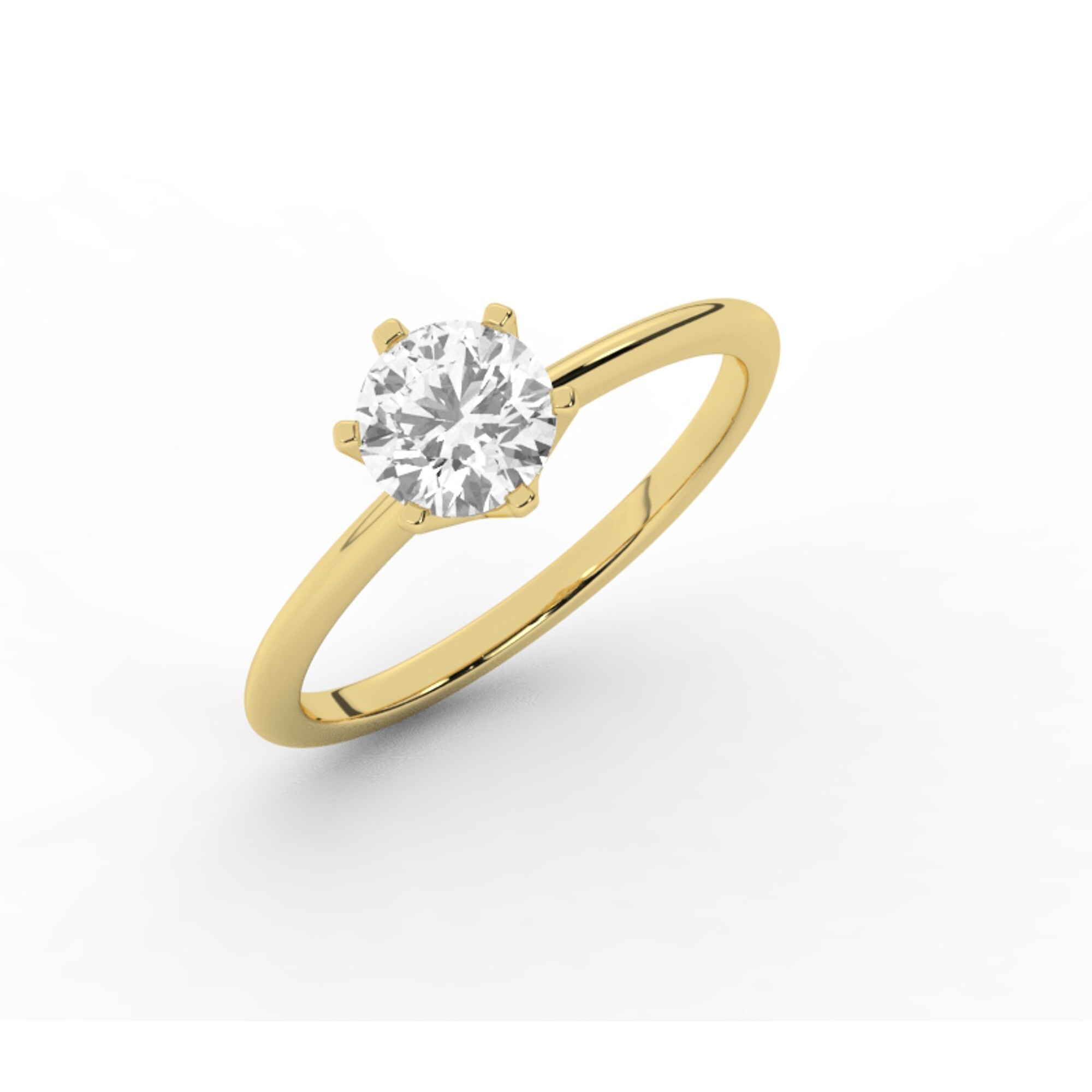 טבעת אירוסין סוליטר דגם 50023 כסף מצופה זהב צהוב במרכז אבן מעבדה מוסונייט במשקל כולל של 0.75 קראט בחיתוך עגול עם תעודה גמולוגית