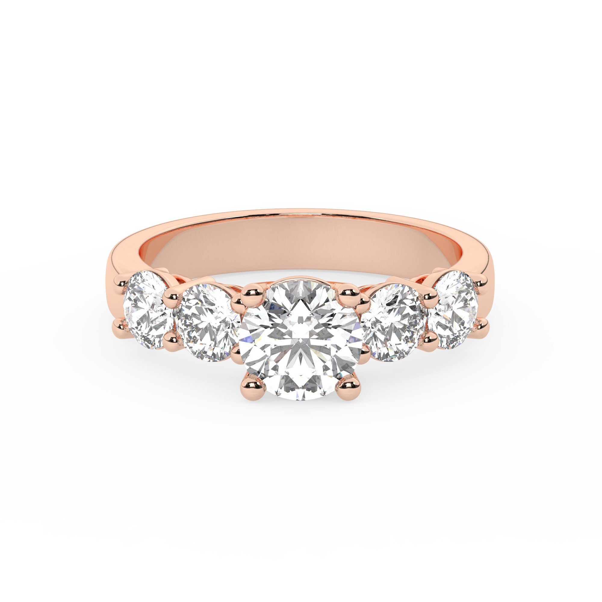 טבעת אירוסין סוליטר ומוסונייט בצדדים דגם 50030 כסף מצופה זהב אדום רוזגולד במרכז אבן מעבדה מוסונייט 1 קראט בחיתוך עגול עם תעודה גמולוגית בינלאומית GRA מסביב ובצדדים אבני מעבדה מוסונייט במשקל כולל של 1.08 קראט בחיתוך עגול