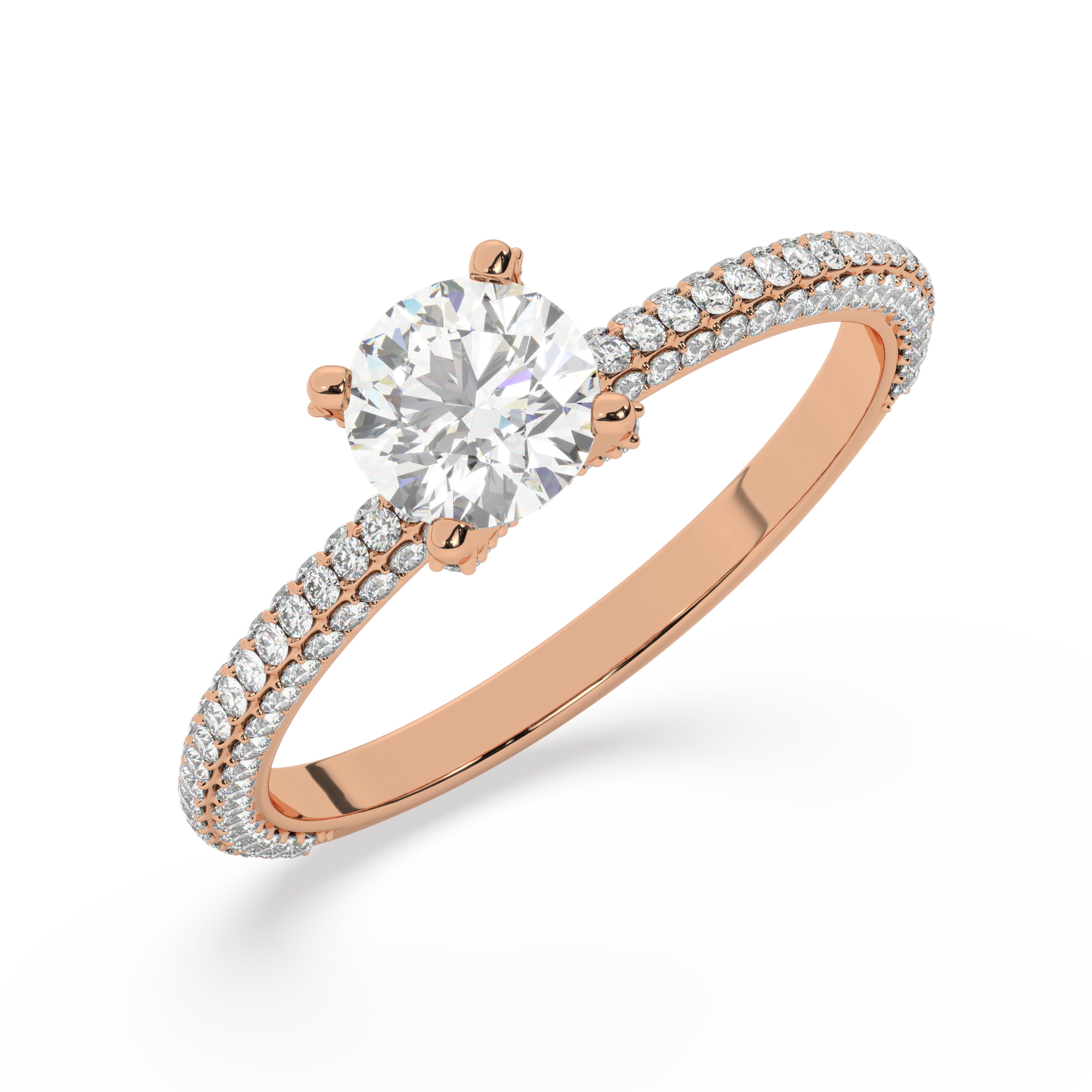 טבעת אירוסין סוליטר ויהלומים בצדדים דגם 50012 כסף מצופה זהב אדום רוזגולד במרכז אבן מעבדה מוסונייט 1.50 קראט בחיתוך עגול עם תעודה גמולוגית בינלאומית GRA מסביב ובצדדים אבני מעבדה מוסונייט במשקל כולל של 0.40 קראט בחיתוך עגול
