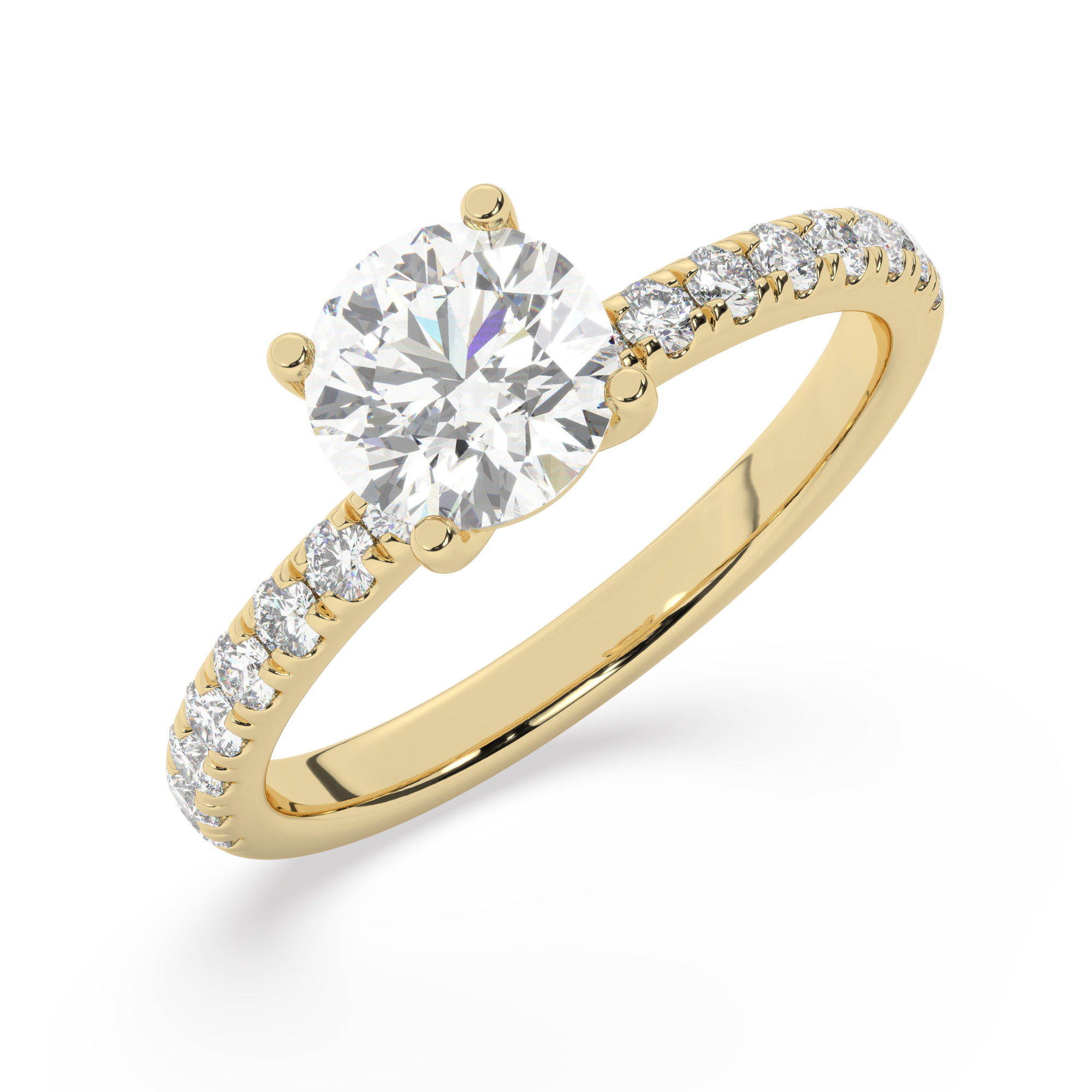 טבעת אירוסין סוליטר ומוסונייט בצדדים דגם 50037 כסף מצופה זהב צהוב במרכז אבן מעבדה מוסונייט 1.50 קראט בחיתוך עגול עם תעודה גמולוגית בינלאומית GRA מסביב ובצדדים אבני מעבדה מוסונייט במשקל כולל של 0.32 קראט בחיתוך עגול