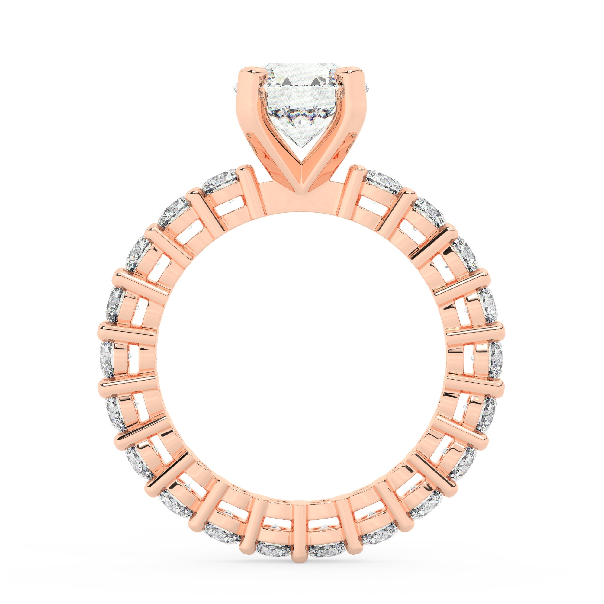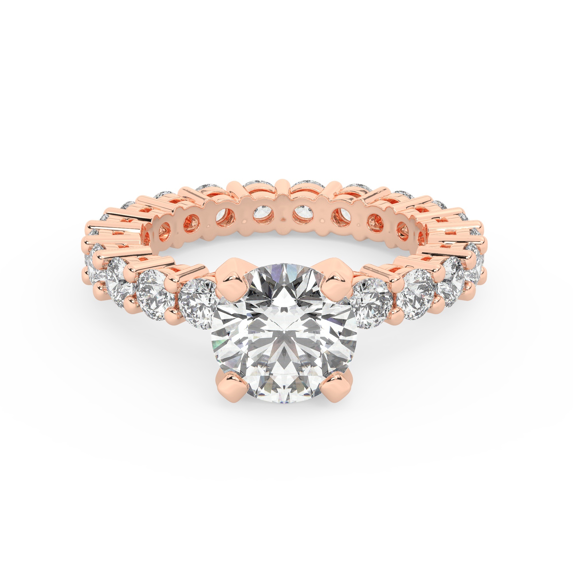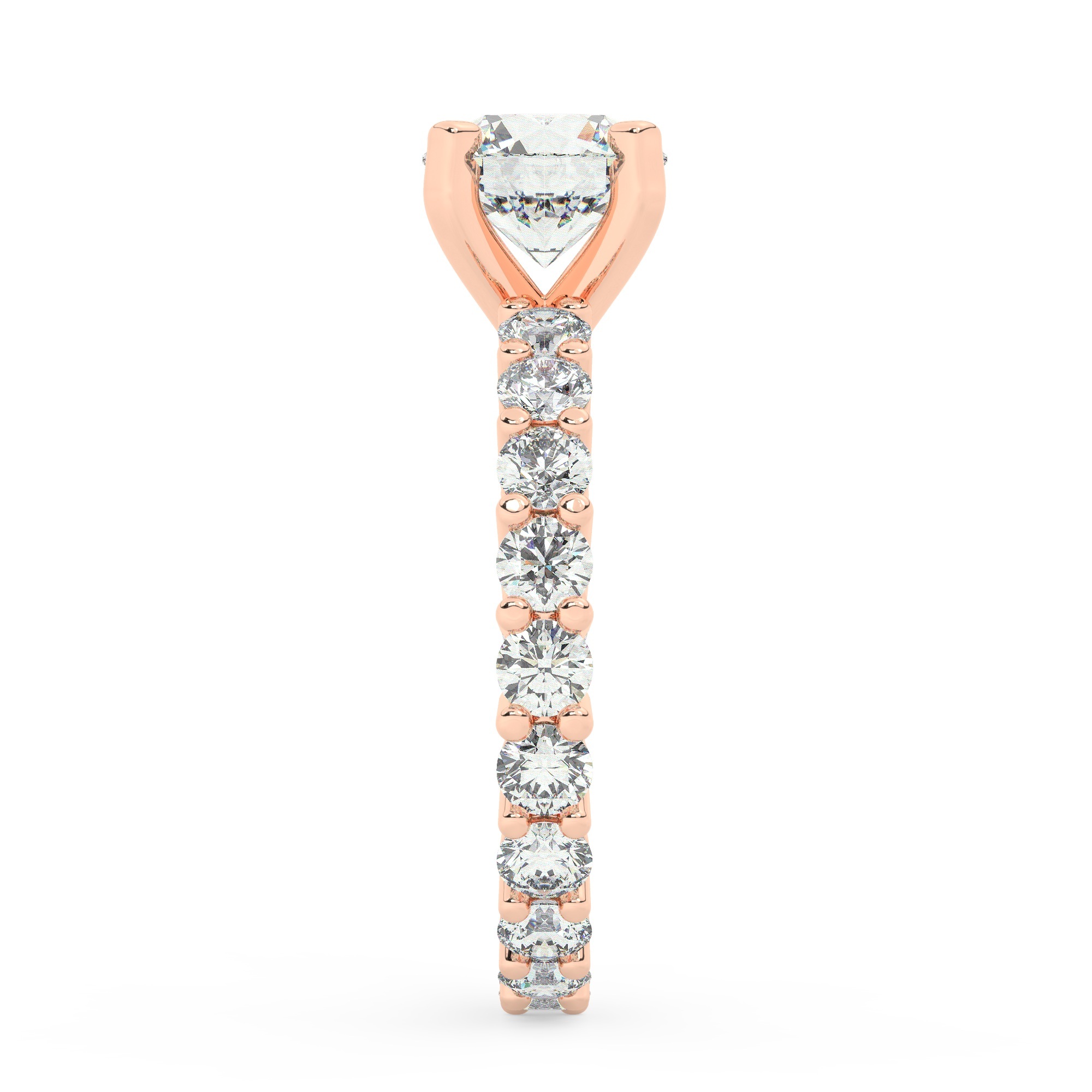 טבעת אירוסין סוליטר ומוסונייט בצדדים איטרנטיני דגם 50044 כסף מצופה זהב אדום רוזגולד במרכז אבן מעבדה מוסונייט 2 קראט בחיתוך עגול עם תעודה גמולוגית בינלאומית GRA מסביב ובצדדים אבני מעבדה מוסונייט במשקל כולל של 1.80 קראט בחיתוך עגול