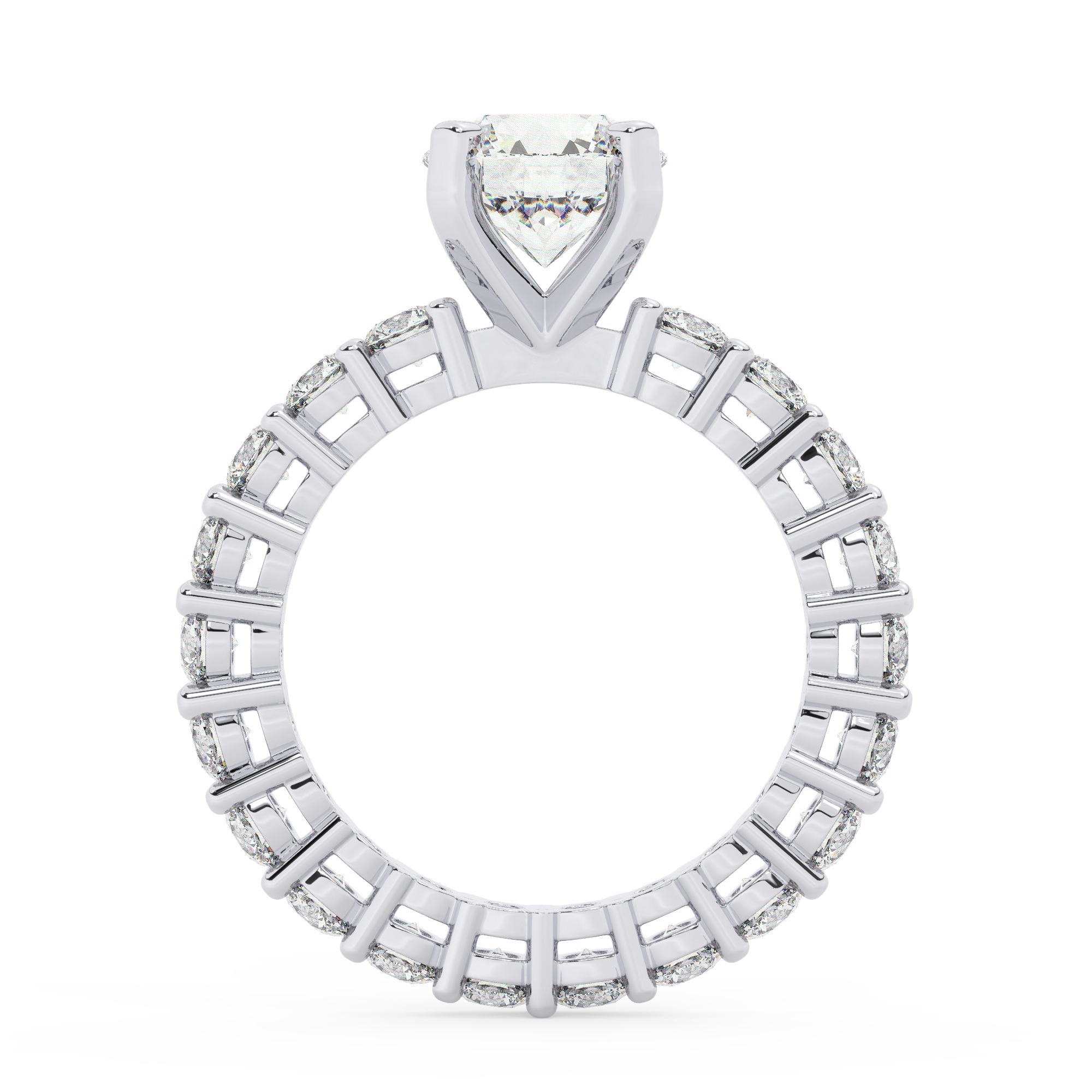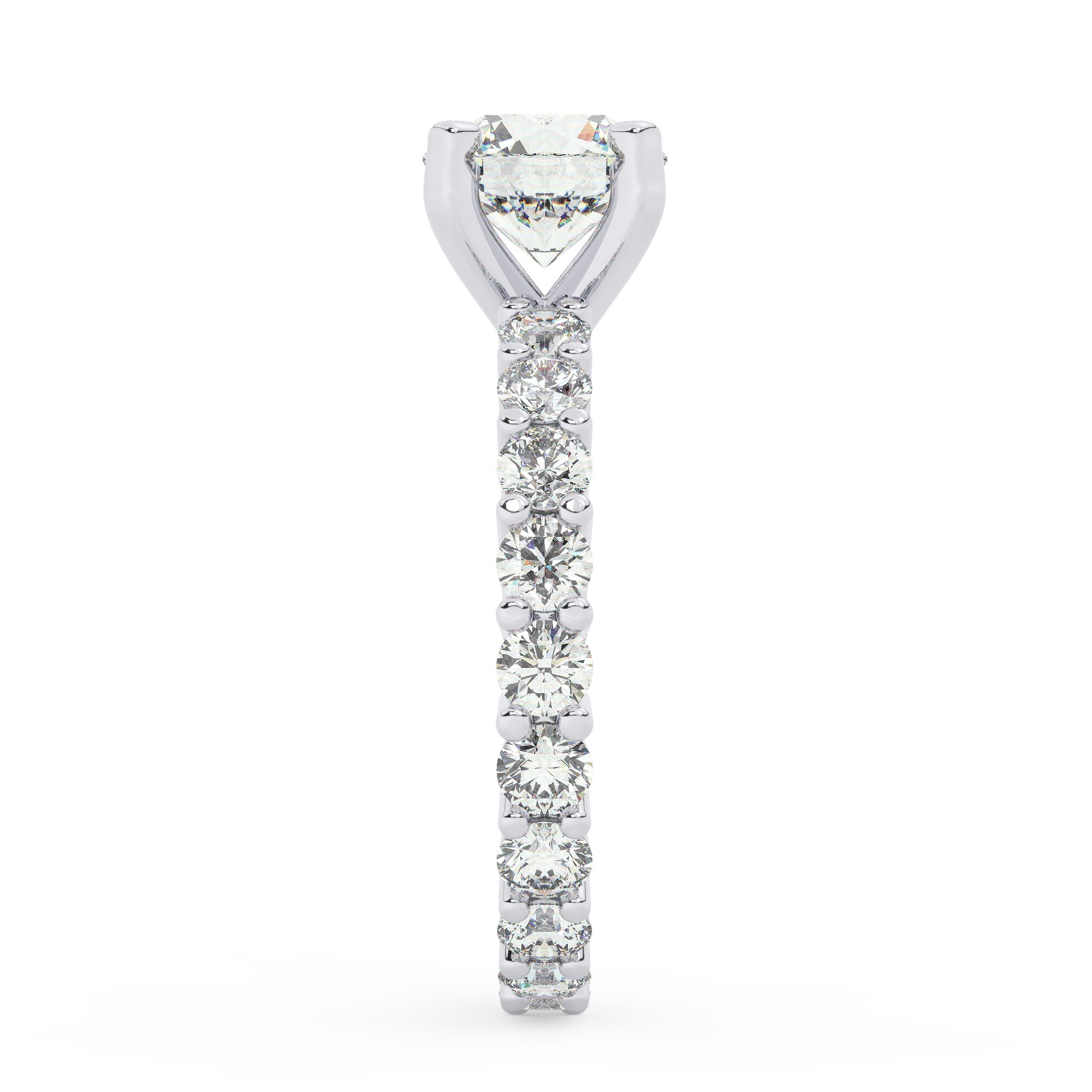 מסביב לאבן הגדולה, ממתינות 20 אבנים צדדיות נוספות, שגם הן עשויות מעבני מעבדה מוסונייט נבחרות, אשר לוכדות את האור ויוצרות זוהר מהמם. משקל האבנים הצדדיות עומד על 1.80 קרט – זהו טוטל מדהים מכל הבחינות.