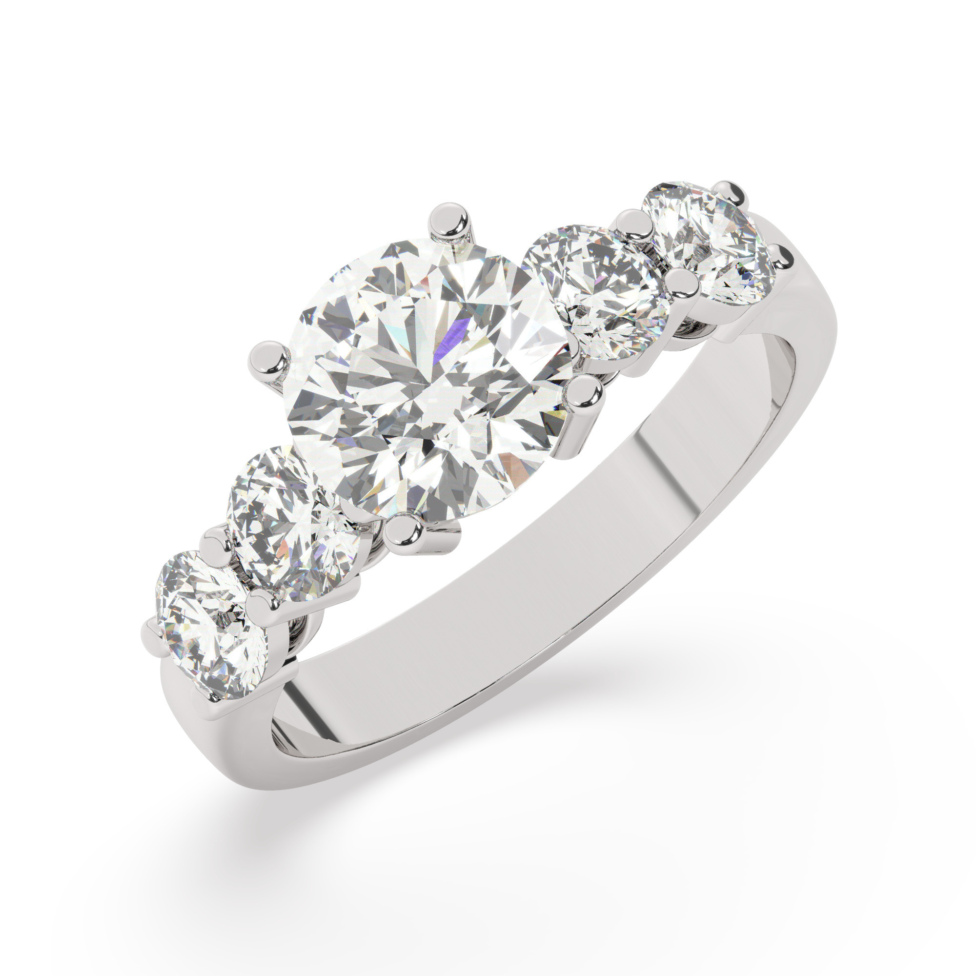 בחרו בטבעת האירוסין המיוחדת הזאת שתהפוך כל רגע למיוחד יותר. טבעת אבני מעבדה מוסונייט עם עיצוב סוליטר איכותי הכוללת ארבע אבנים צדדיות ששולבות בצורה הרמונית עם האבן המרכזית המפוארת. האבן המרכזית, מואיסנייט עגולה במשקל 2.50 קראט, מציעה ברק יוצא דופן וכח בלתי רגיל. צבעה המובחר D וניקיונה VVS1 מעניקים לתכשיט מתנה נפלאה לכל אישה שתשמח בה.
