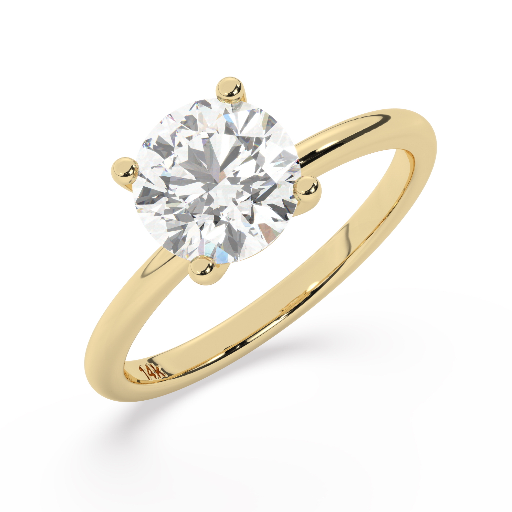 טבעת אירוסין סוליטר דגם 50016 זהב צהוב 14 קראט במרכז אבן מעבדה מוסונייט במשקל כולל של 2.50 קראט בחיתוך עגול עם תעודה גמולוגית בינלאומית GRA