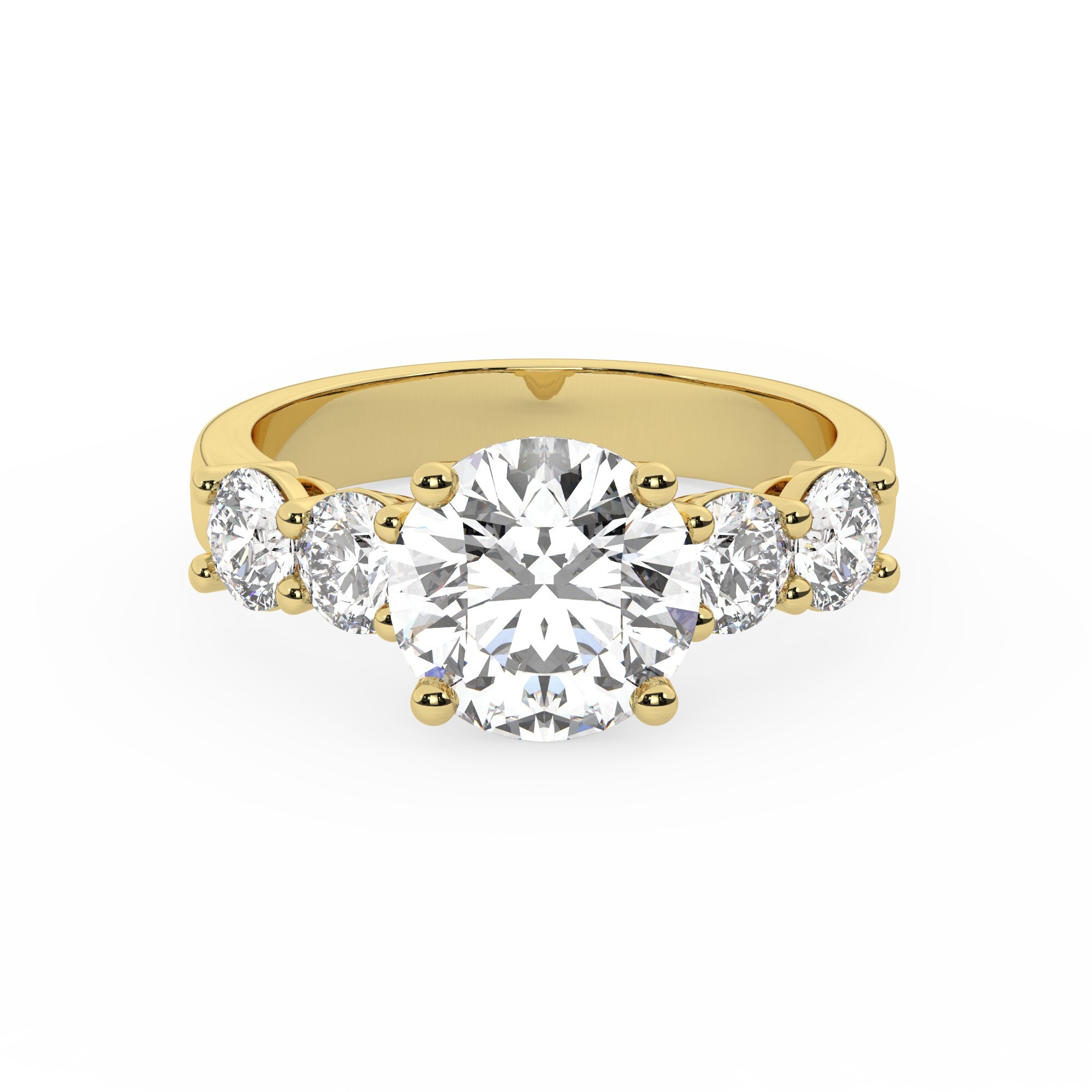 טבעת אירוסין סוליטר ומוסונייט בצדדים דגם 50030 כסף מצופה זהב צהוב במרכז אבן מעבדה מוסונייט 3 קראט בחיתוך עגול עם תעודה גמולוגית בינלאומית GRA מסביב ובצדדים אבני מעבדה מוסונייט במשקל כולל של 1.08 קראט בחיתוך עגול