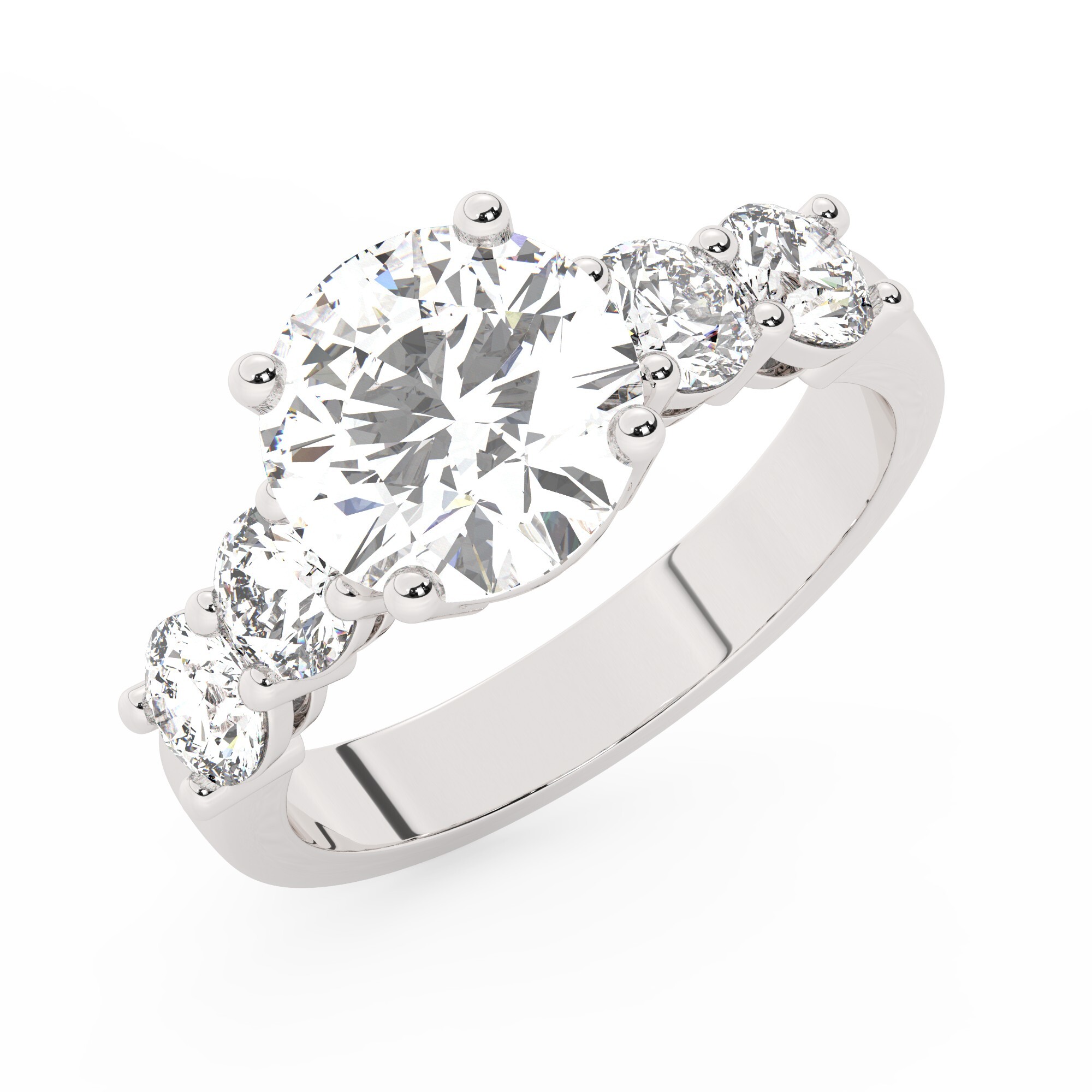 טבעת אירוסין סוליטר ומוסונייט בצדדים דגם 50030 כסף מצופה זהב לבן במרכז אבן מעבדה מוסונייט 4 קראט בחיתוך עגול עם תעודה גמולוגית בינלאומית GRA מסביב ובצדדים אבני מעבדה מוסונייט במשקל כולל של 1.08 קראט בחיתוך עגול