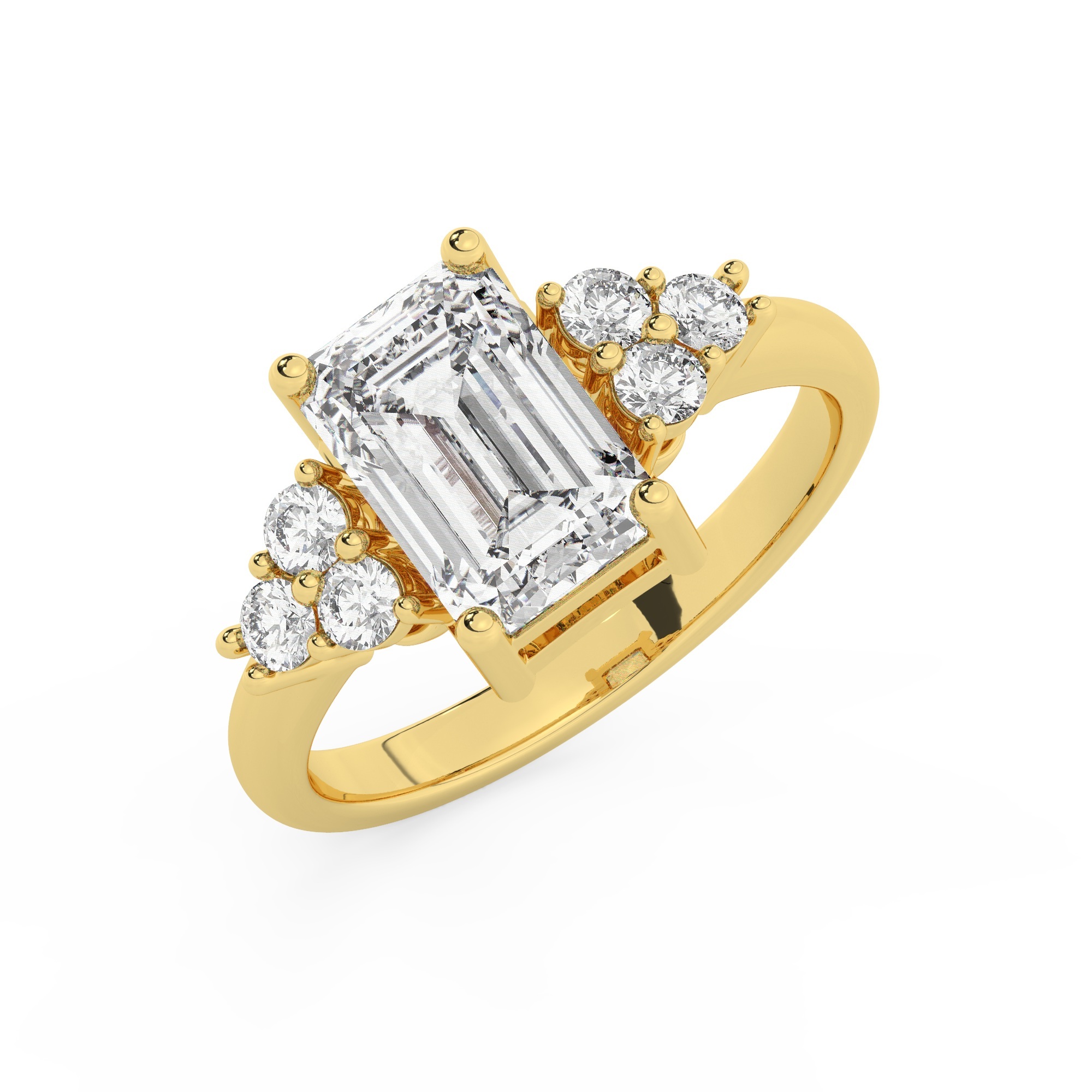 טבעת אירוסין סוליטר ויהלומים בצדדים דגם 50041 זהב צהוב 14 קראט במרכז יהלום טבעי 2 קראט בחיתוך אמרלד עם תעודה גמולוגית אמריקאית GIA מסביב ובצדדים יהלומים טבעים במשקל כולל של 0.30 קראט בחיתוך עגול