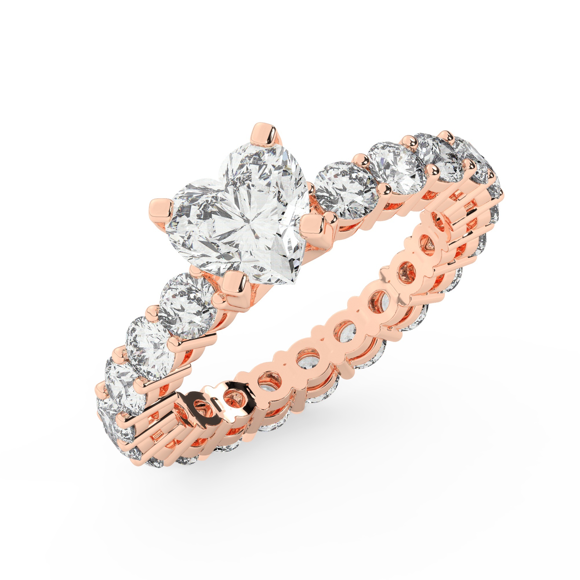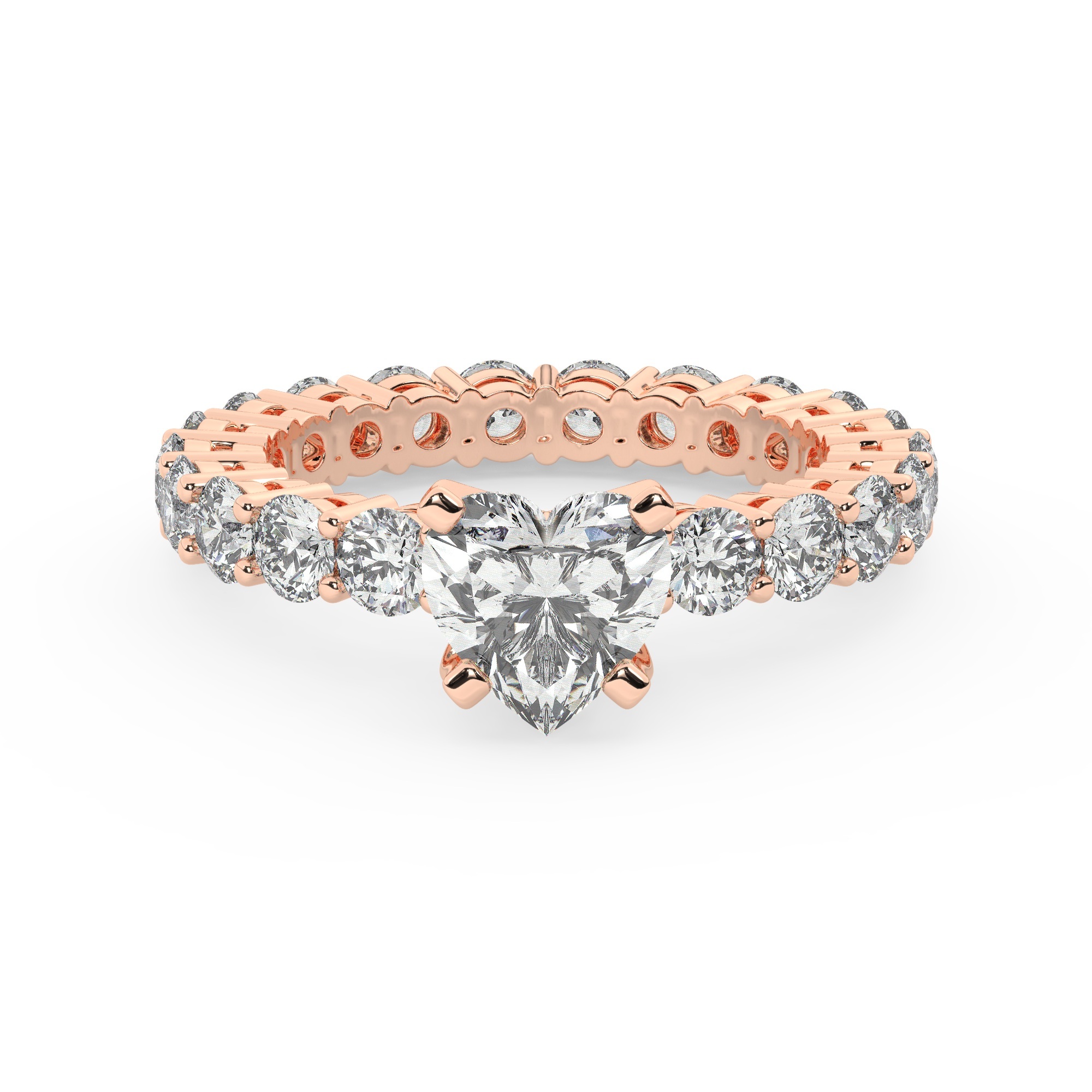 טבעת אירוסין סוליטר ויהלומים בצדדים איטרנטיני דגם 50044 זהב אדום רוזגולד 14 קראט במרכז יהלום טבעי 0.50 קראט בחיתוך לב עם תעודה גמולוגית אמריקאית GIA מסביב ובצדדים יהלומים טבעים במשקל כולל של 1.80 קראט בחיתוך עגול