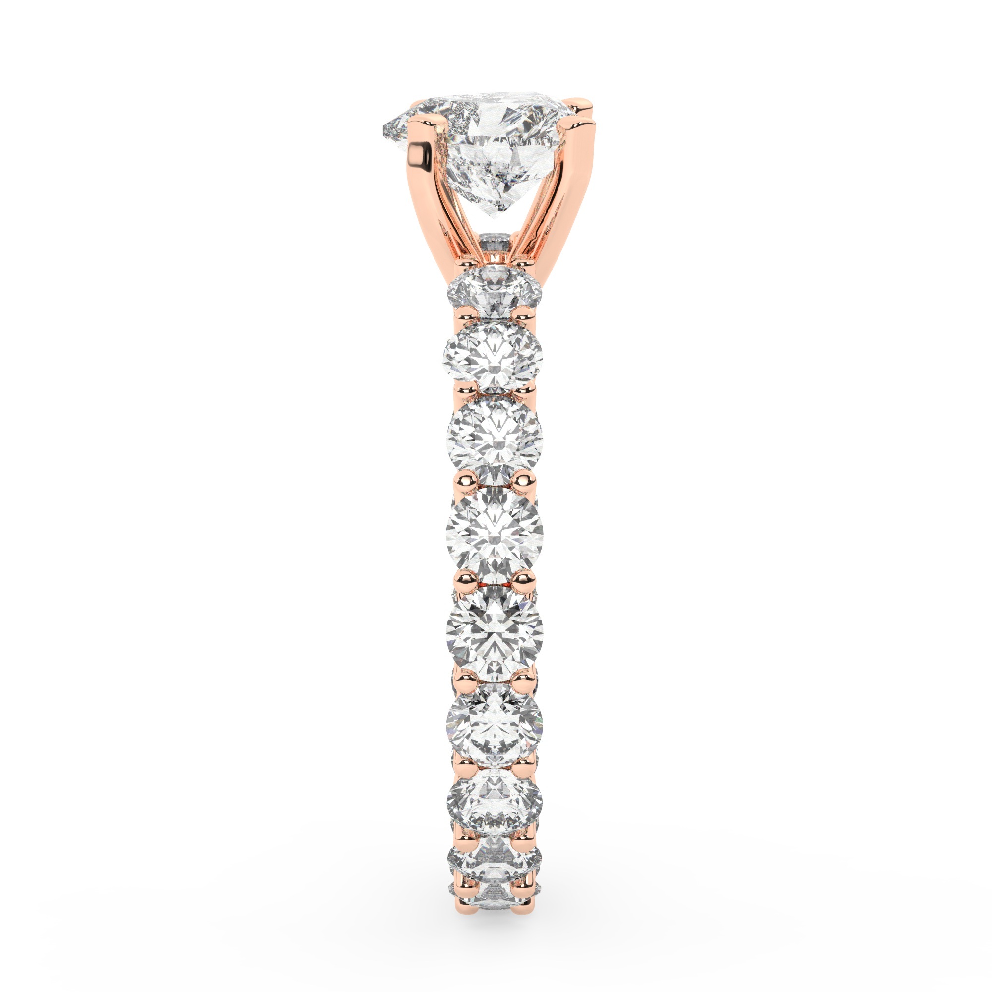 30% הנחהטבעת איטרניטי זהב אדום רוז גולד משובצת 22 יהלומים טבעיים בגודל של 0.10 קראט כל אחד לכל אורך הטבעת מידה 15