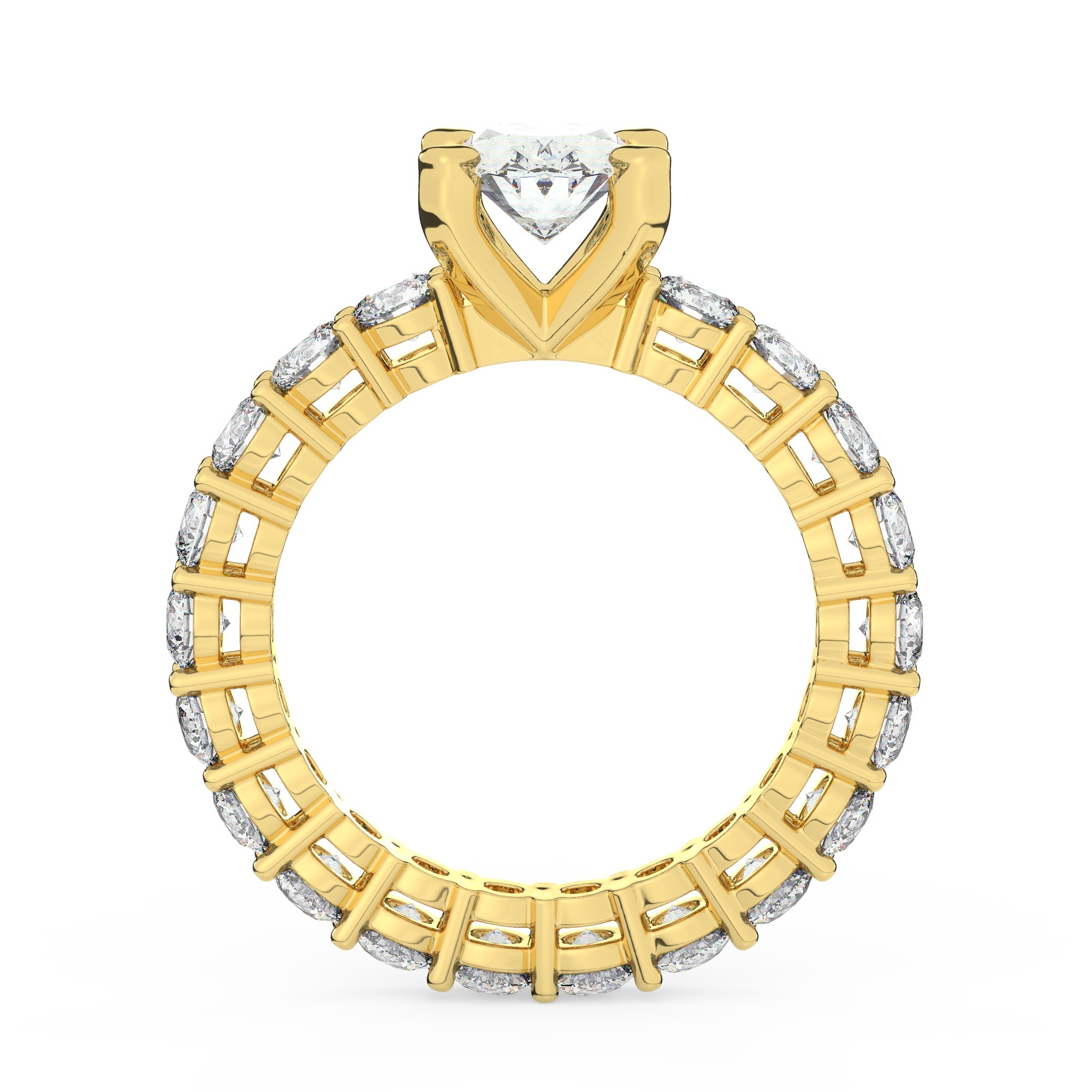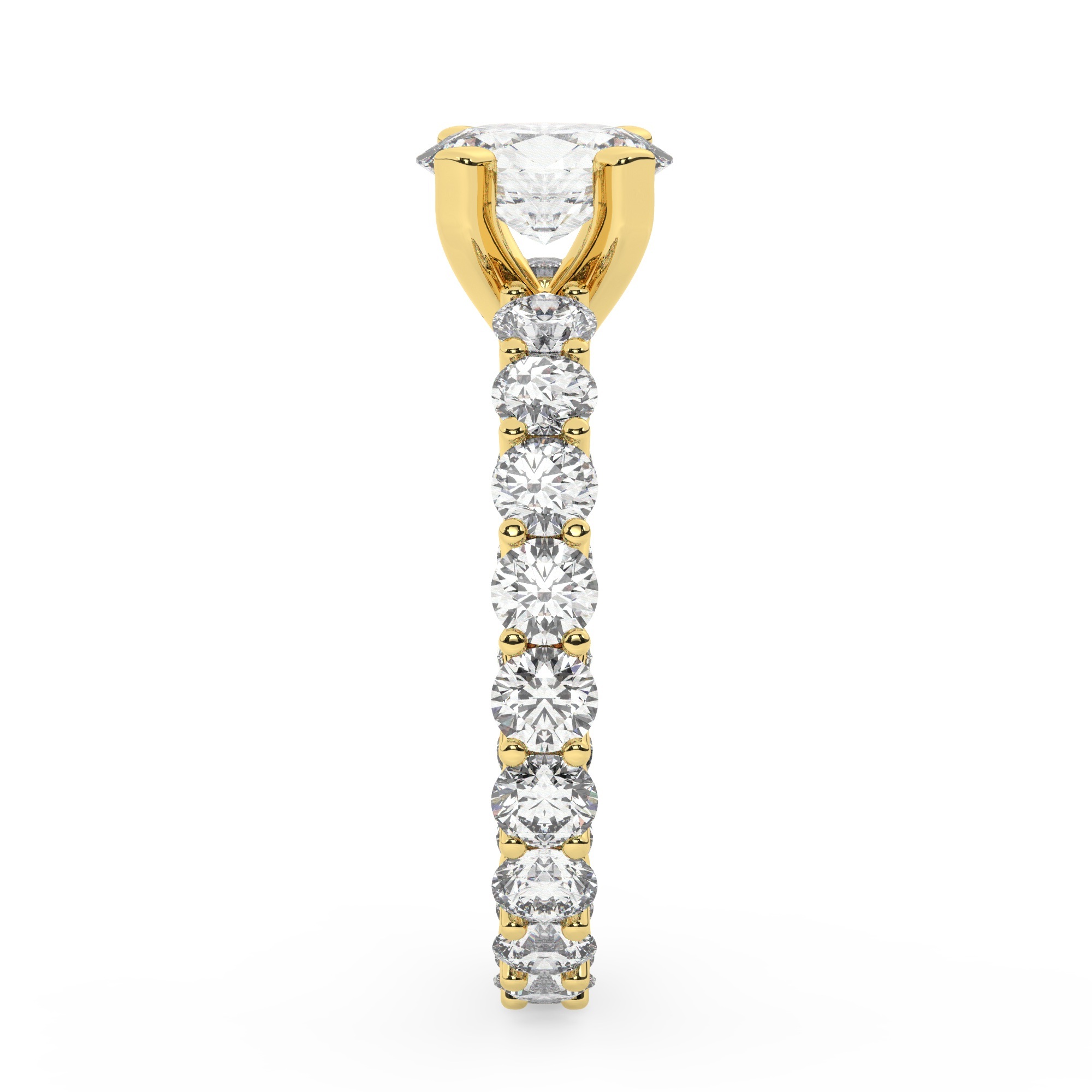 טבעת אירוסין סוליטר ויהלומים בצדדים איטרנטיני דגם 50044 זהב צהוב 14 קראט במרכז יהלום טבעי 0.75 קראט בחיתוך אובל עם תעודה גמולוגית אמריקאית GIA מסביב ובצדדים יהלומים טבעים במשקל כולל של 1.80 קראט בחיתוך עגול