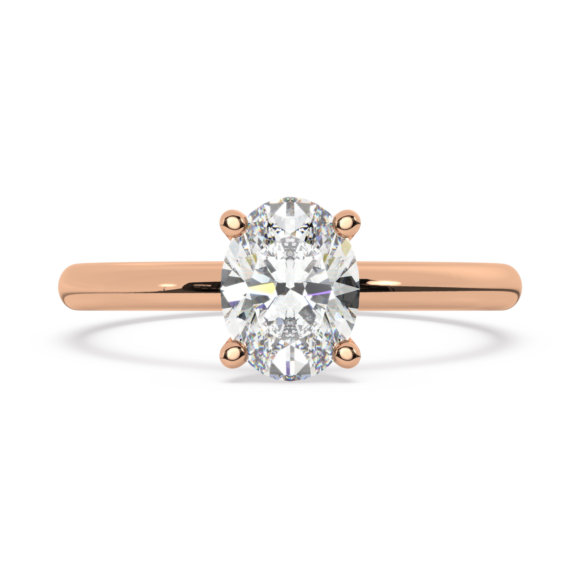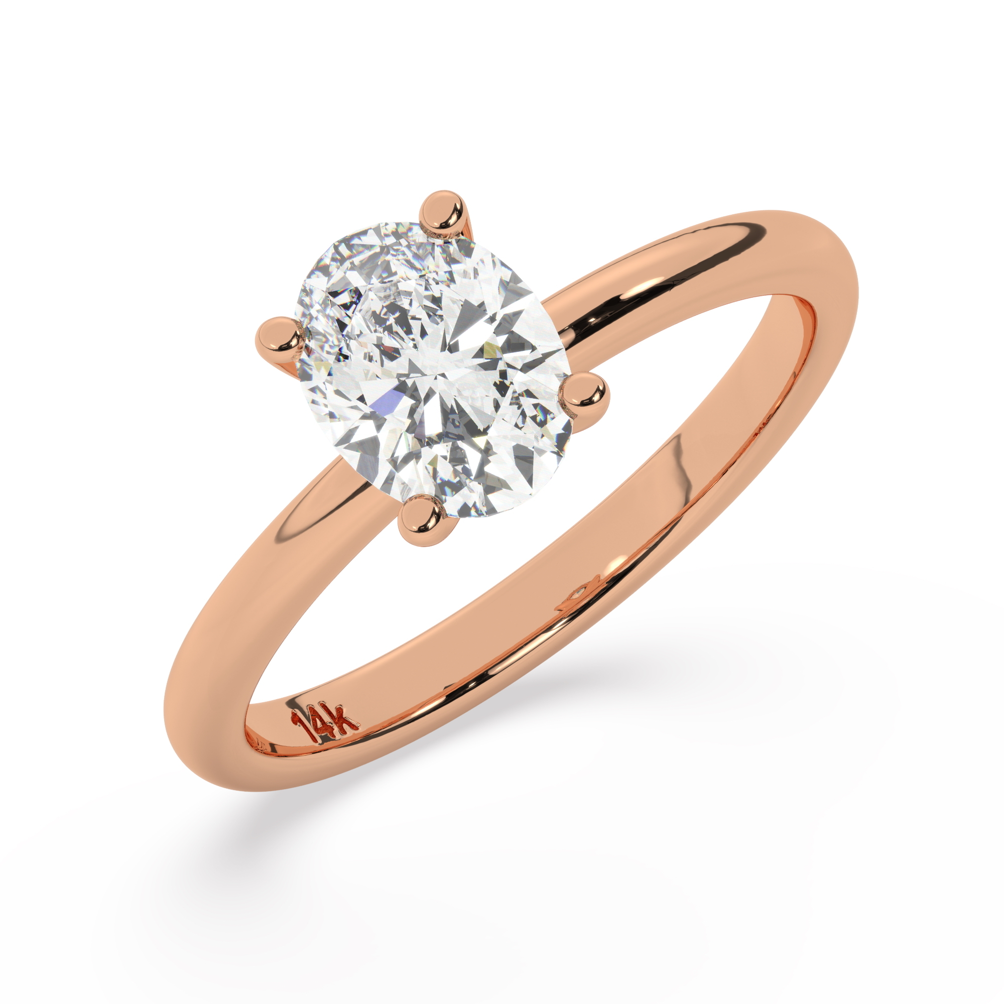 טבעת אירוסין סוליטר דגם 50016 זהב אדום רוזגולד 14 קראט במרכז יהלום טבעי במשקל כולל של 1 קראט בחיתוך אובל עם תעודה גמולוגית אמריקאית GIA