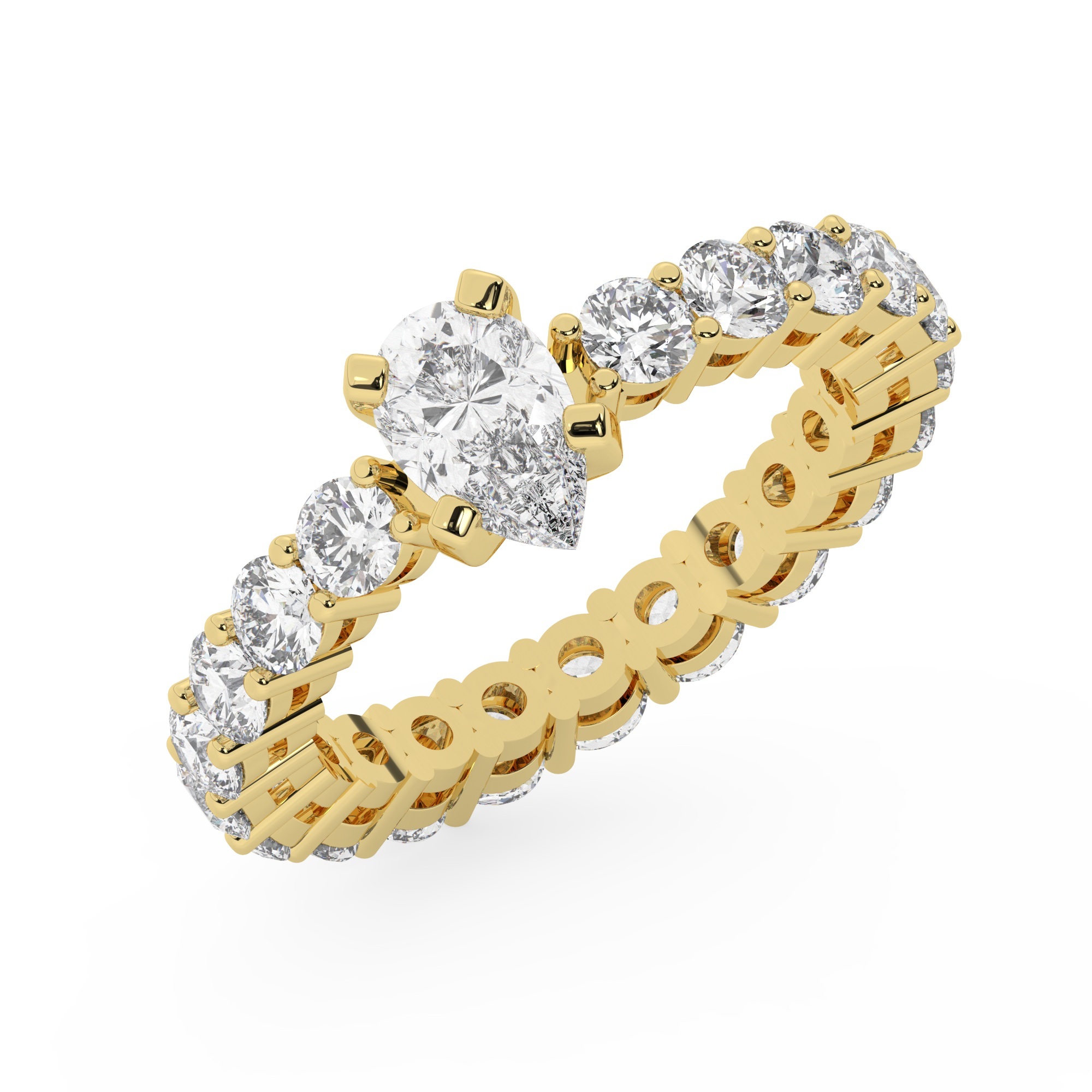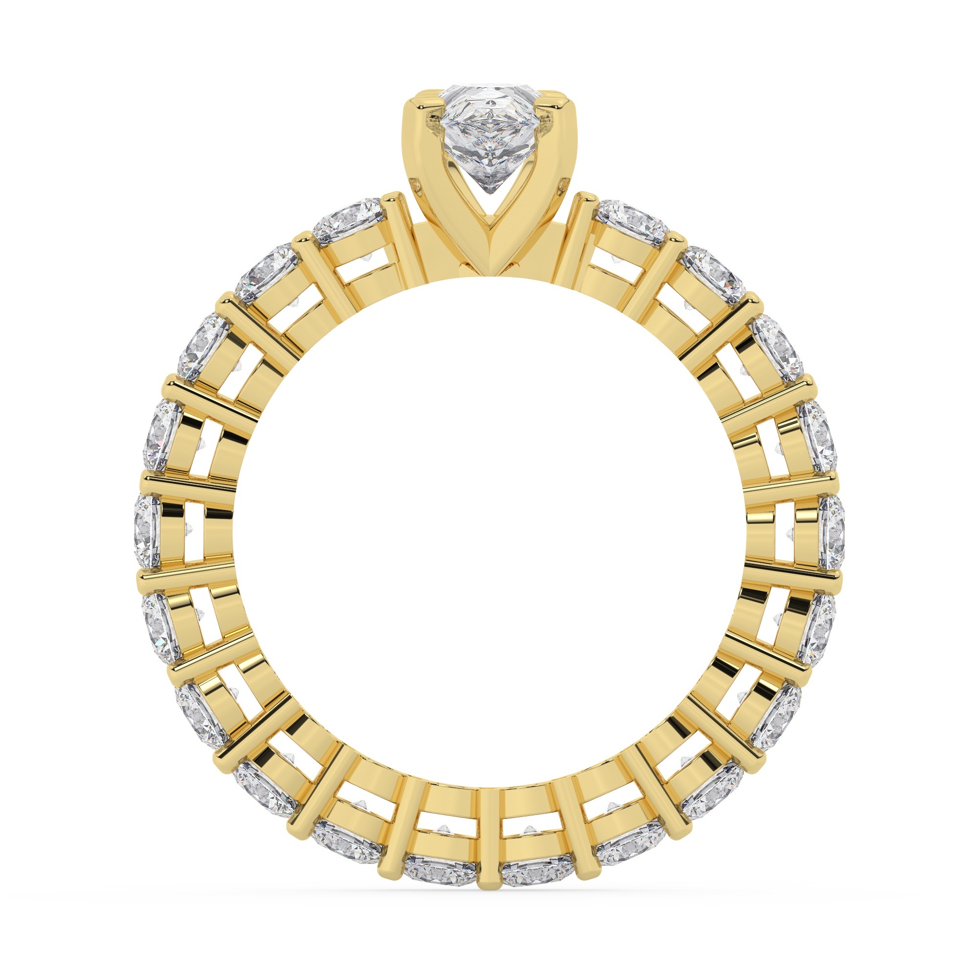 טבעת אירוסין סוליטר ויהלומים בצדדים איטרנטיני דגם 50044 זהב צהוב 14 קראט במרכז יהלום טבעי 0.50 קראט בחיתוך טיפה עם תעודה גמולוגית אמריקאית GIA מסביב ובצדדים יהלומים טבעים במשקל כולל של 1.80 קראט בחיתוך עגול
