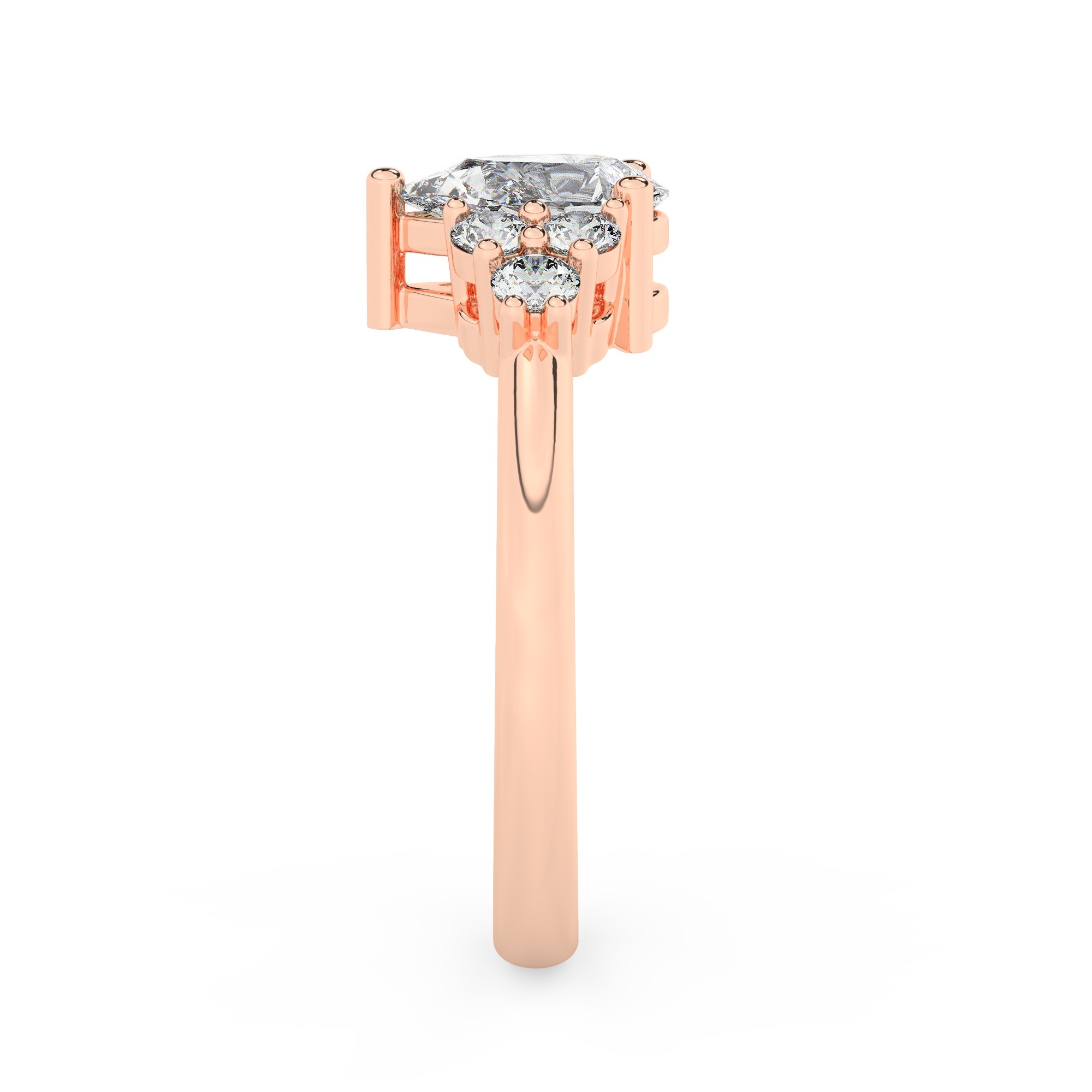טבעת אירוסין סוליטר ויהלומים בצדדים דגם 50041 זהב אדום רוזגולד 14 קראט במרכז יהלום טבעי 4 קראט בחיתוך טיפה עם תעודה גמולוגית אמריקאית GIA מסביב ובצדדים יהלומים טבעים במשקל כולל של 0.30 קראט בחיתוך עגול
