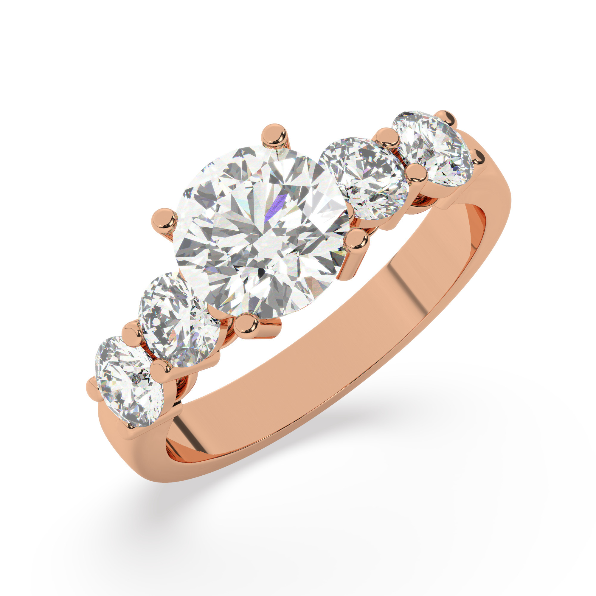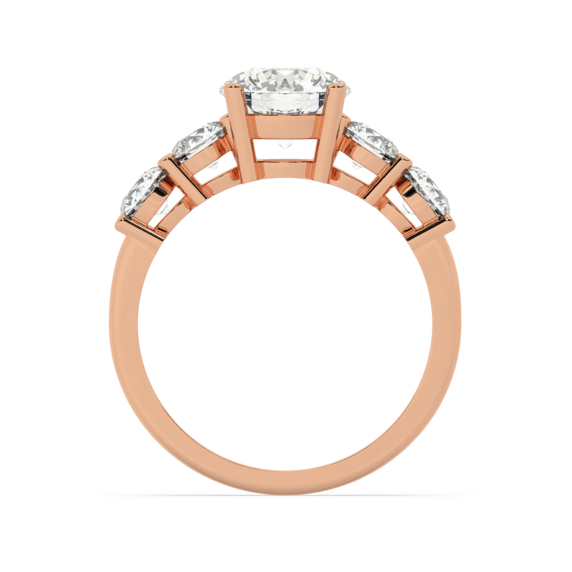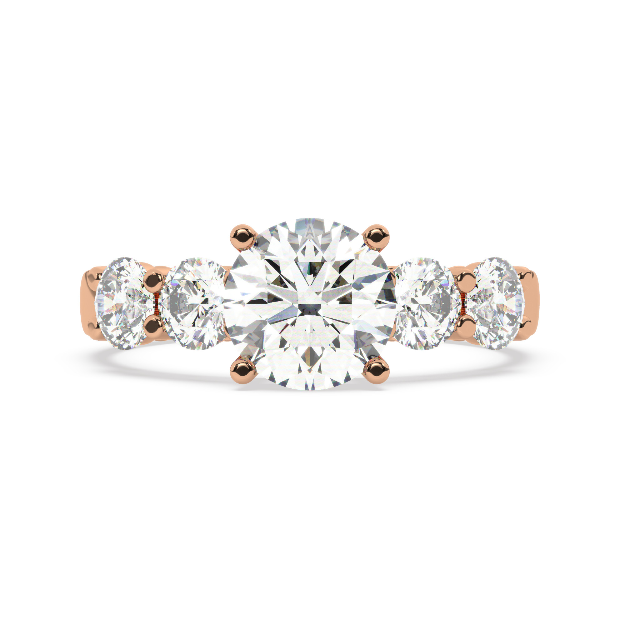 טבעת אירוסין סוליטר ויהלומים בצדדים דגם 50030 זהב אדום רוזגולד 14 קראט במרכז יהלום טבעי 2.50 קראט בחיתוך עגול עם תעודה גמולוגית אמריקאית GIA מסביב ובצדדים יהלומים טבעים במשקל כולל של 1.08 קראט בחיתוך עגול