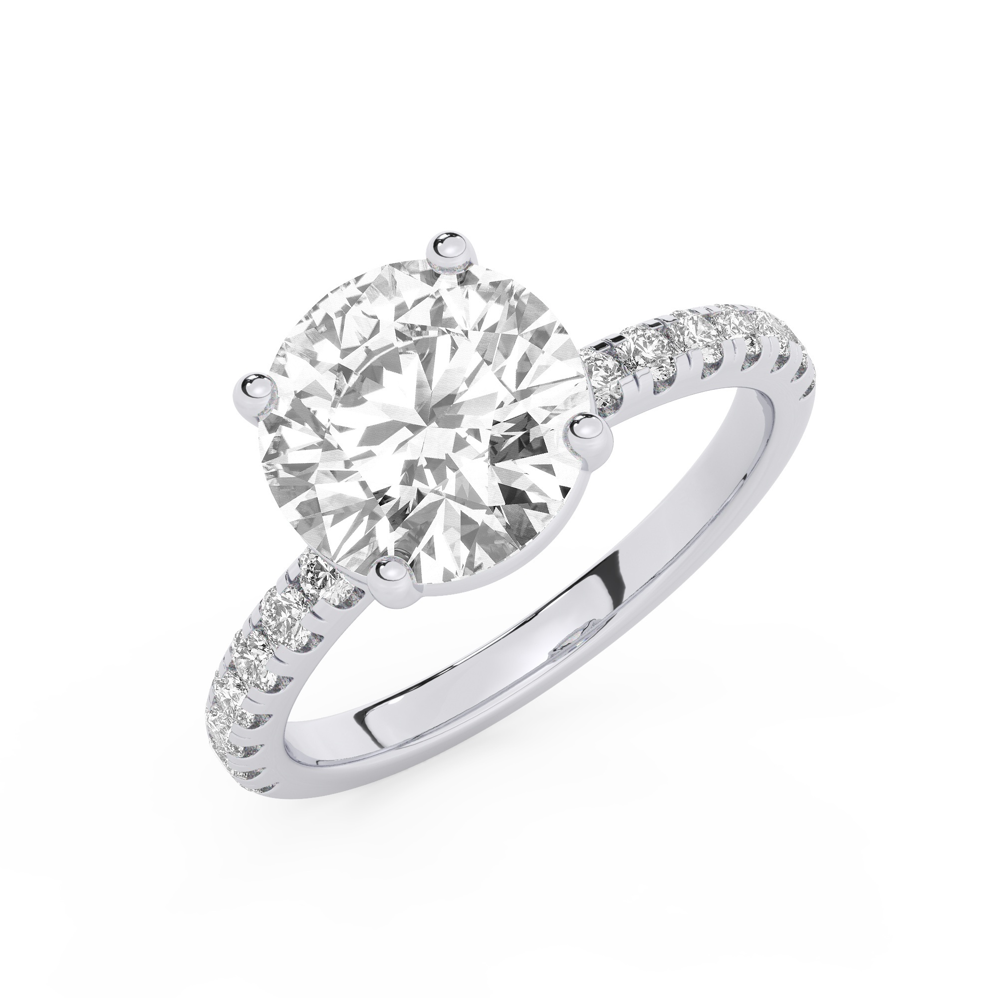 טבעת אירוסין סוליטר ויהלומים בצדדים דגם 50037 זהב לבן 14 קראט במרכז יהלום טבעי 3 קראט בחיתוך עגול עם תעודה גמולוגית אמריקאית GIA מסביב ובצדדים יהלומים טבעים במשקל כולל של 0.32 קראט בחיתוך עגול