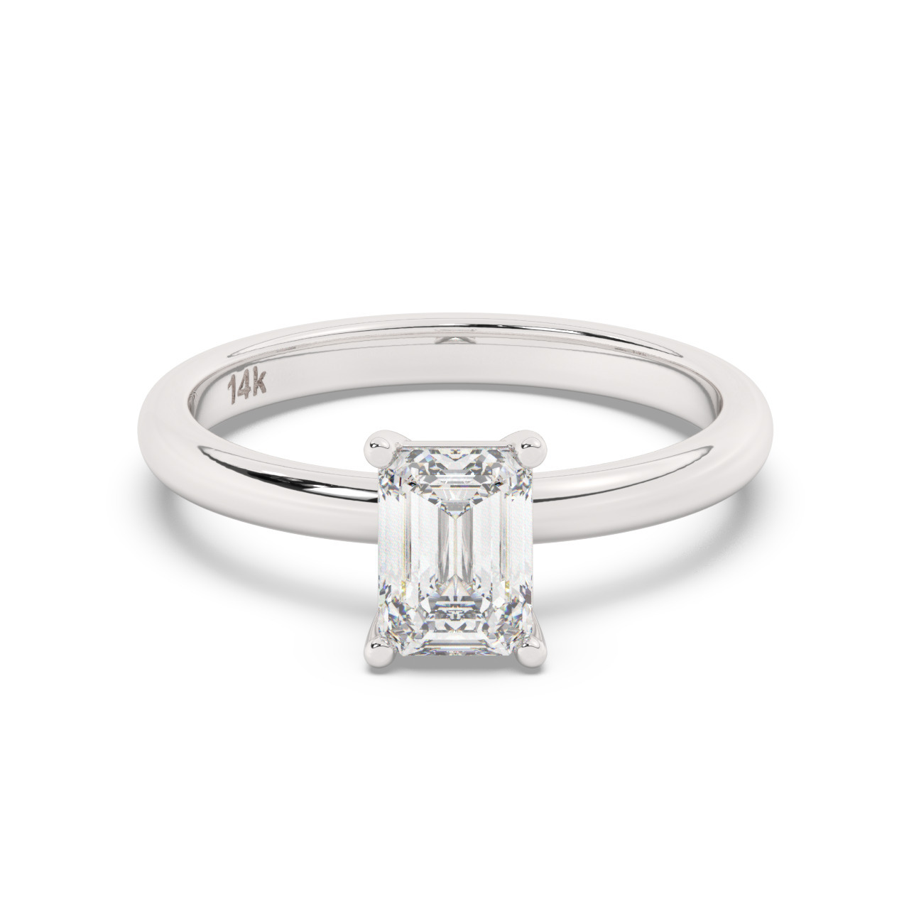 טבעת אירוסין סוליטר דגם 50016 זהב לבן 14 קראט במרכז זירקוניה במשקל כולל של 0.50 קראט בחיתוך אמרלד עם תעודה גמולוגית