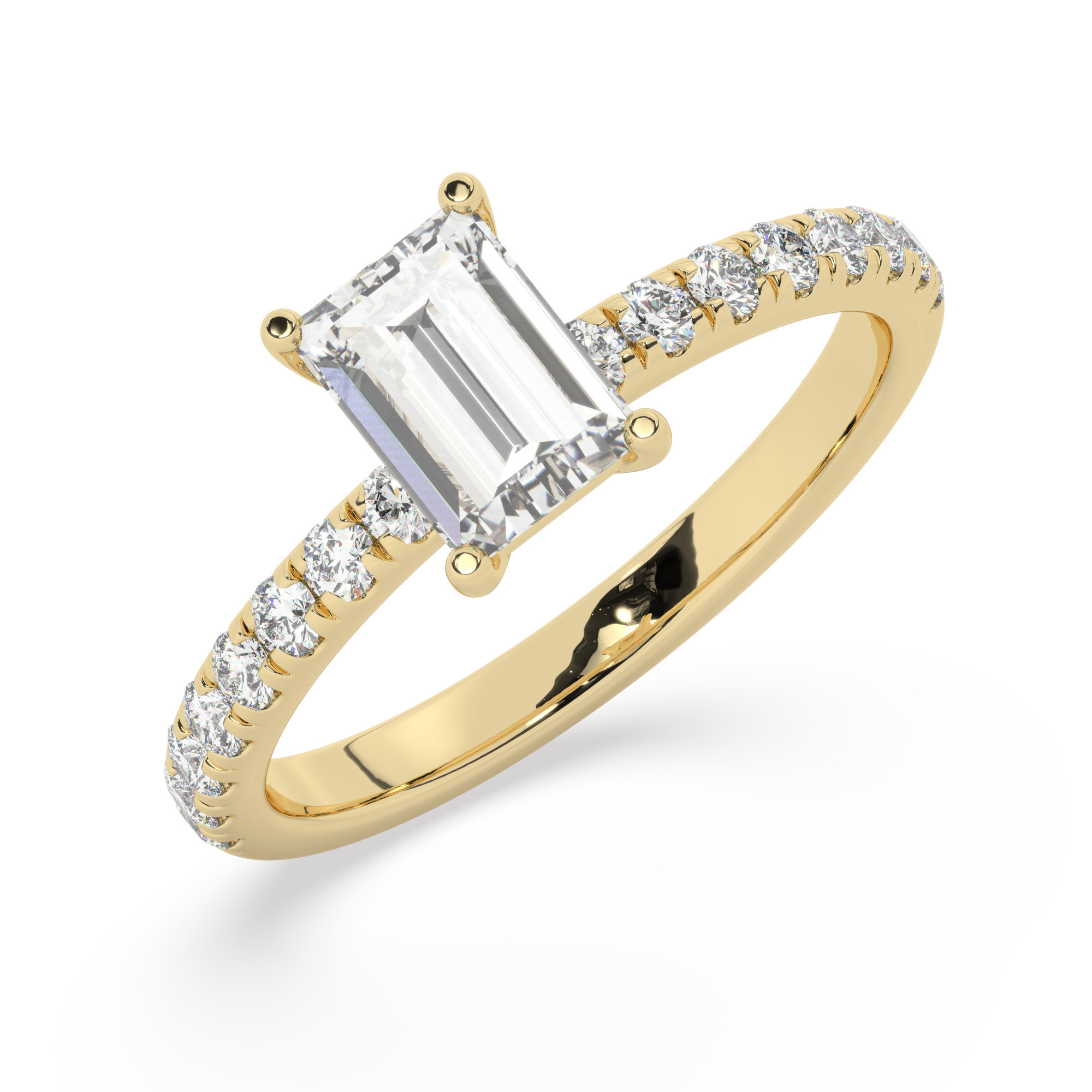 טבעת אירוסין סוליטר וזירקונים בצדדים דגם 50037 זהב צהוב 14 קראט במרכז זירקוניה 0.50 קראט בחיתוך אמרלד מסביב ובצדדים זירקונים בחיתוך עגול