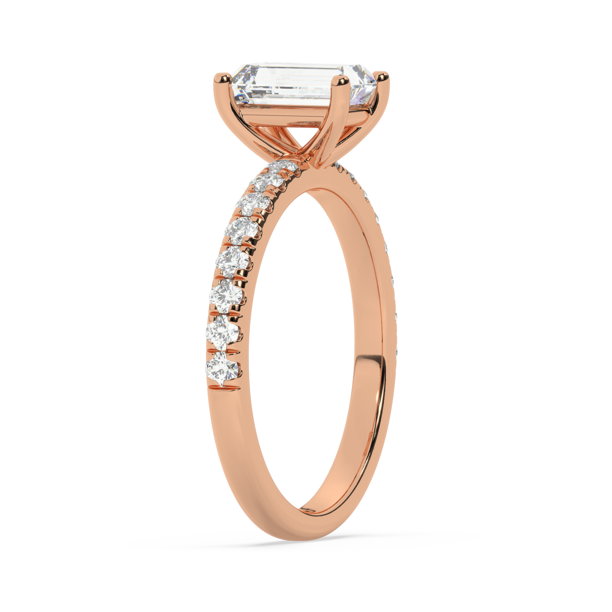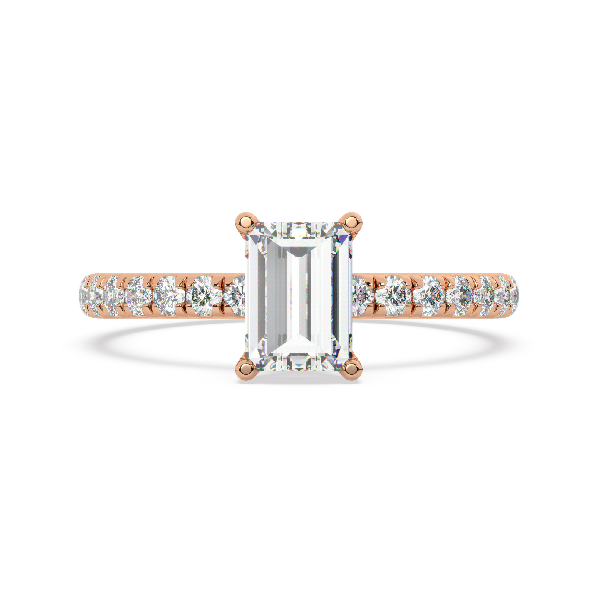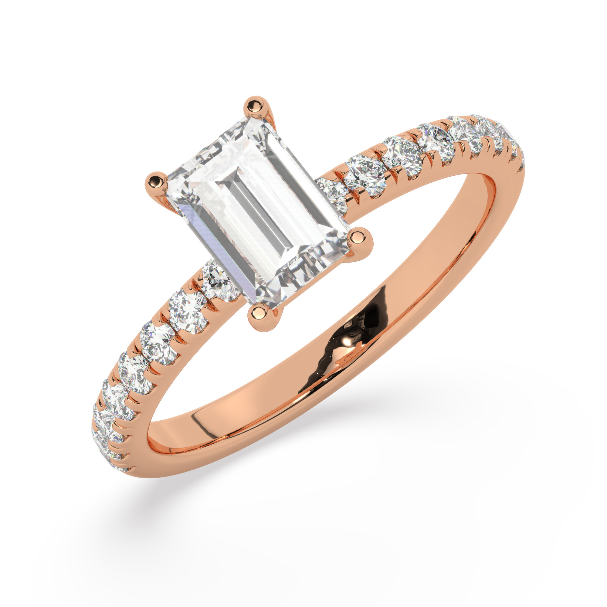 טבעת אירוסין סוליטר וזירקונים בצדדים דגם 50037 זהב אדום רוזגולד 14 קראט במרכז זירקוניה 0.75 קראט בחיתוך אמרלד מסביב ובצדדים זירקונים בחיתוך עגול