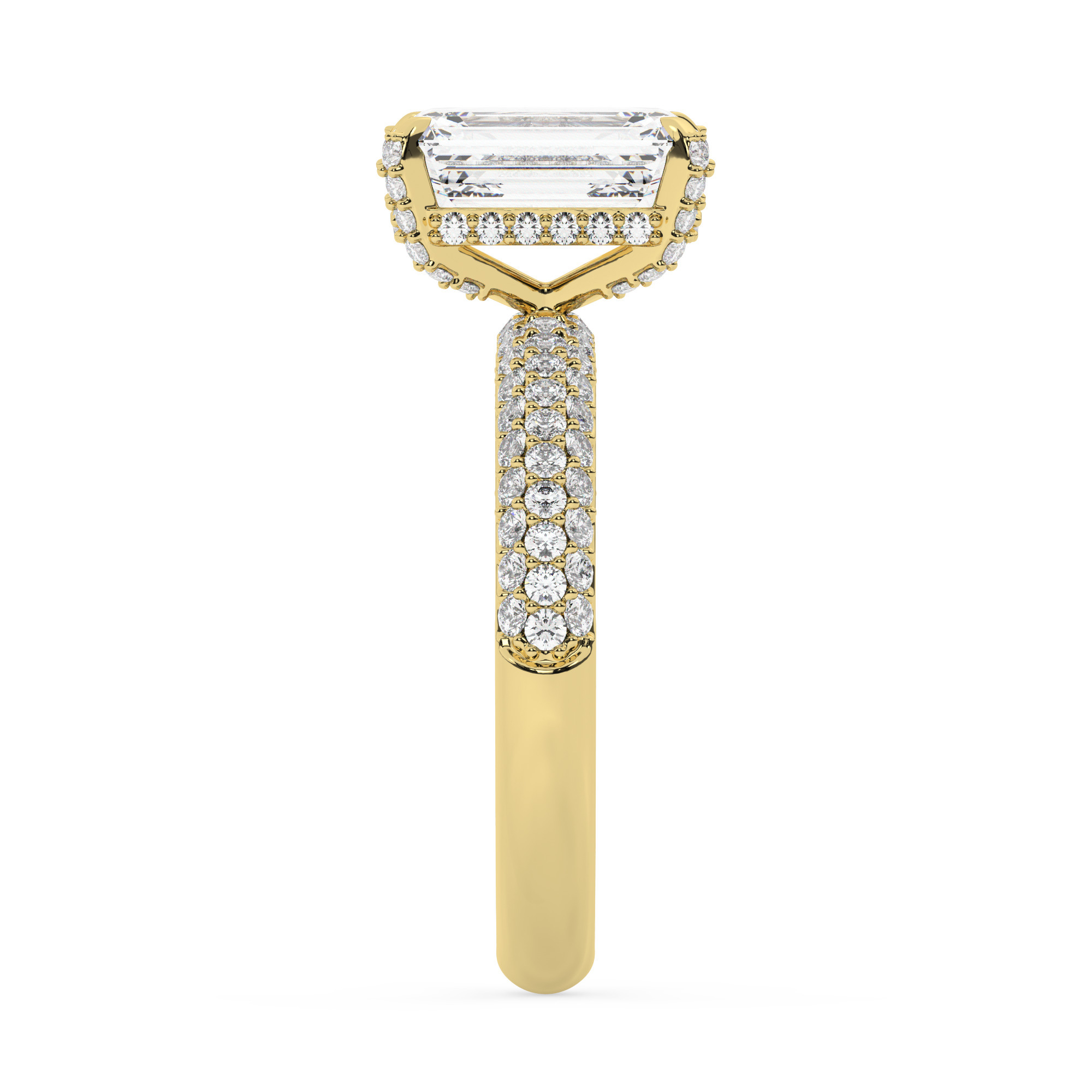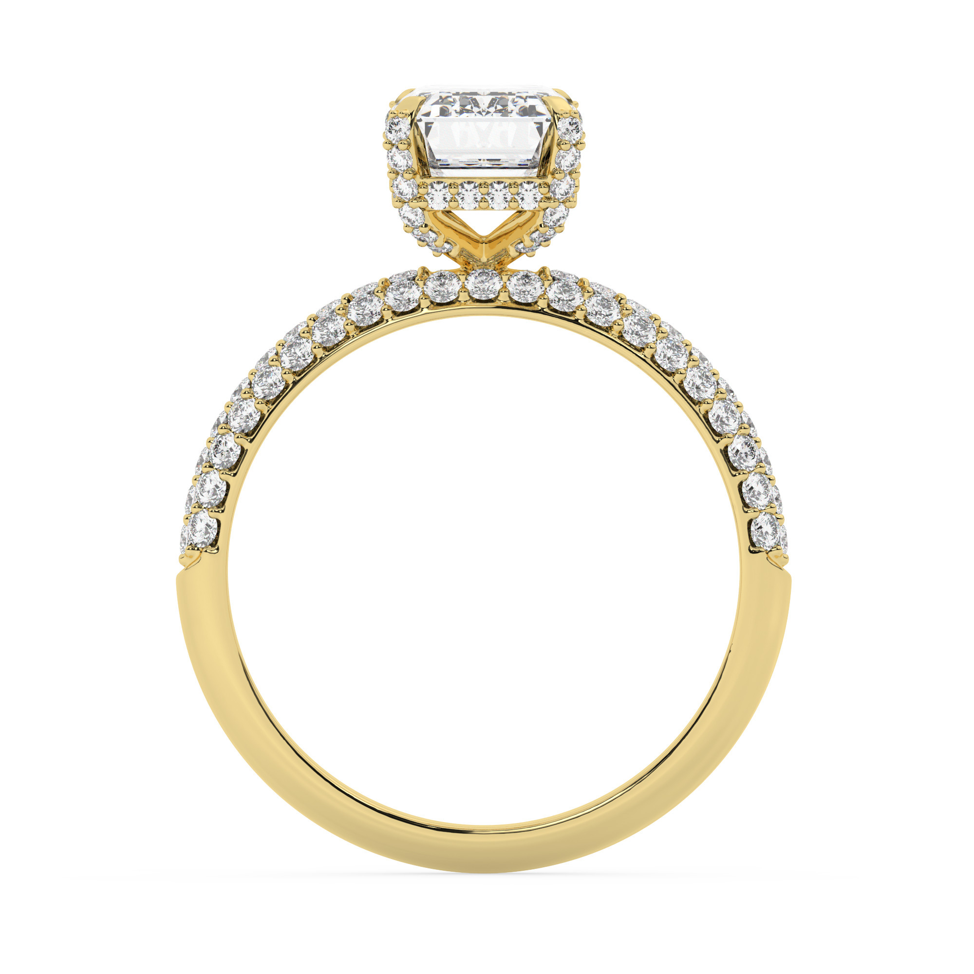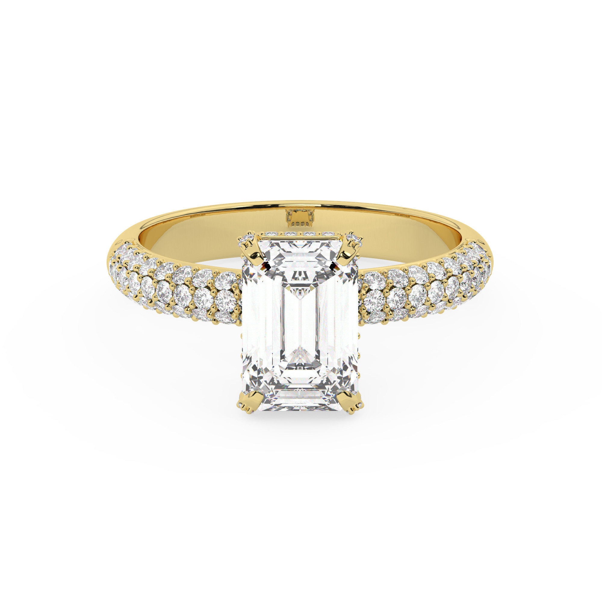טבעת אירוסין סוליטר וזירקונים בצדדים דגם 50014 זהב צהוב 14 קראט במרכז זירקוניה 0.75 קראט בחיתוך אמרלד מסביב ובצדדים זירקונים בחיתוך עגול