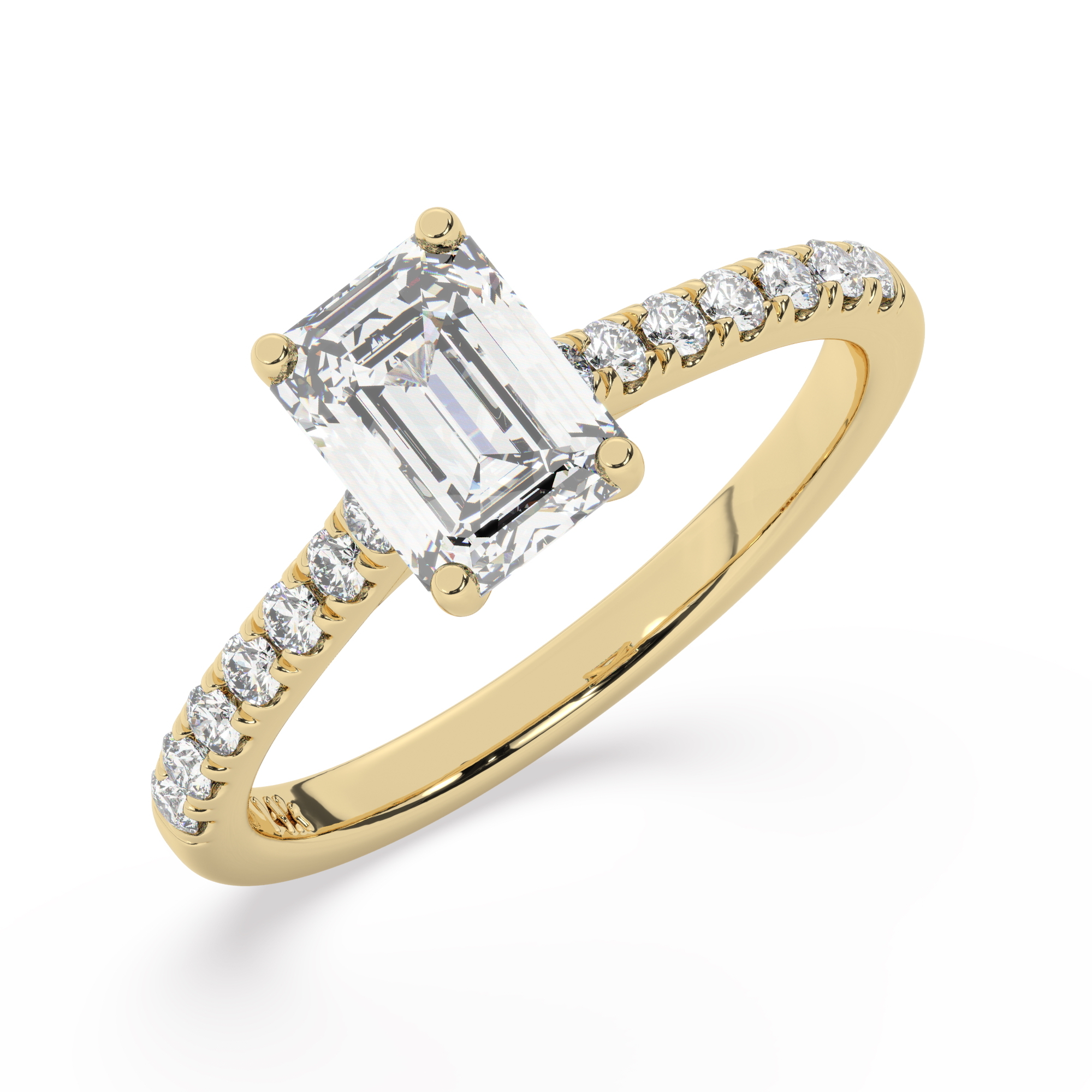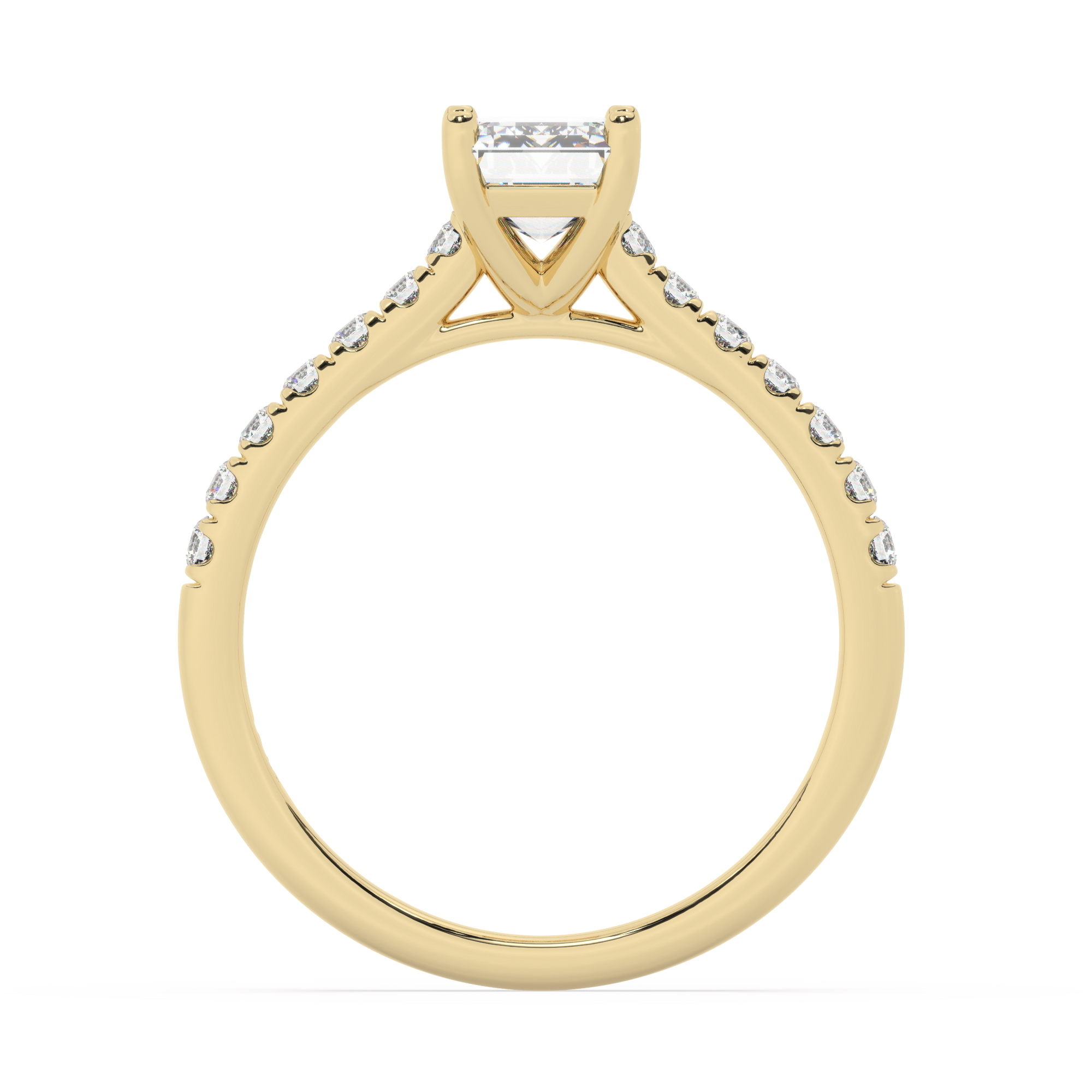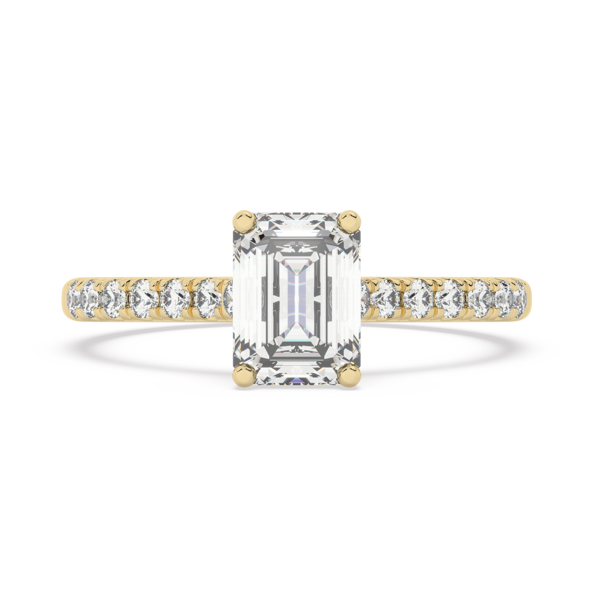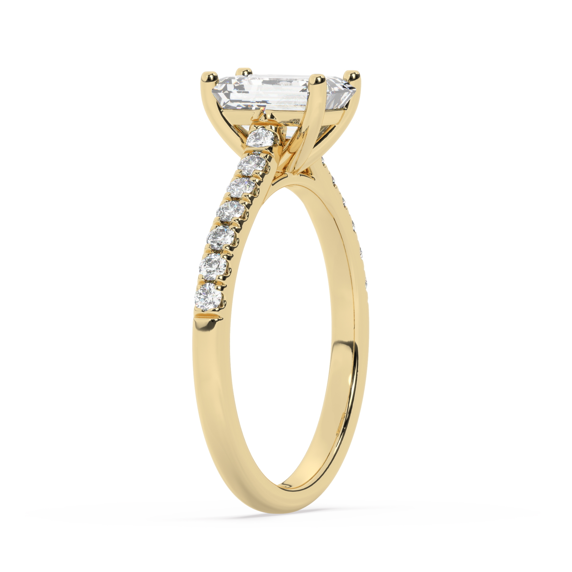 טבעת אירוסין סוליטר ויהלומים בצדדים דגם 50019 זהב צהוב 14 קראט במרכז זירקוניה 0.75 קראט בחיתוך אמרלד מסביב ובצדדים זירקונים בחיתוך עגול