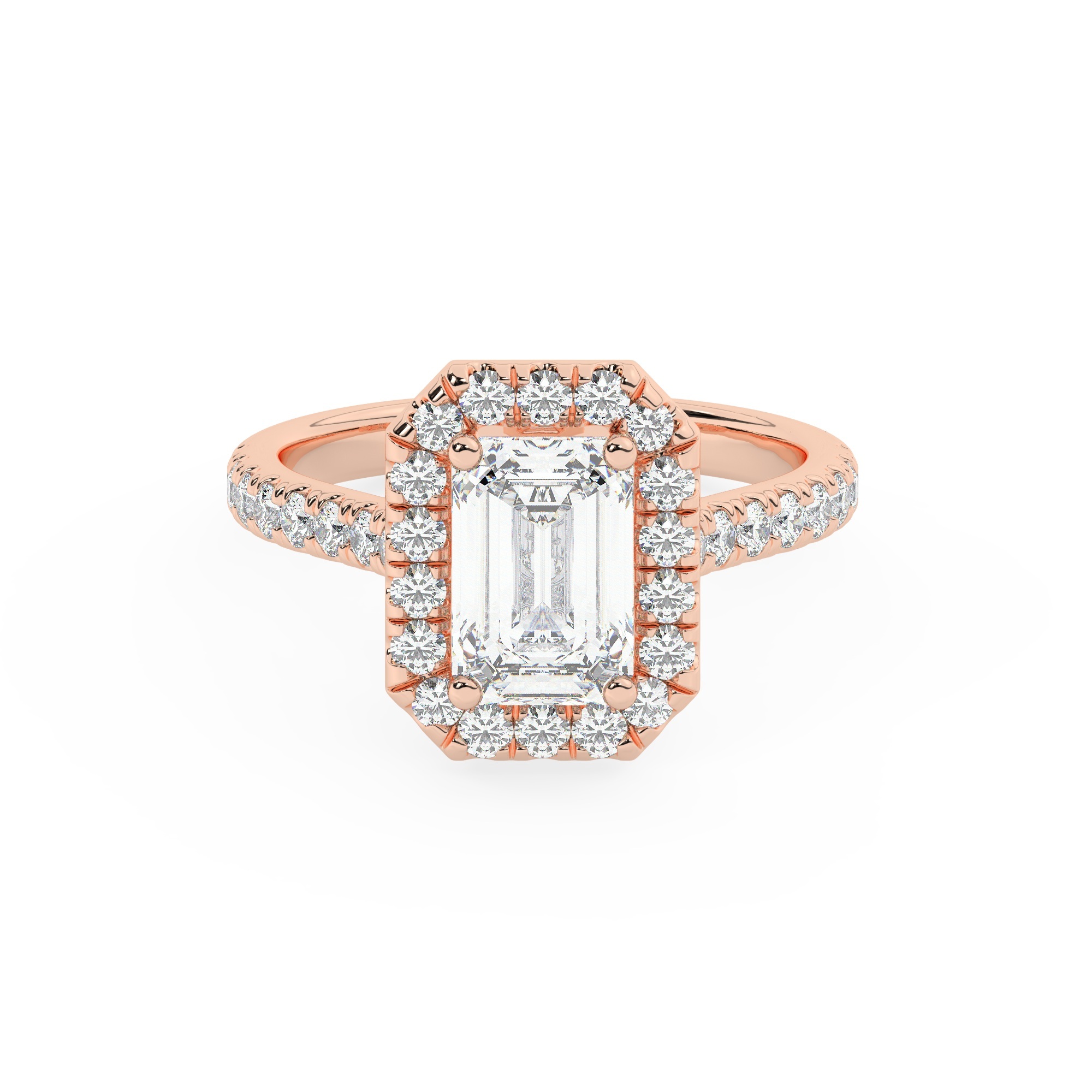 טבעת אירוסין היילו דגם 50026 זהב אדום רוזגולד 14 קראט במרכז זירקוניה 1 קראט בחיתוך אמרלד מסביב ובצדדים זירקונים בחיתוך עגול