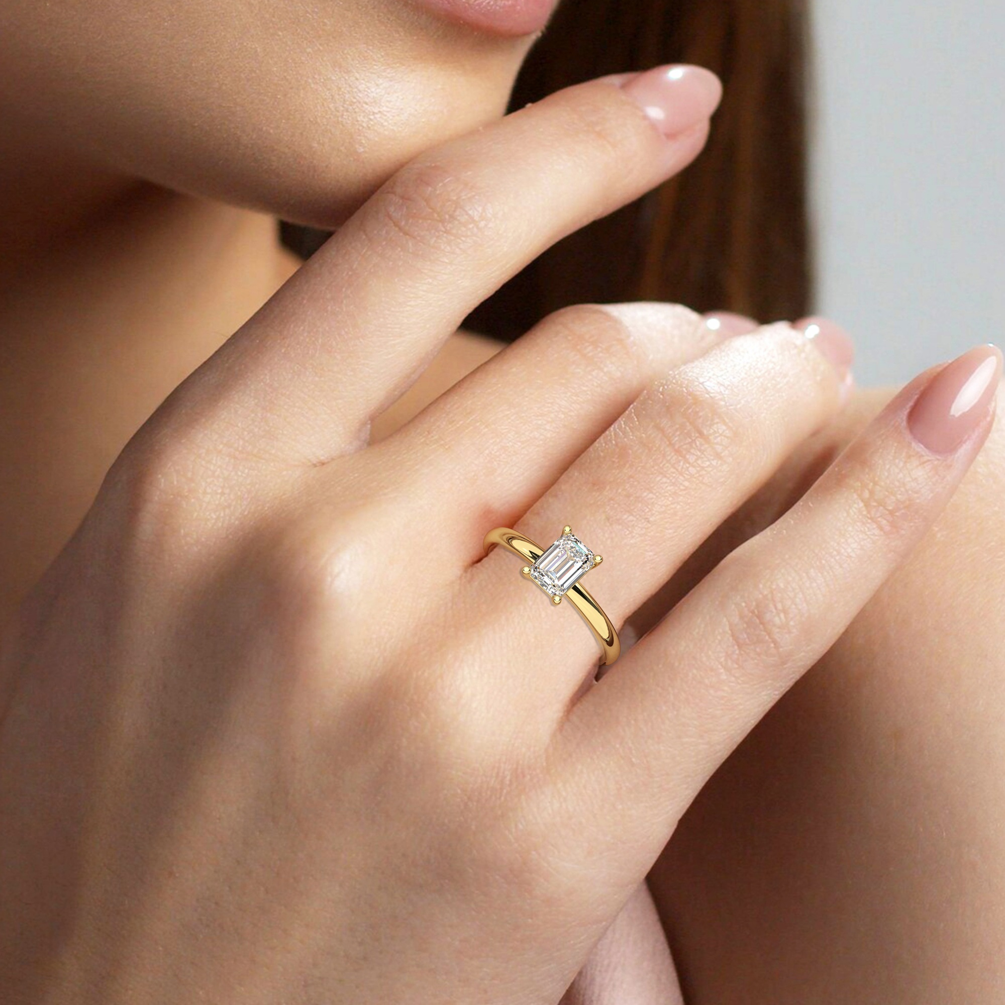 טבעת אירוסין סוליטר דגם 50016 זהב צהוב 14 קראט במרכז זירקוניה במשקל כולל של 1 קראט בחיתוך אמרלד עם תעודה גמולוגית