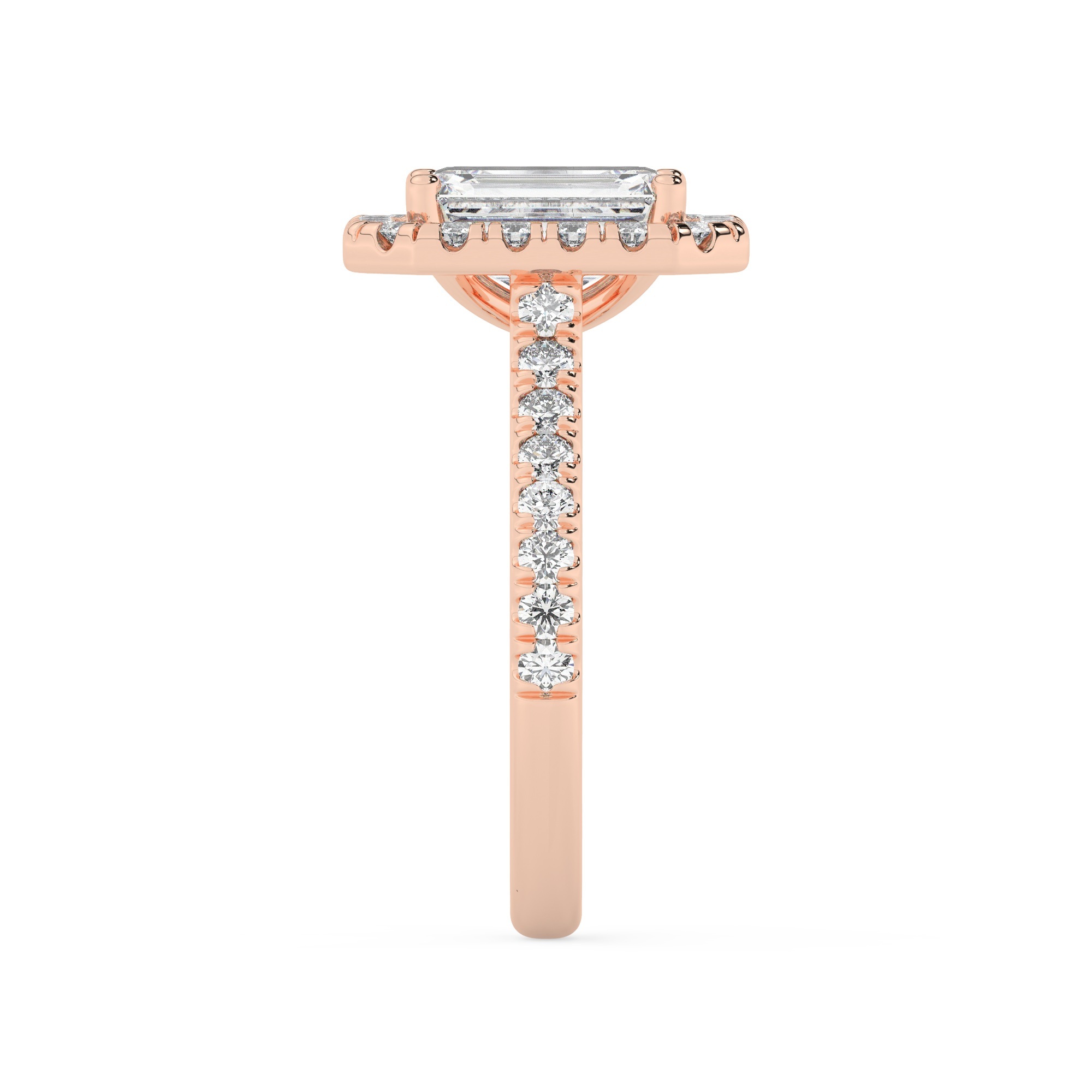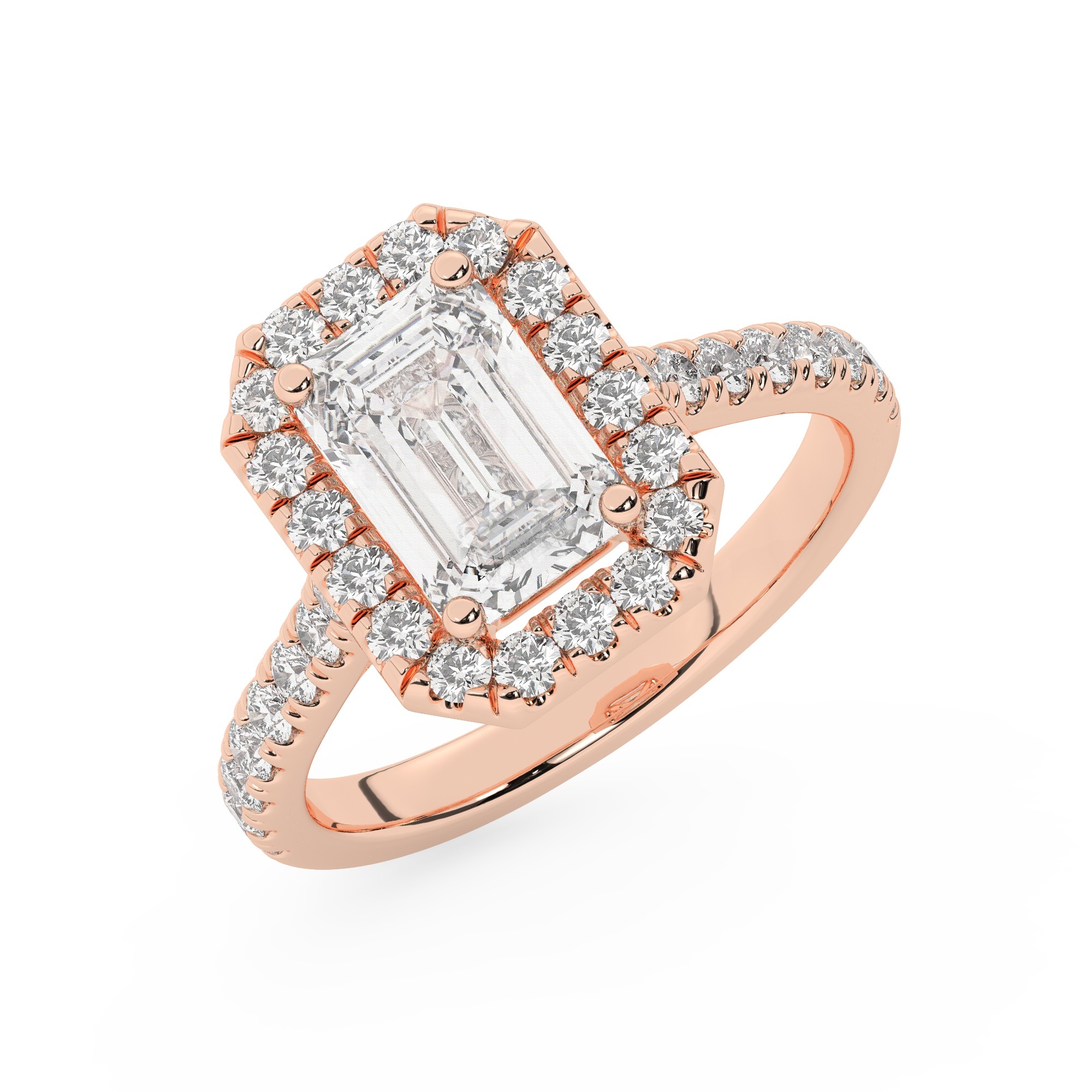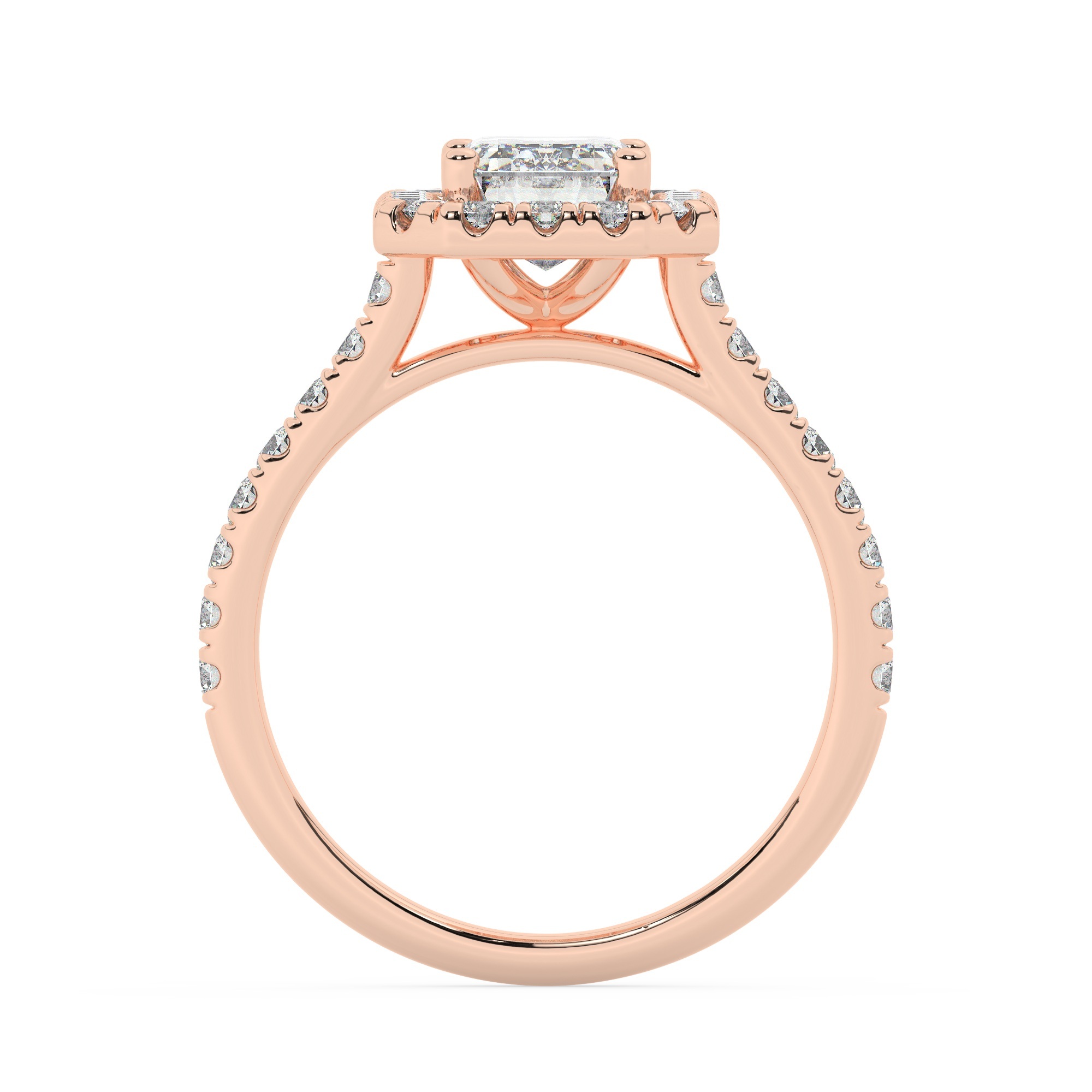 טבעת אירוסין היילו דגם 50026 זהב אדום רוזגולד 14 קראט במרכז זירקוניה 1.50 קראט בחיתוך אמרלד מסביב ובצדדים זירקונים בחיתוך עגול