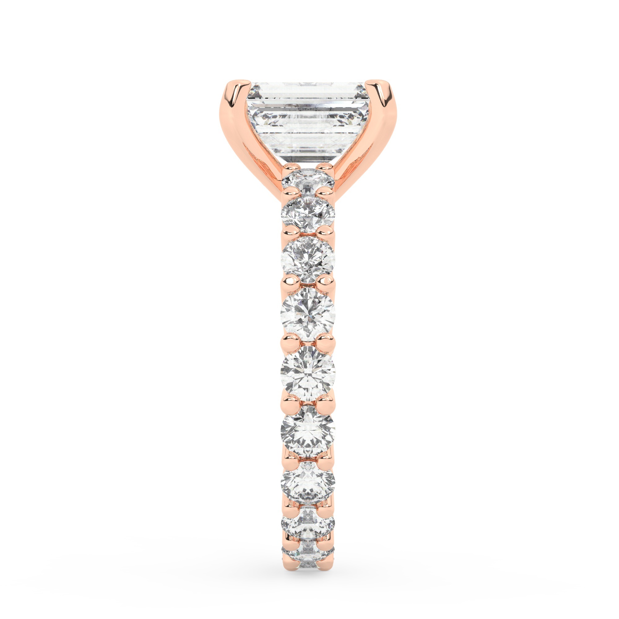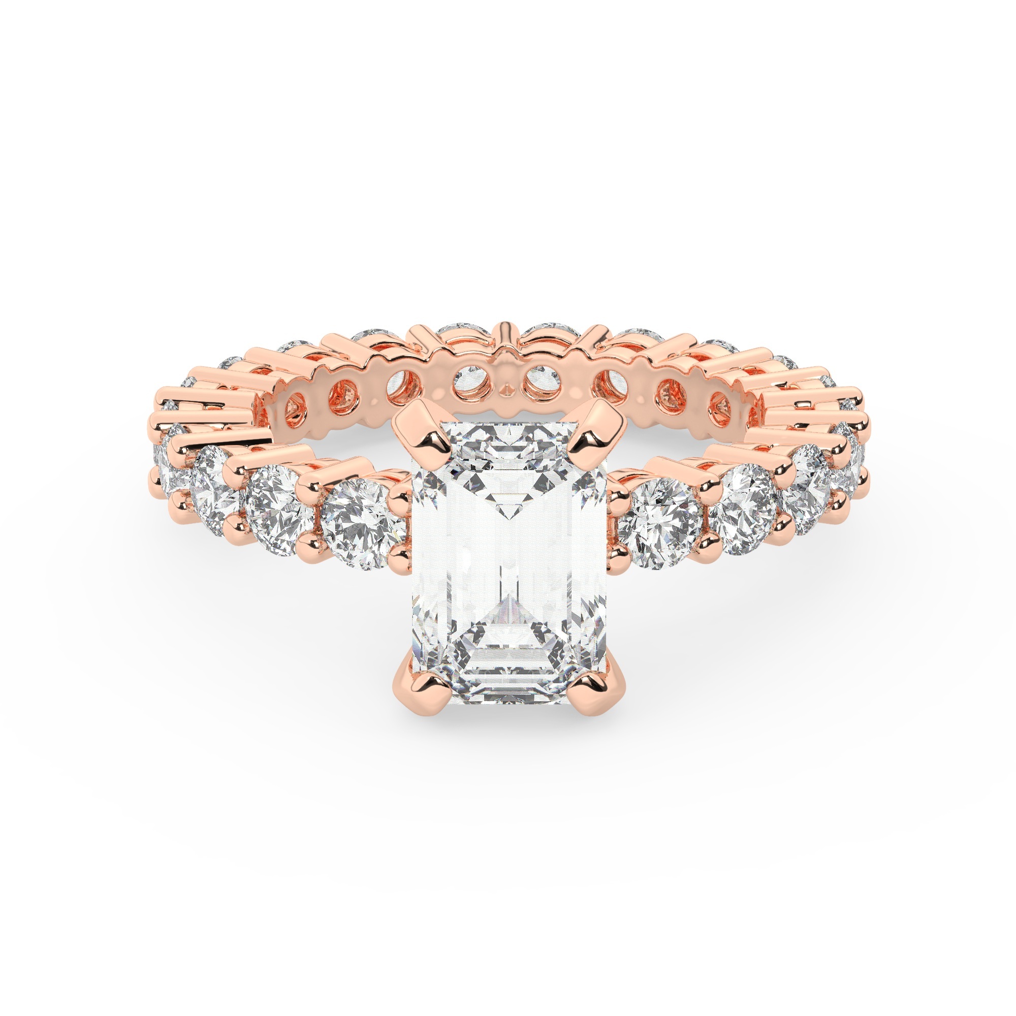 טבעת אירוסין סוליטר וזירקונים בצדדים איטרנטיני דגם 50044 זהב אדום רוזגולד 14 קראט במרכז זירקוניה 1.50 קראט בחיתוך אמרלד מסביב ובצדדים זירקונים בחיתוך עגול