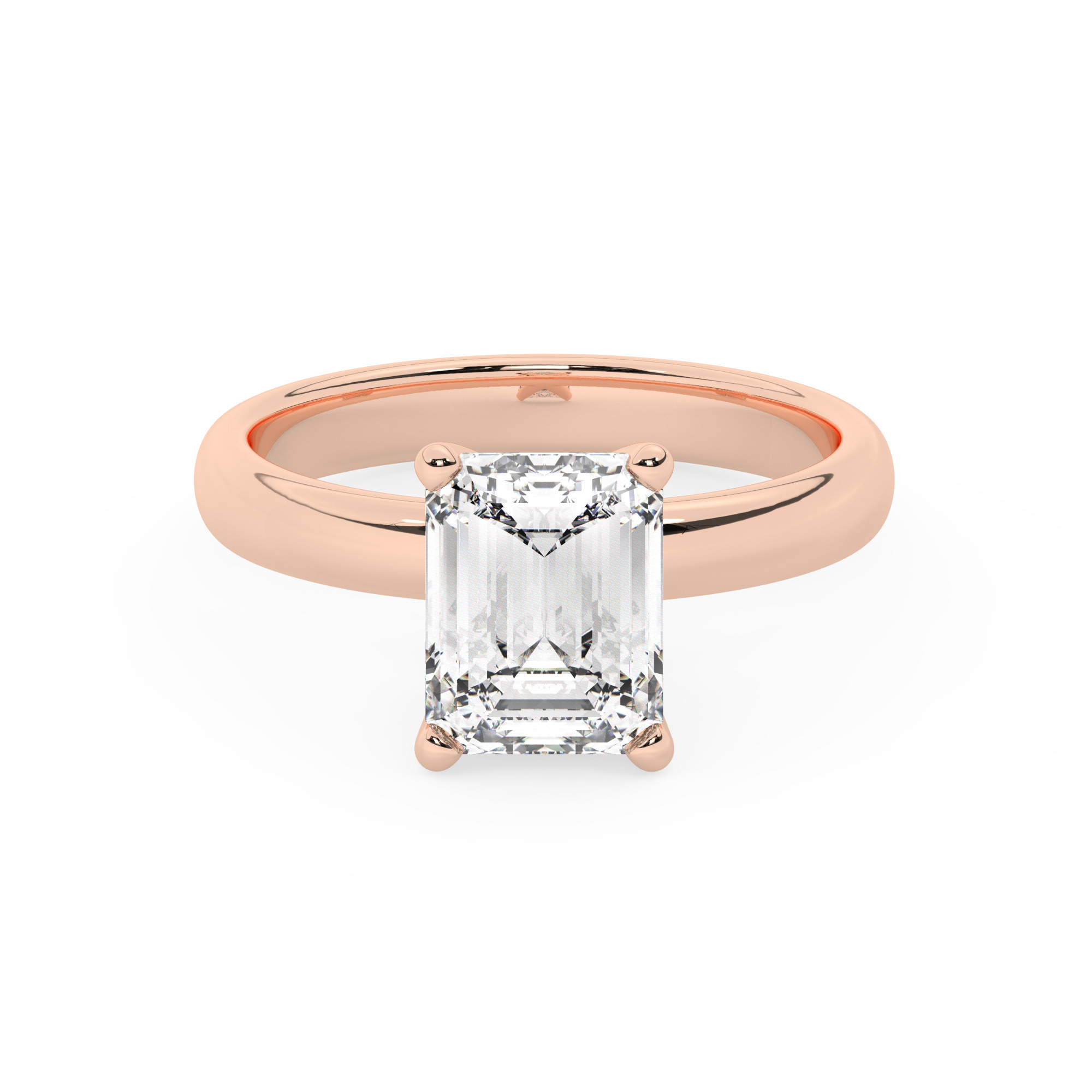 טבעת אירוסין סוליטר דגם 50047 זהב אדום רוזגולד 14 קראט במרכז זירקוניה במשקל כולל של 1.50 קראט בחיתוך אמרלד עם תעודה גמולוגית