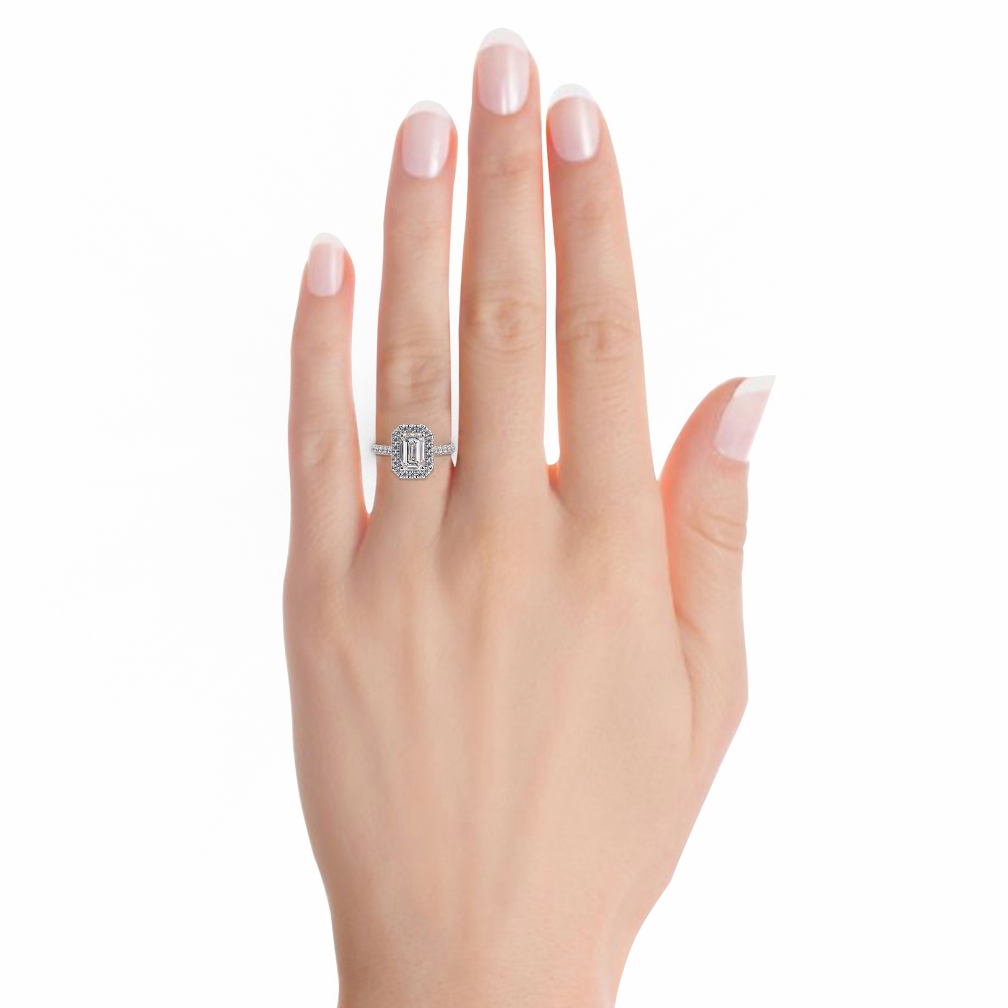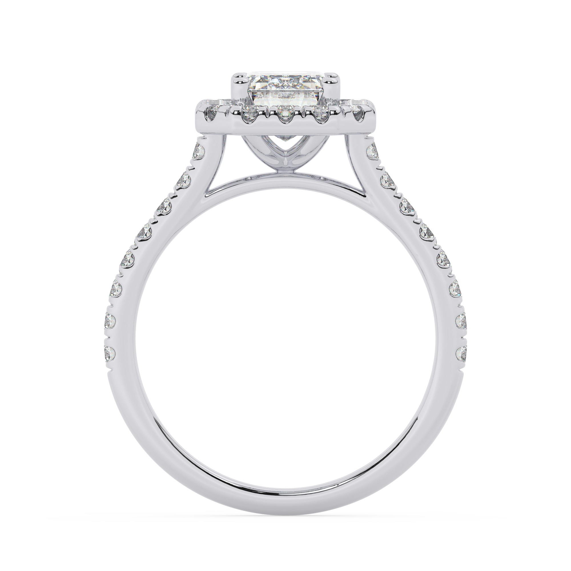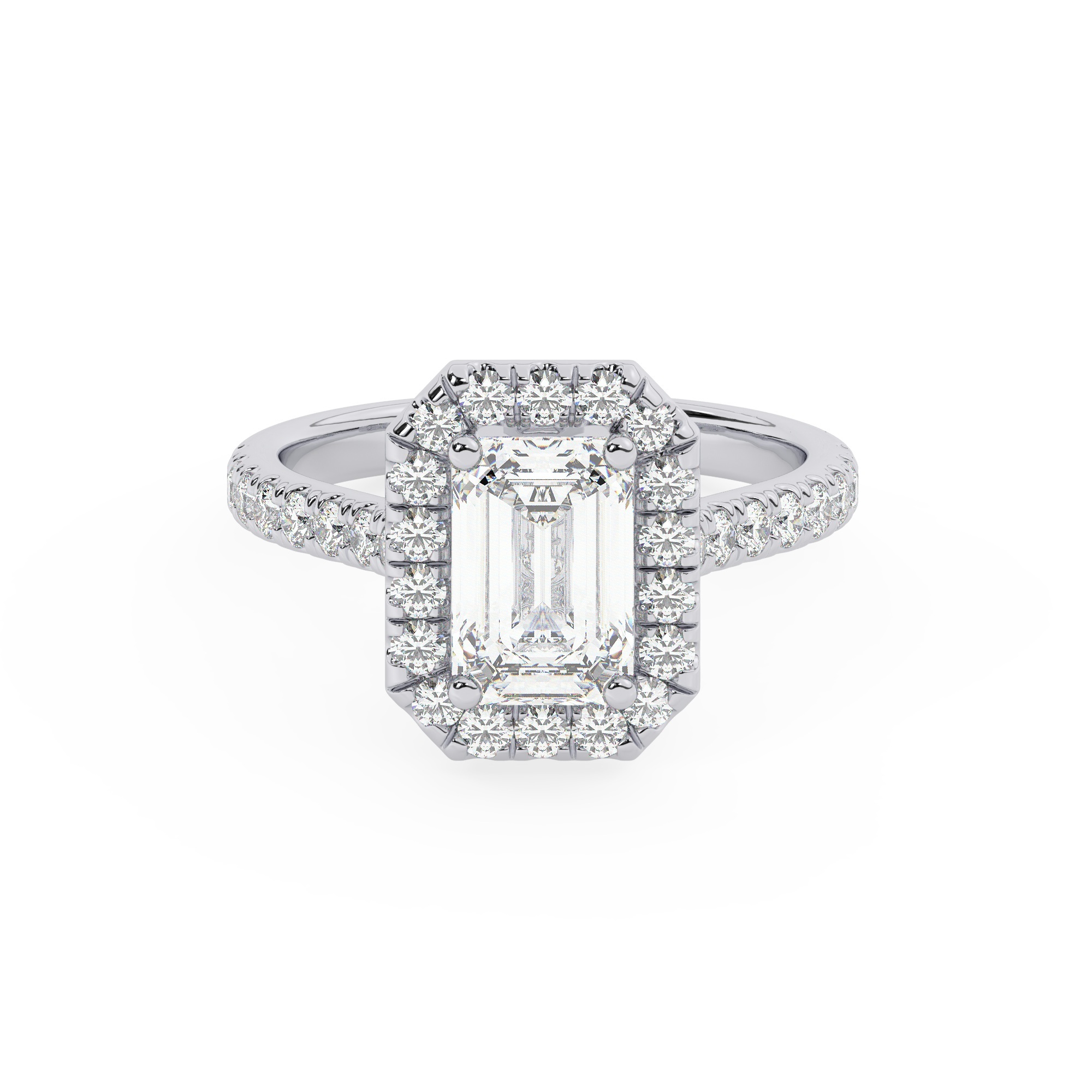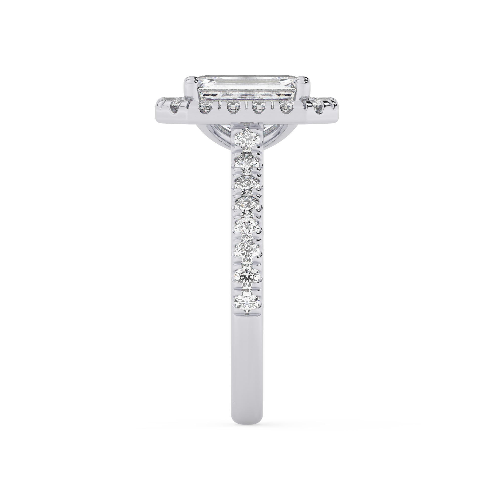 טבעת אירוסין היילו דגם 50026 זהב לבן 14 קראט במרכז זירקוניה 1.50 קראט בחיתוך אמרלד מסביב ובצדדים זירקונים בחיתוך עגול