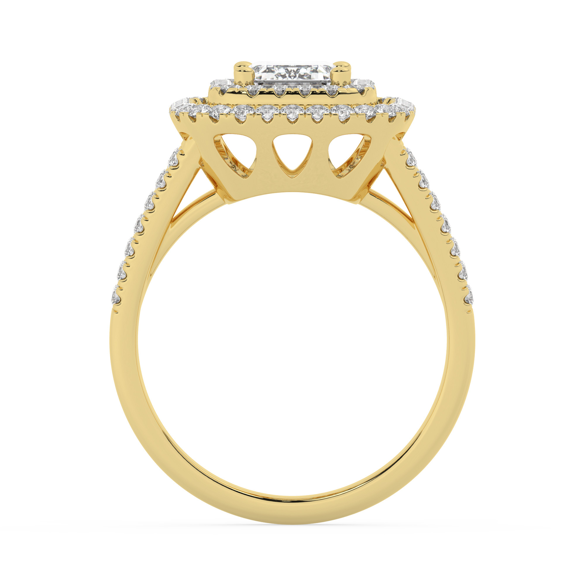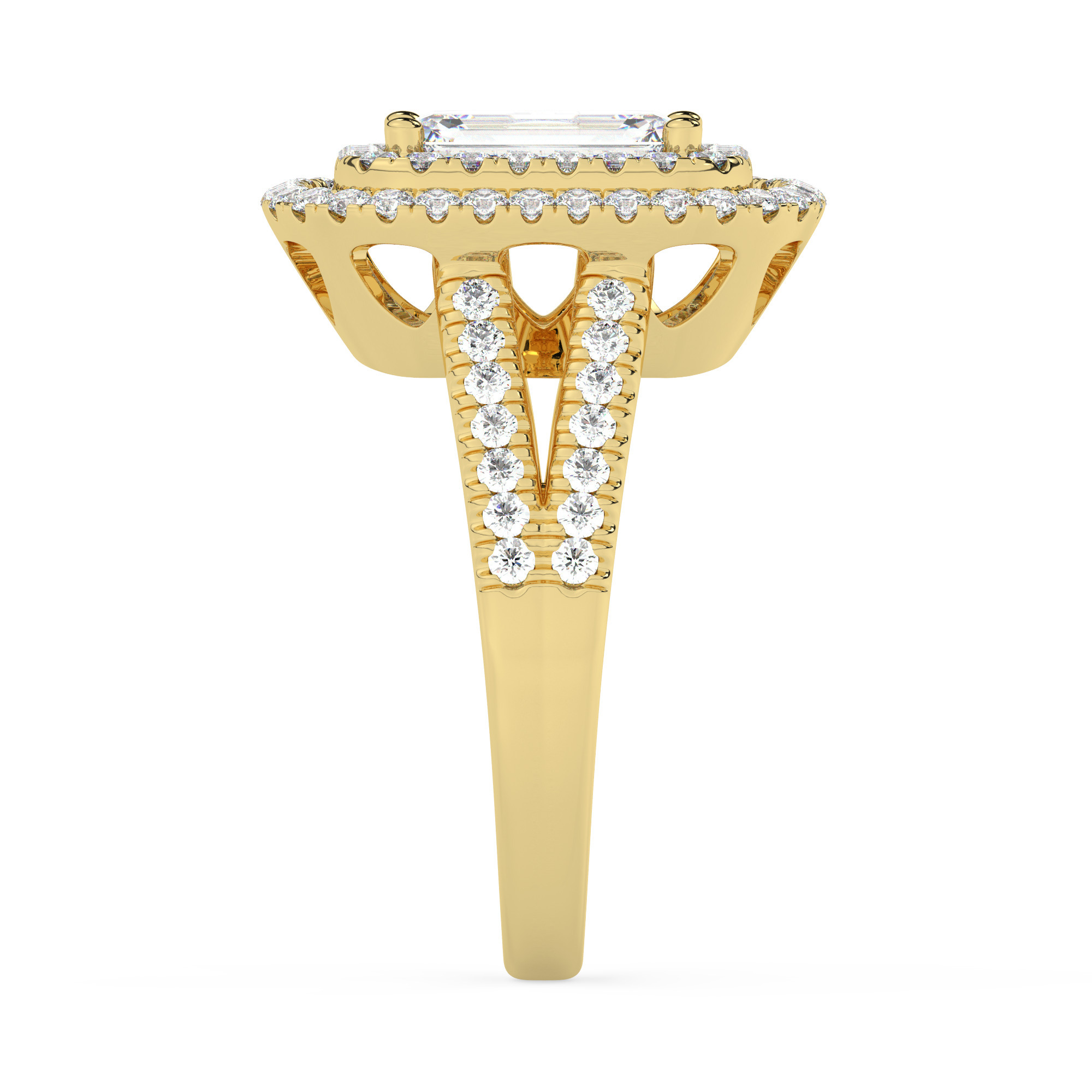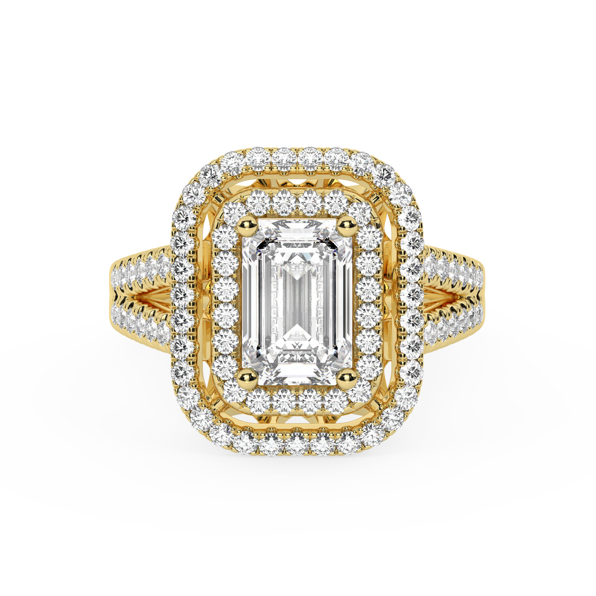 טבעת אירוסין היילו דגם 50025 זהב צהוב 14 קראט במרכז זירקוניה 2.50 קראט בחיתוך אמרלד מסביב ובצדדים זירקונים בחיתוך עגול