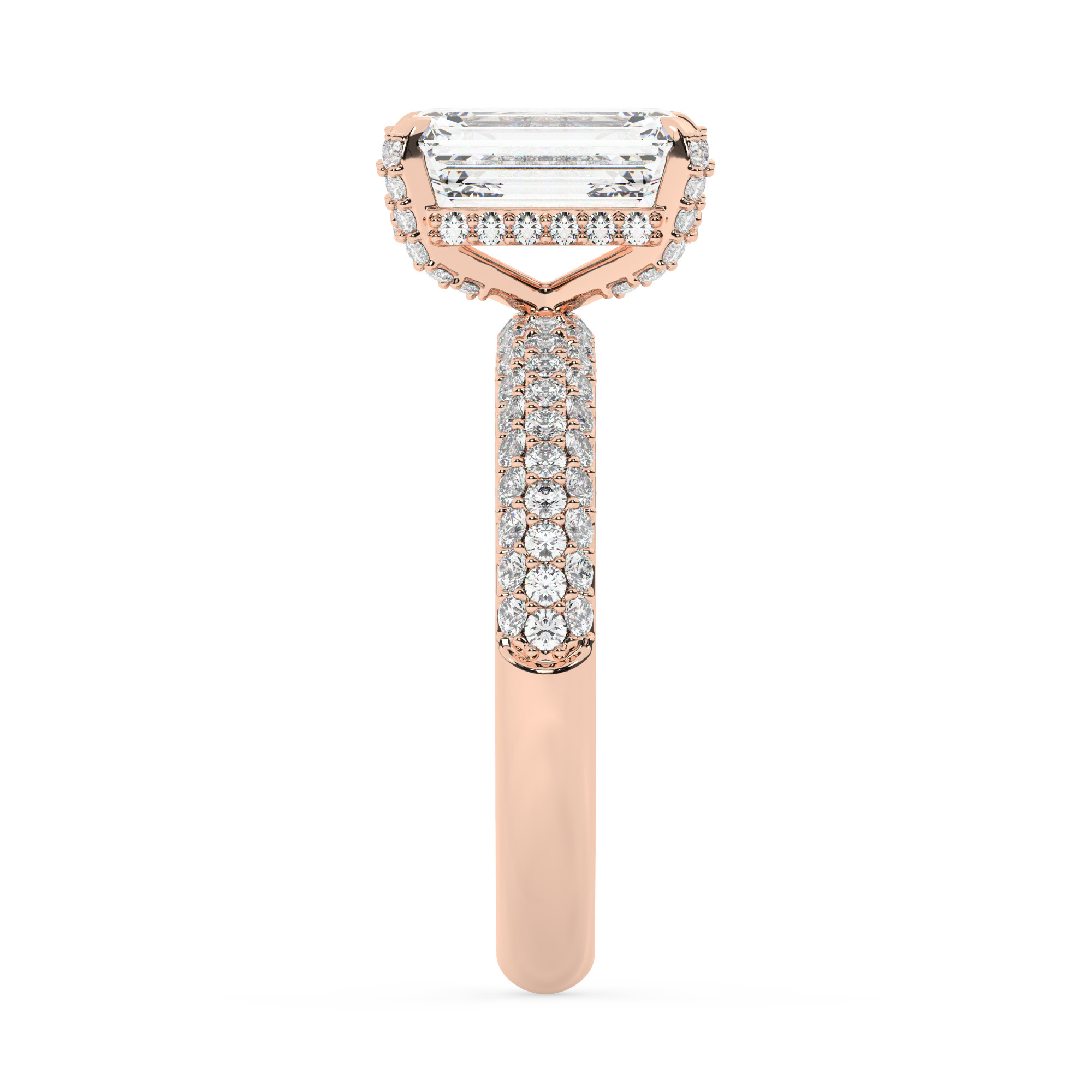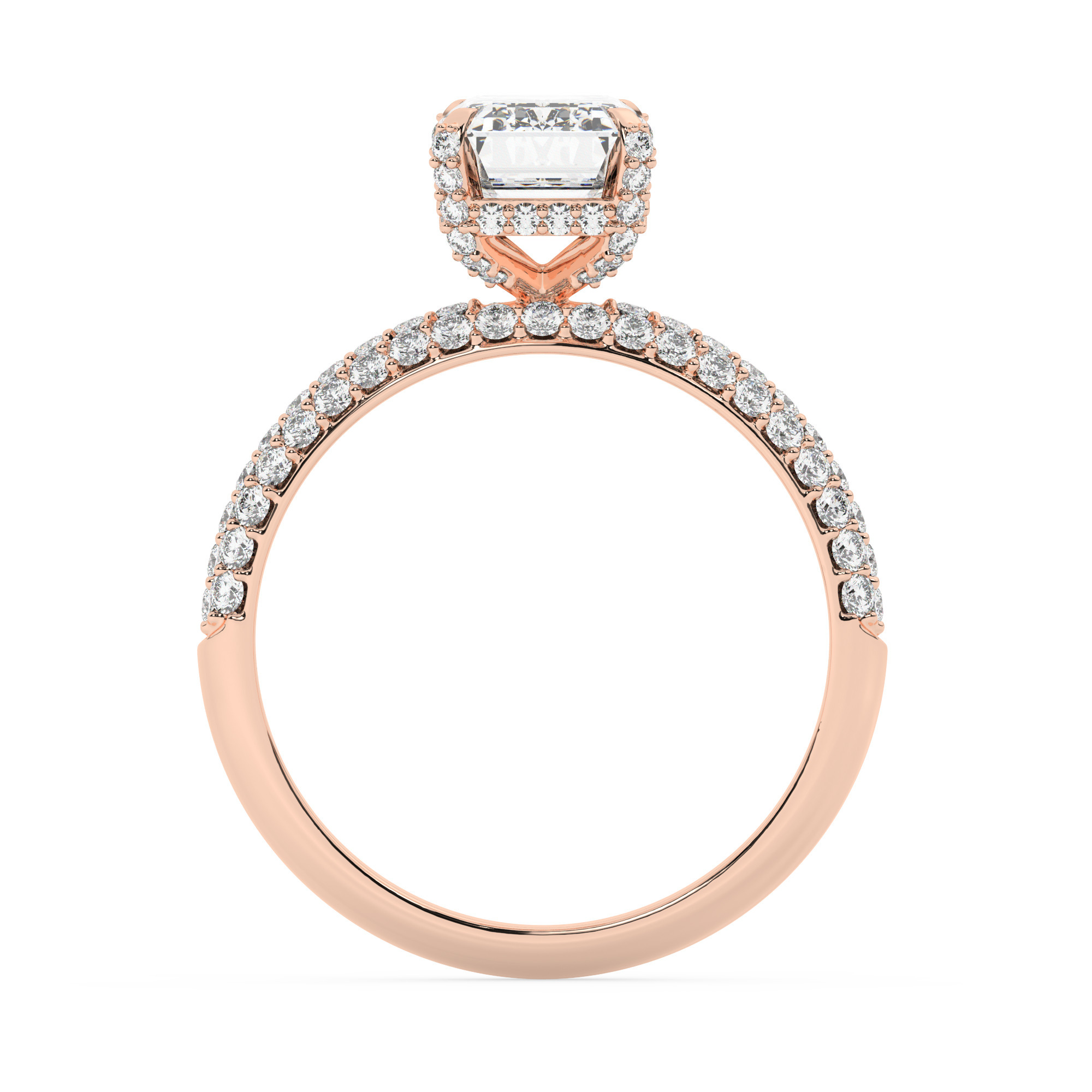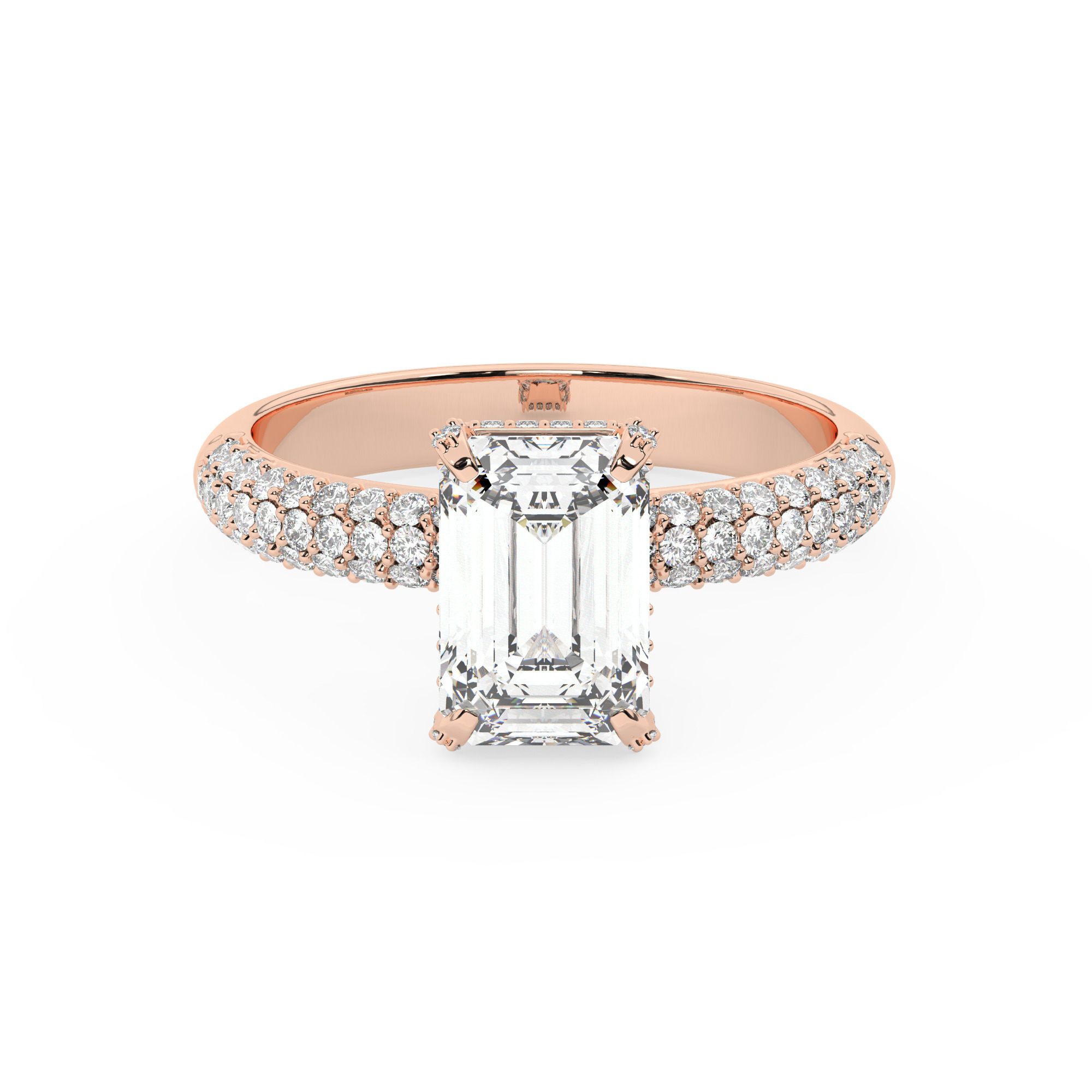 טבעת אירוסין סוליטר וזירקונים בצדדים דגם 50014 זהב אדום רוזגולד 14 קראט במרכז זירקוניה 3 קראט בחיתוך אמרלד מסביב ובצדדים זירקונים בחיתוך עגול