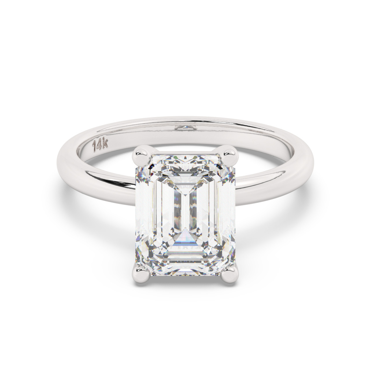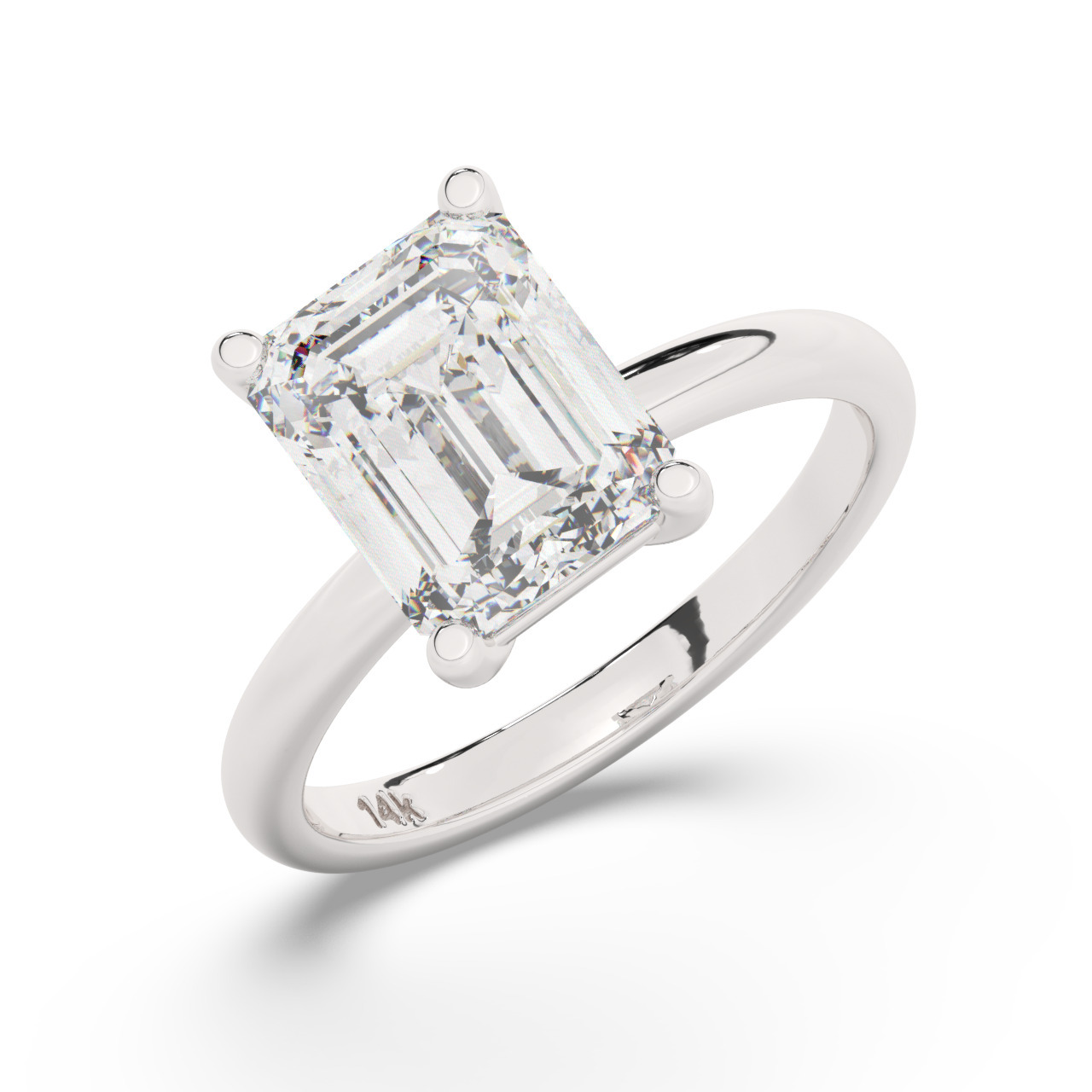 טבעת אירוסין סוליטר דגם 50016 זהב לבן 14 קראט במרכז זירקוניה במשקל כולל של 3 קראט בחיתוך אמרלד עם תעודה גמולוגית