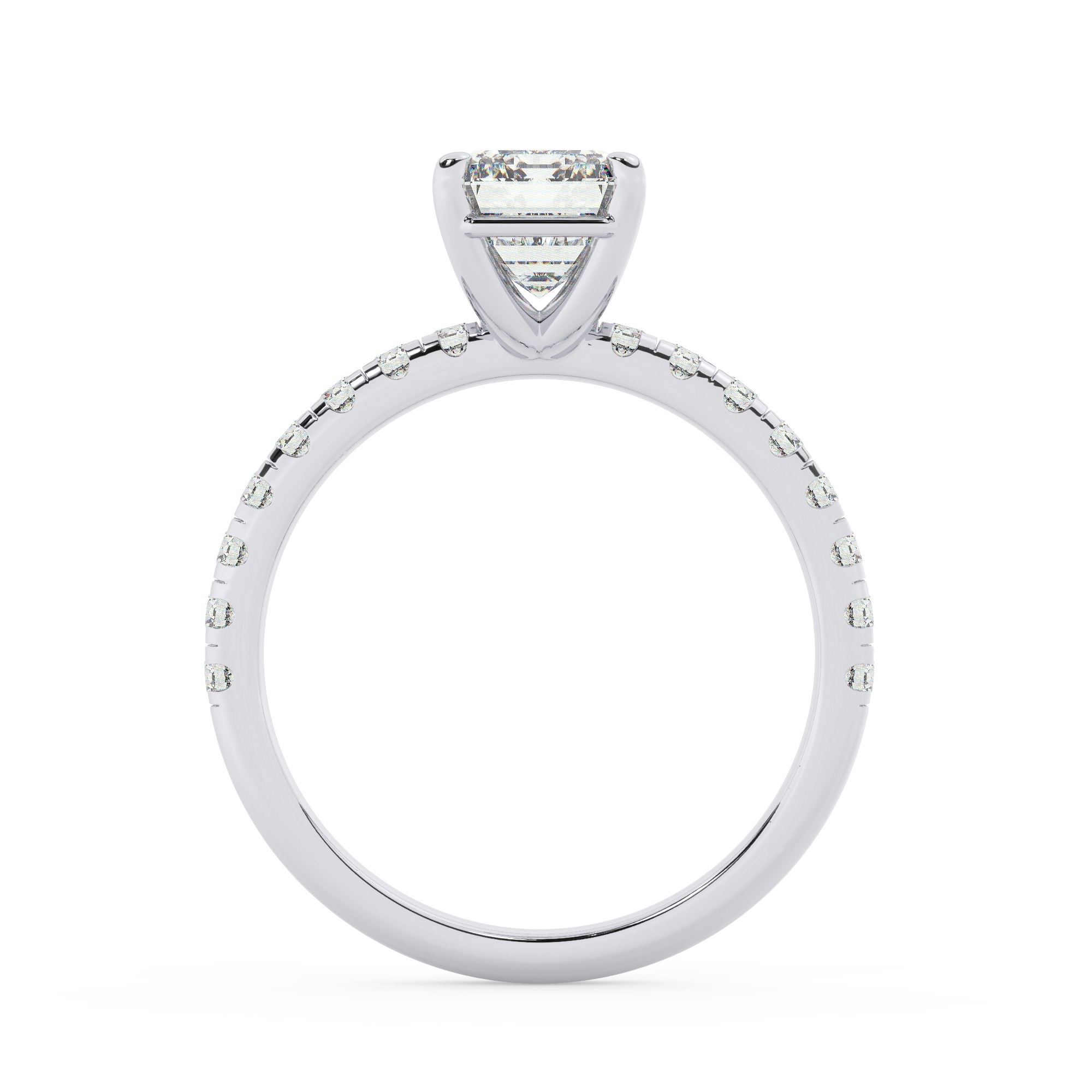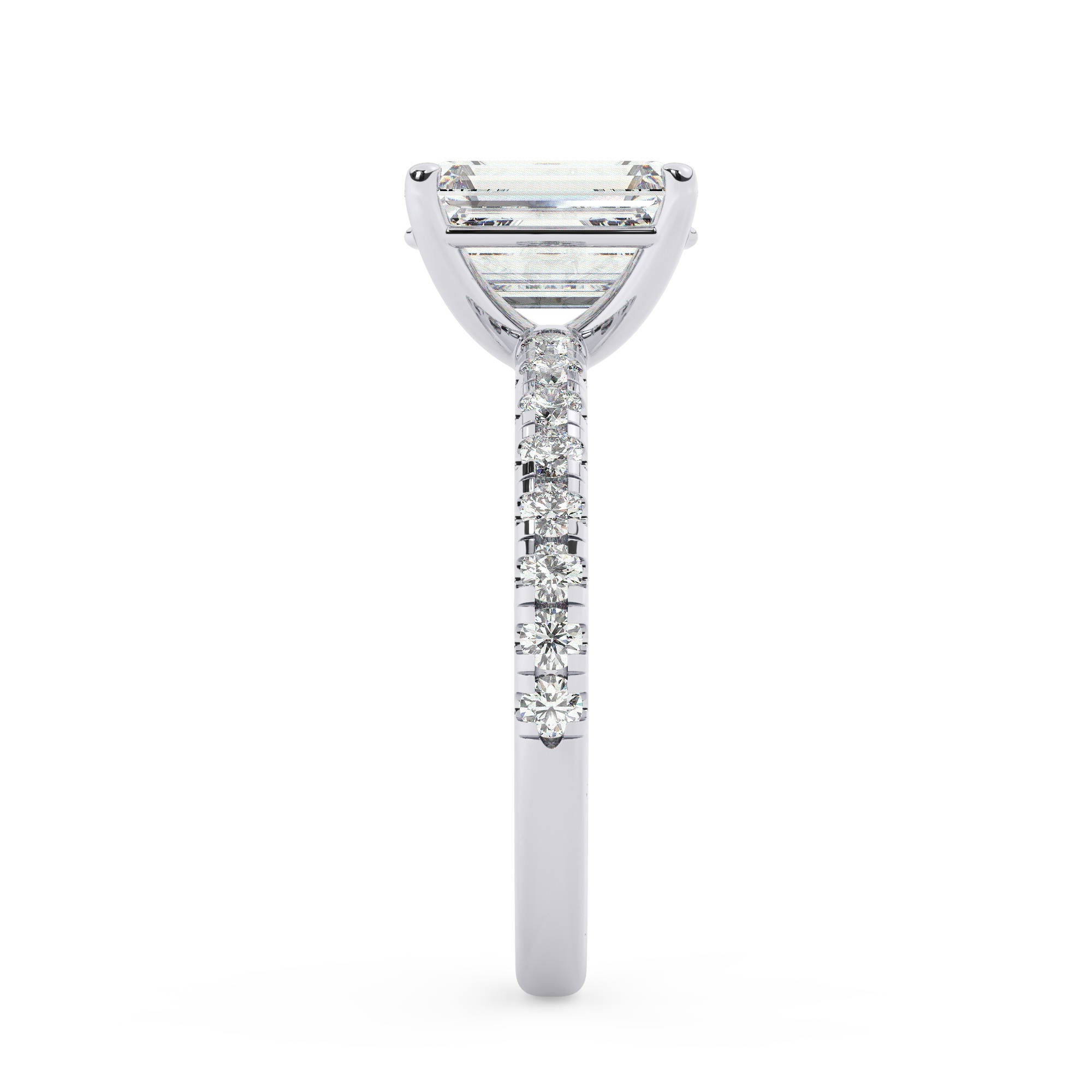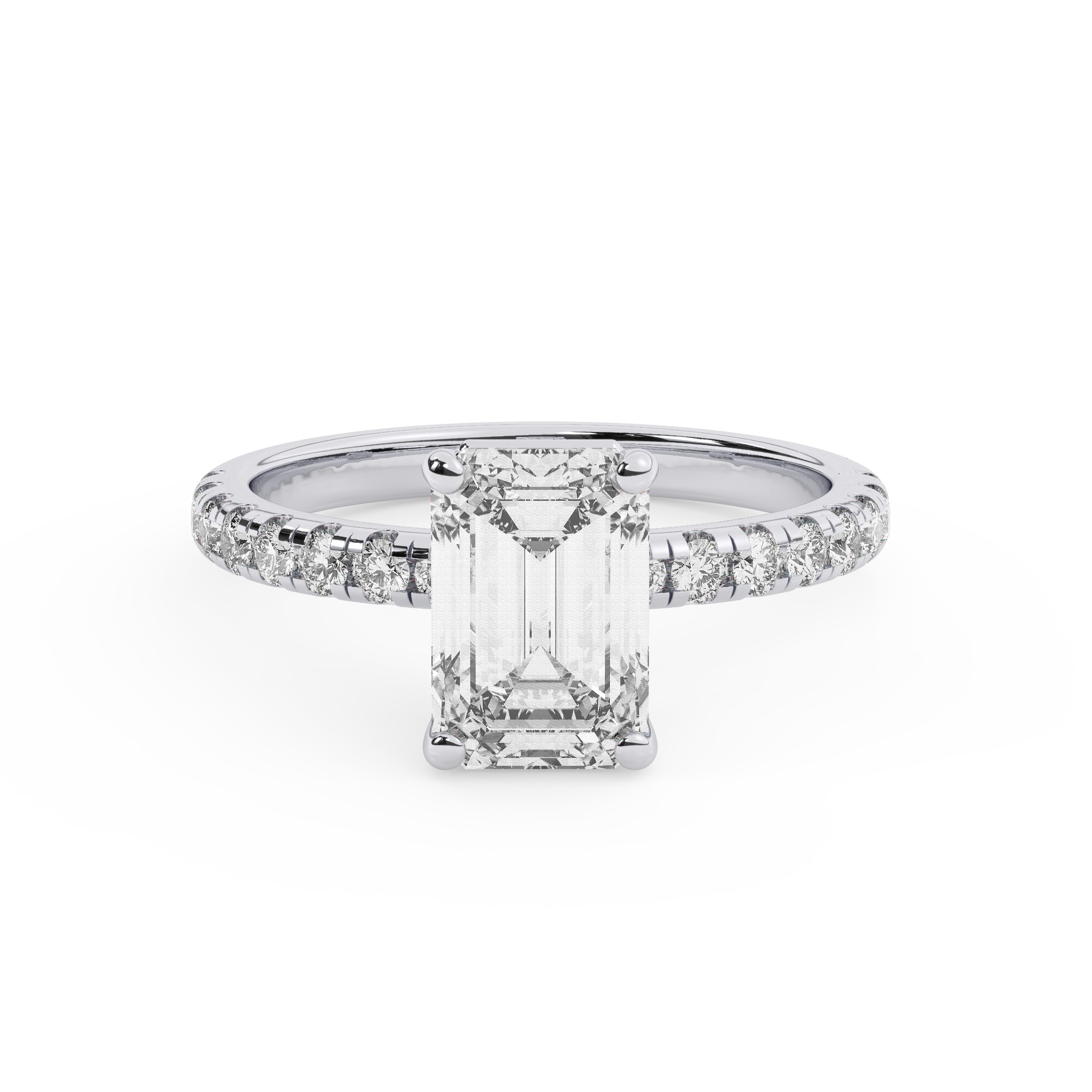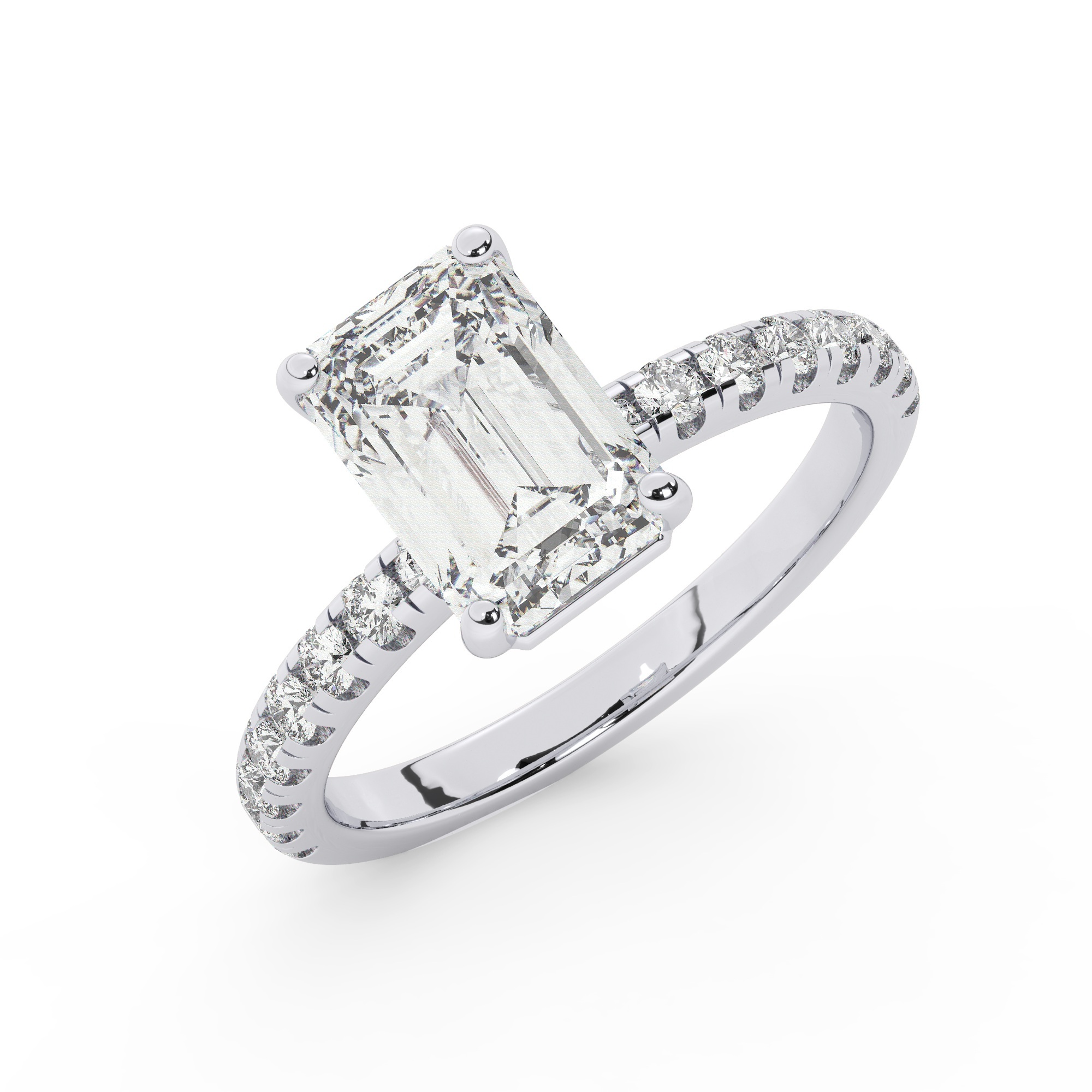 טבעת אירוסין סוליטר וזירקונים בצדדים דגם 50037 זהב לבן 14 קראט במרכז זירקוניה 3 קראט בחיתוך אמרלד מסביב ובצדדים זירקונים בחיתוך עגול