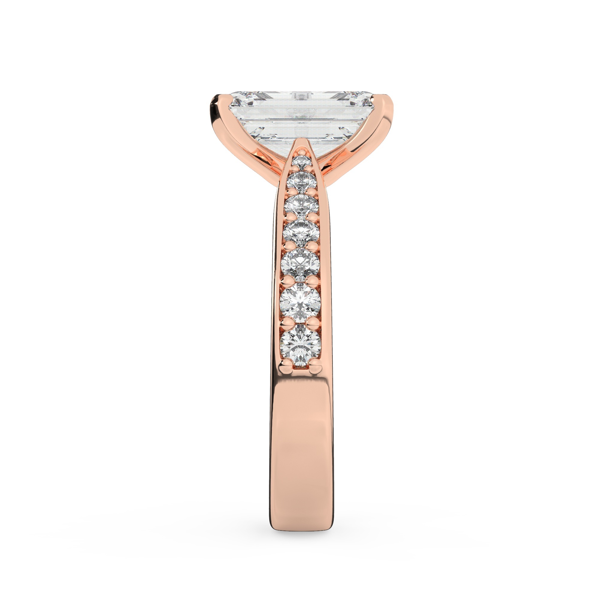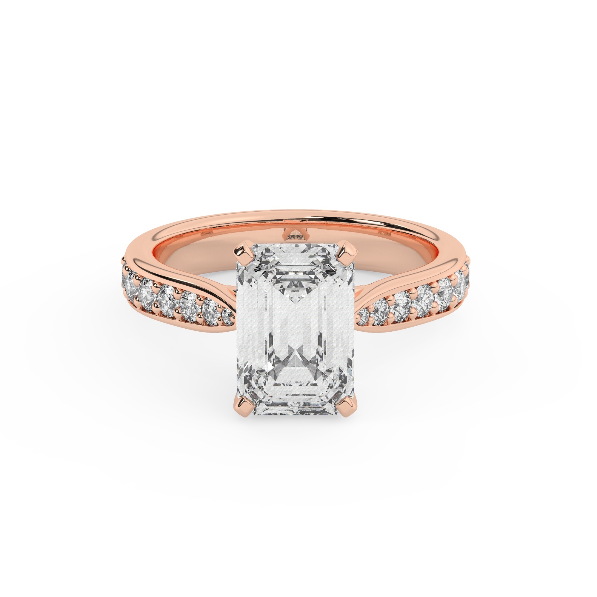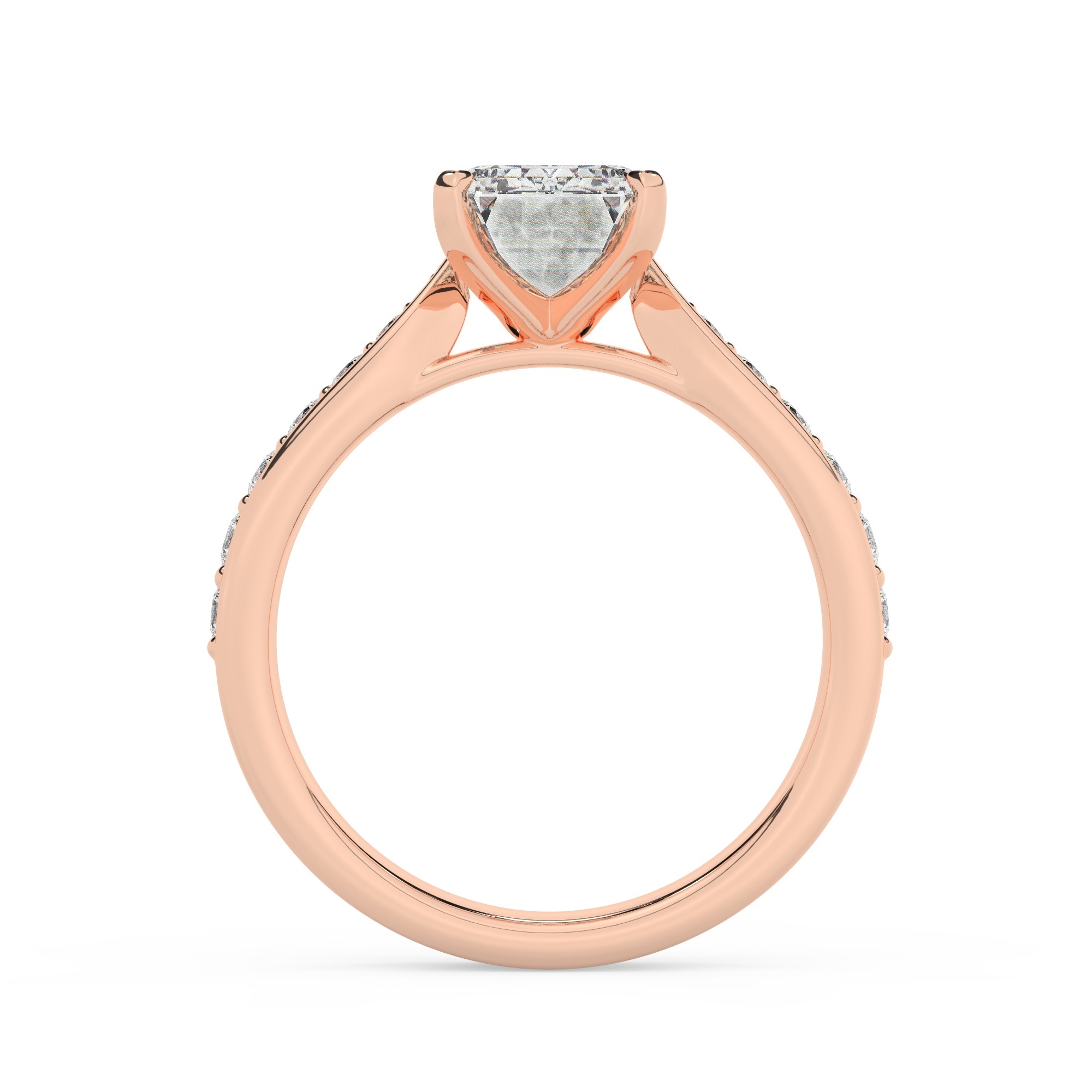 טבעת אירוסין סוליטר וזירקונים בצדדים דגם 50017 זהב אדום רוזגולד 14 קראט במרכז זירקוניה 4 קראט בחיתוך אמרלד מסביב ובצדדים זירקונים בחיתוך עגול