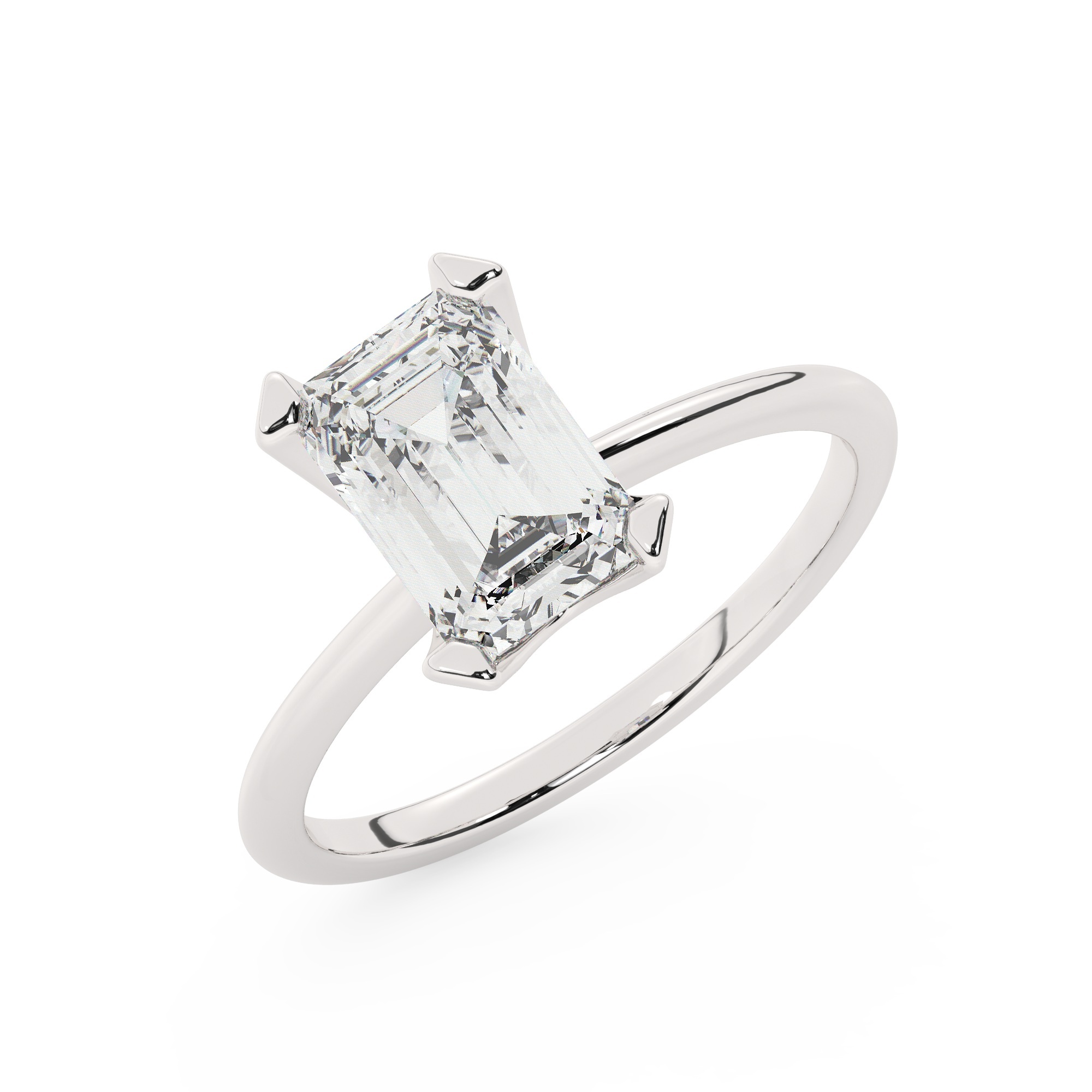 טבעת אירוסין סוליטר דגם 50023 זהב לבן 14 קראט במרכז זירקוניה במשקל כולל של 4 קראט בחיתוך אמרלד עם תעודה גמולוגית