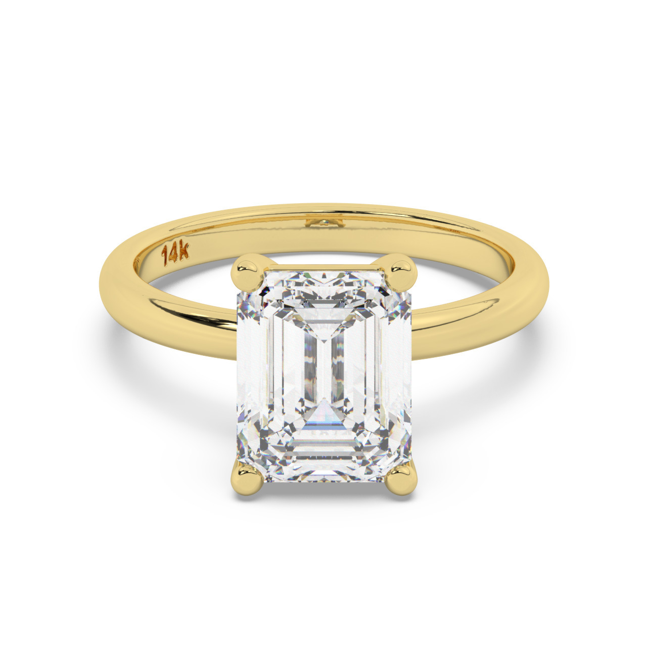 טבעת אירוסין סוליטר דגם 50016 זהב צהוב 14 קראט במרכז זירקוניה במשקל כולל של 4 קראט בחיתוך אמרלד עם תעודה גמולוגית