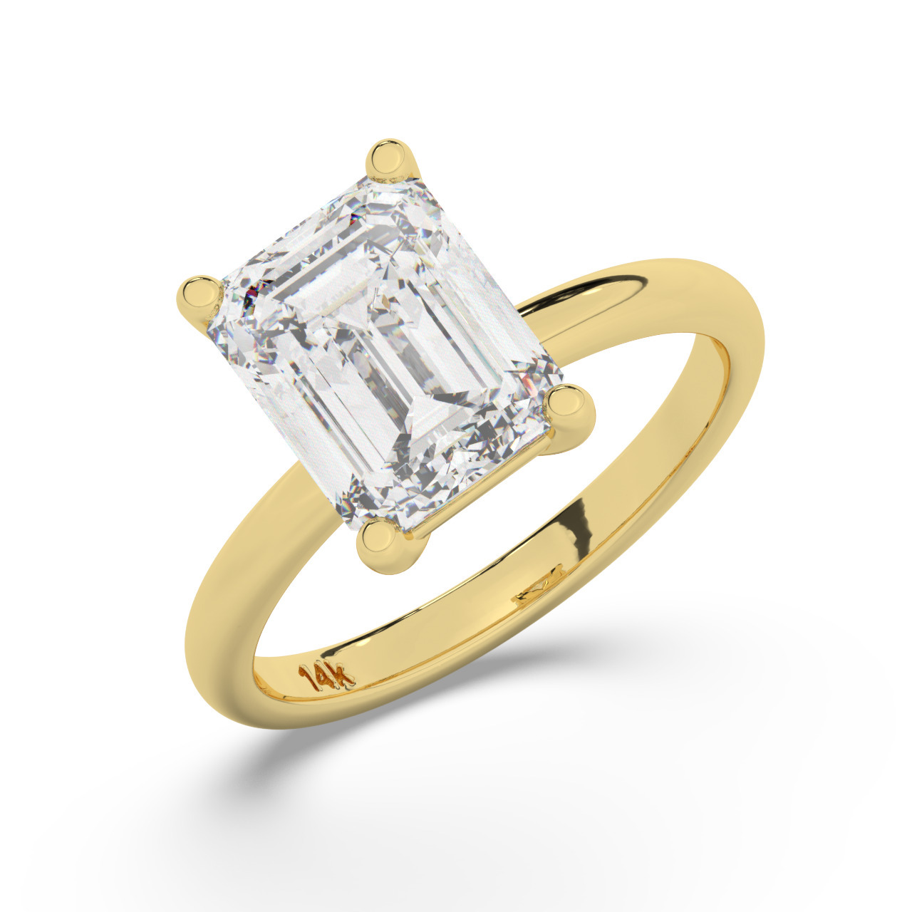 טבעת אירוסין סוליטר דגם 50016 כסף מצופה זהב צהוב במרכז זירקוניה במשקל כולל של 5 קראט בחיתוך אמרלד עם תעודה גמולוגית