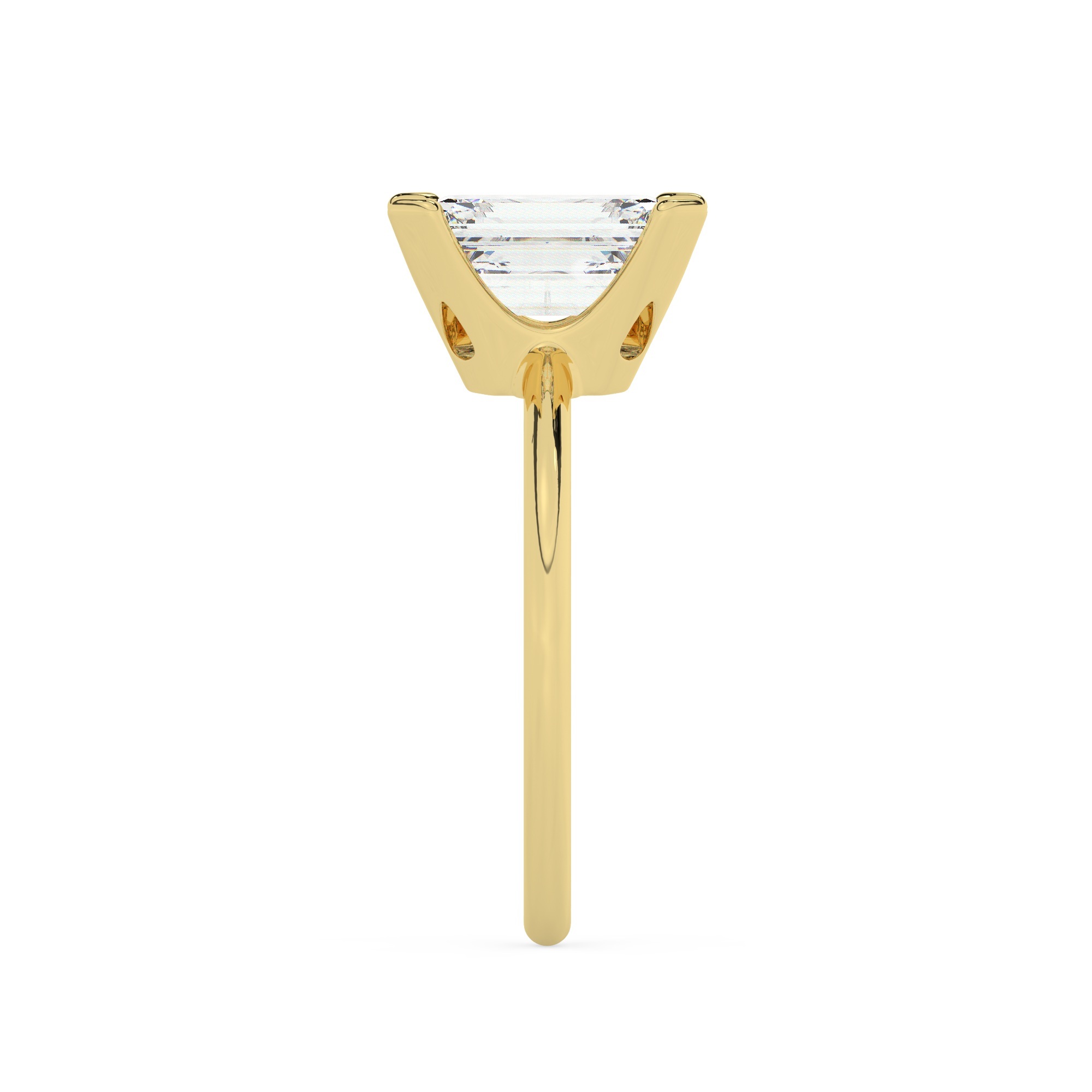טבעת אירוסין סוליטר דגם 50023 כסף מצופה זהב צהוב במרכז זירקוניה במשקל כולל של 5 קראט בחיתוך אמרלד עם תעודה גמולוגית