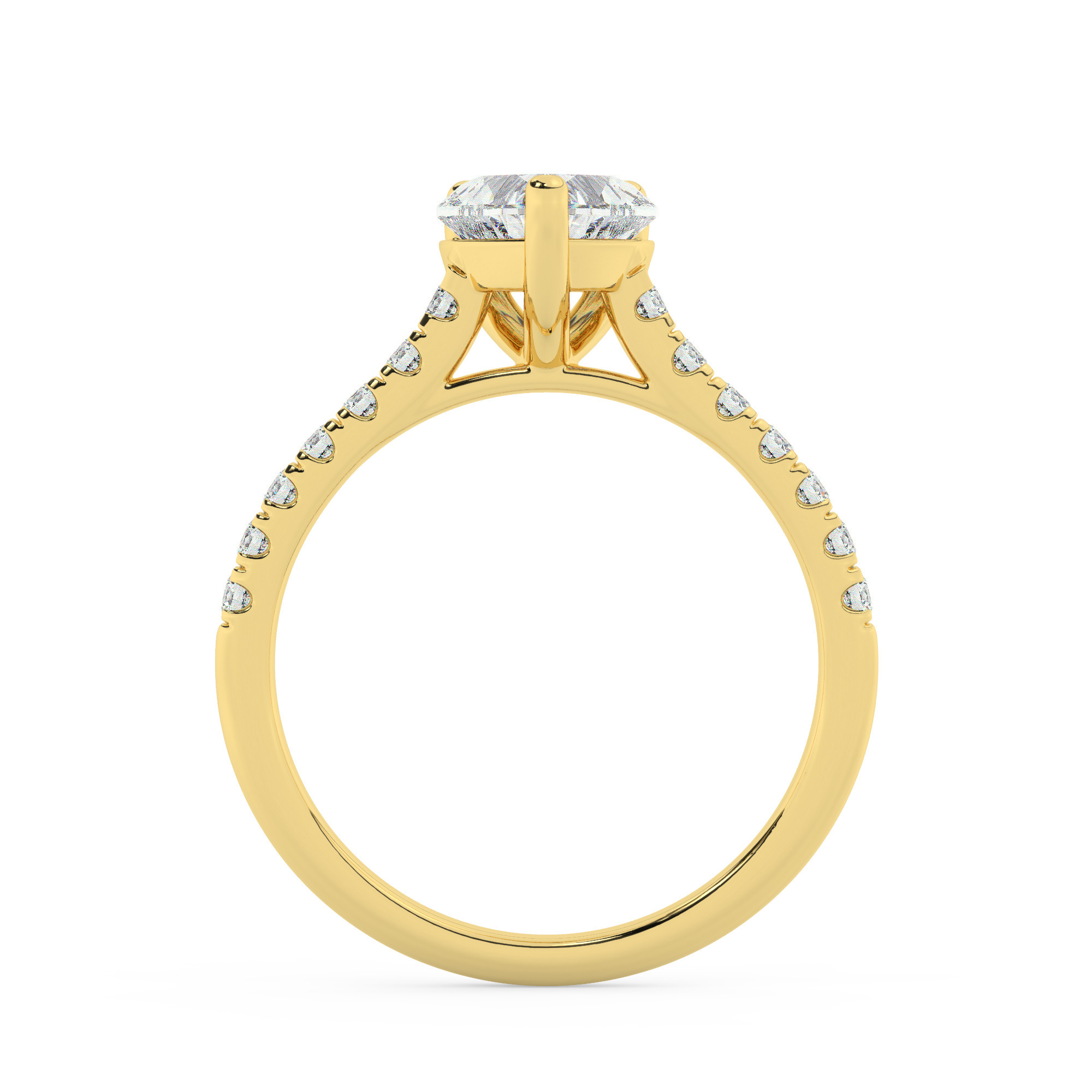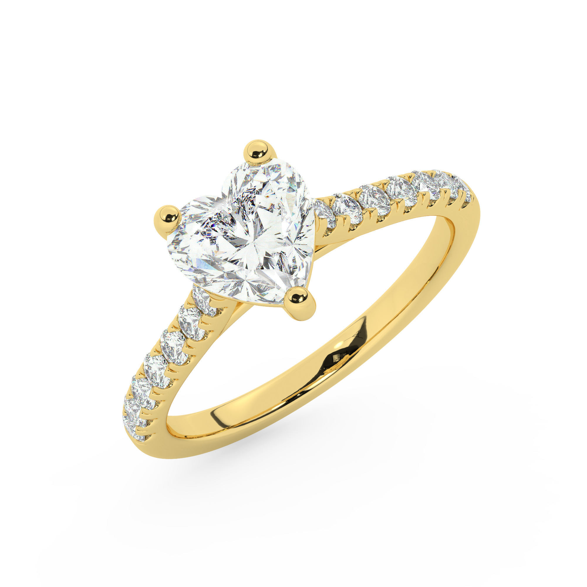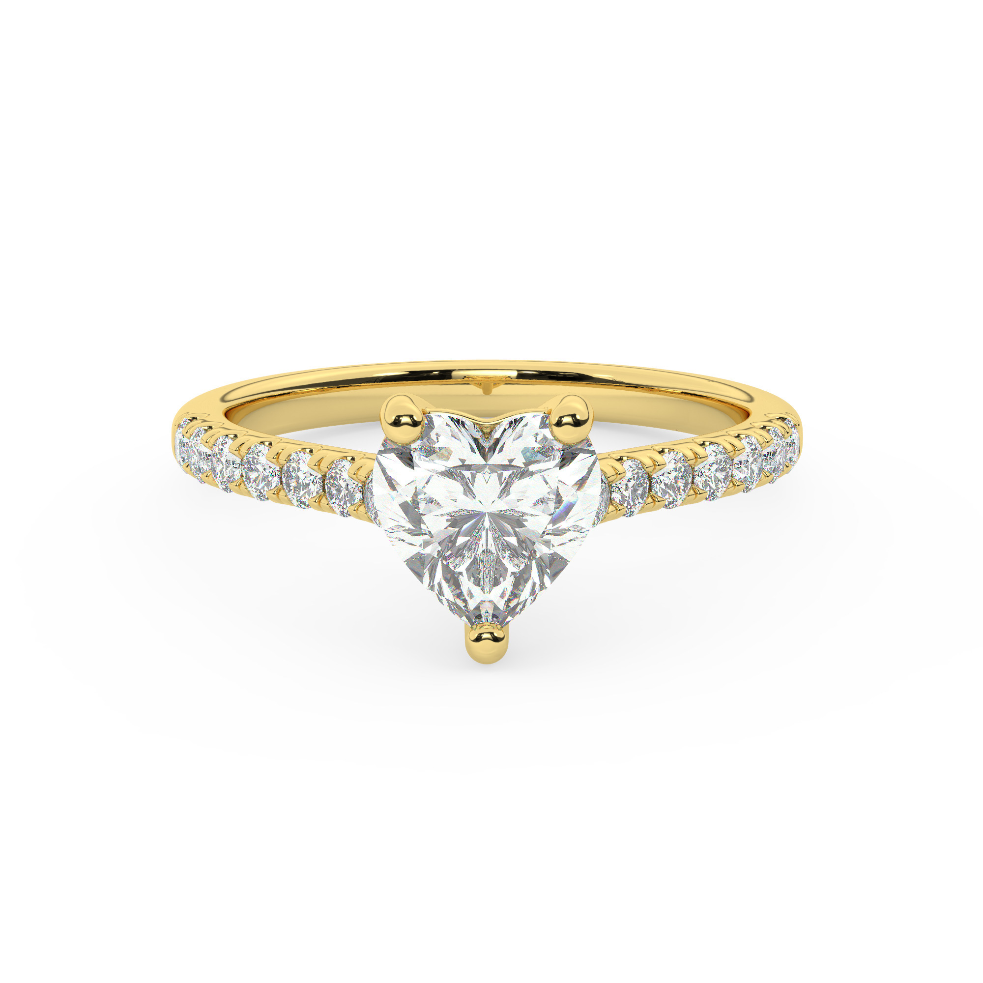 טבעת אירוסין סוליטר ויהלומים בצדדים דגם 50019 זהב צהוב 14 קראט במרכז זירקוניה 0.50 קראט בחיתוך לב מסביב ובצדדים זירקונים בחיתוך עגול