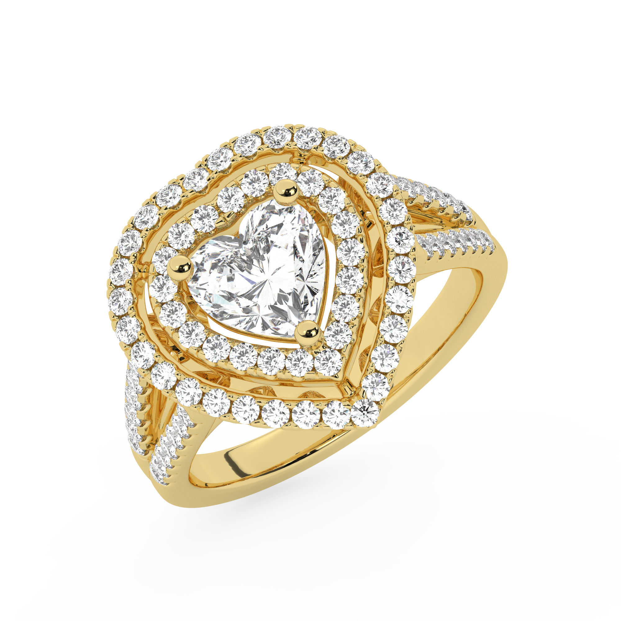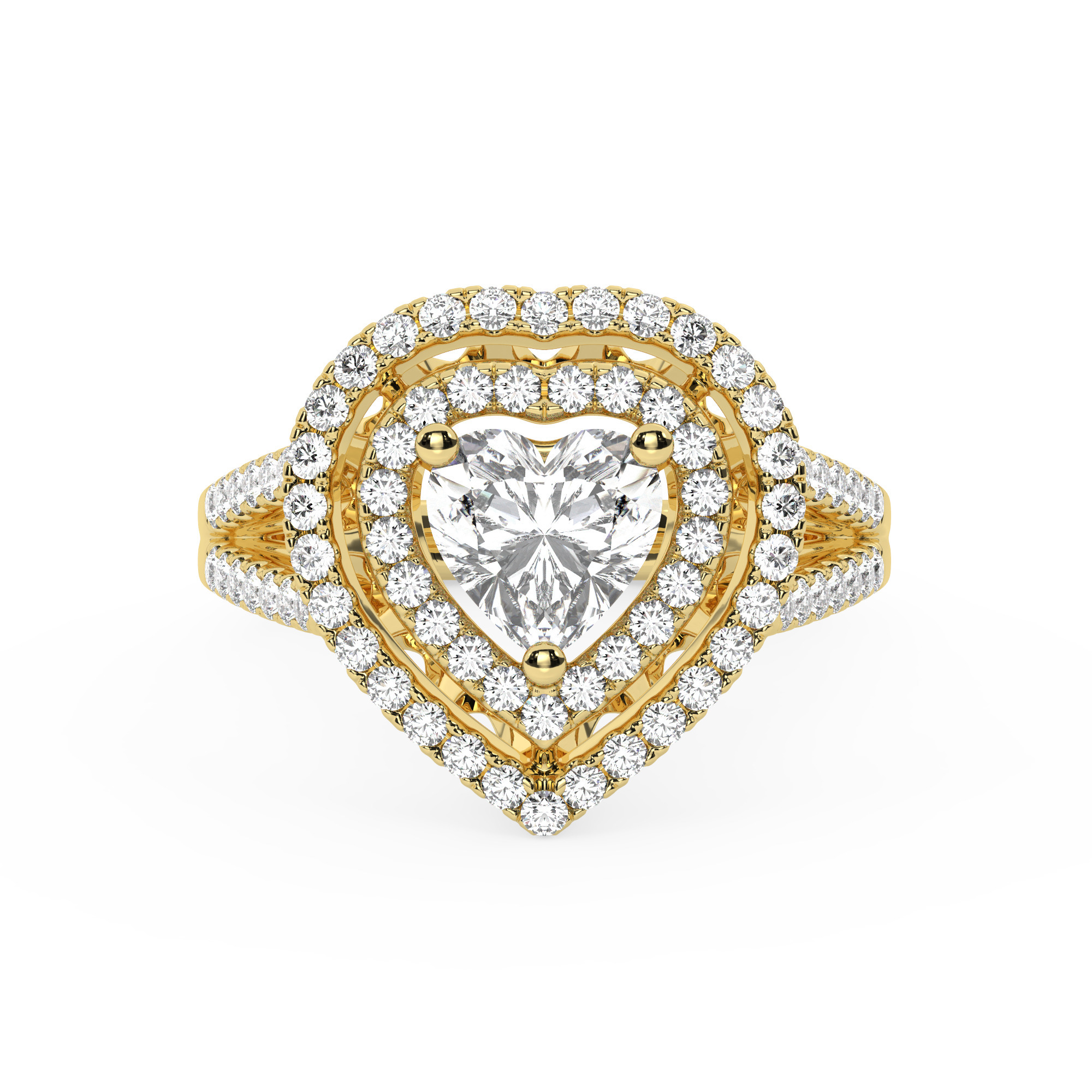 טבעת אירוסין היילו דגם 50025 זהב צהוב 14 קראט במרכז זירקוניה 0.50 קראט בחיתוך לב מסביב ובצדדים זירקונים בחיתוך עגול