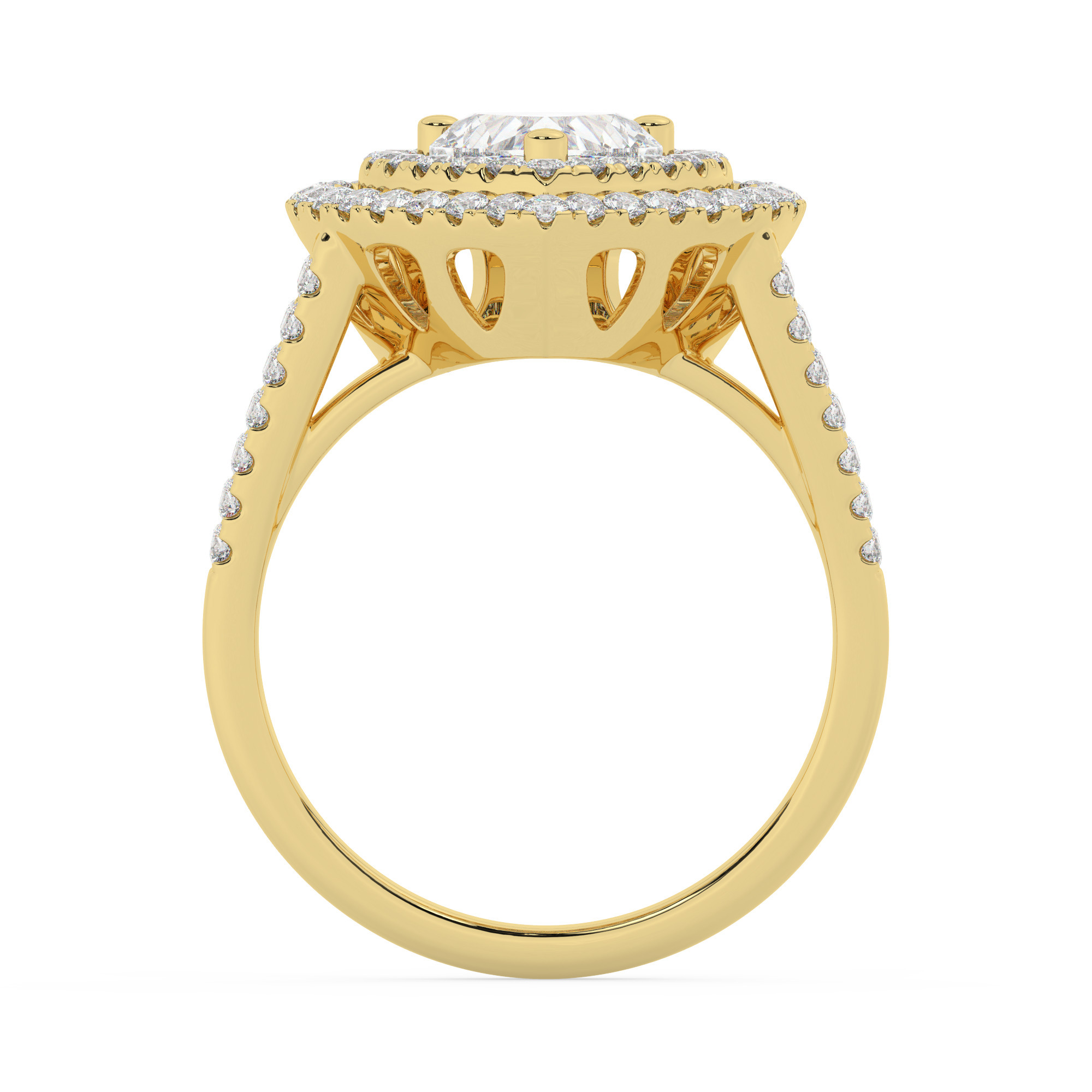 50% הנחהטבעת אירוסין היילו דגם ליטל זהב צהוב 14 קראט במרכז יהלום מעבדה 1 קראט מסביבו ובצדדים שורה של יהלומים עם תעודה גמולוגית אירופאית IGI טבעת הצעת נישואין