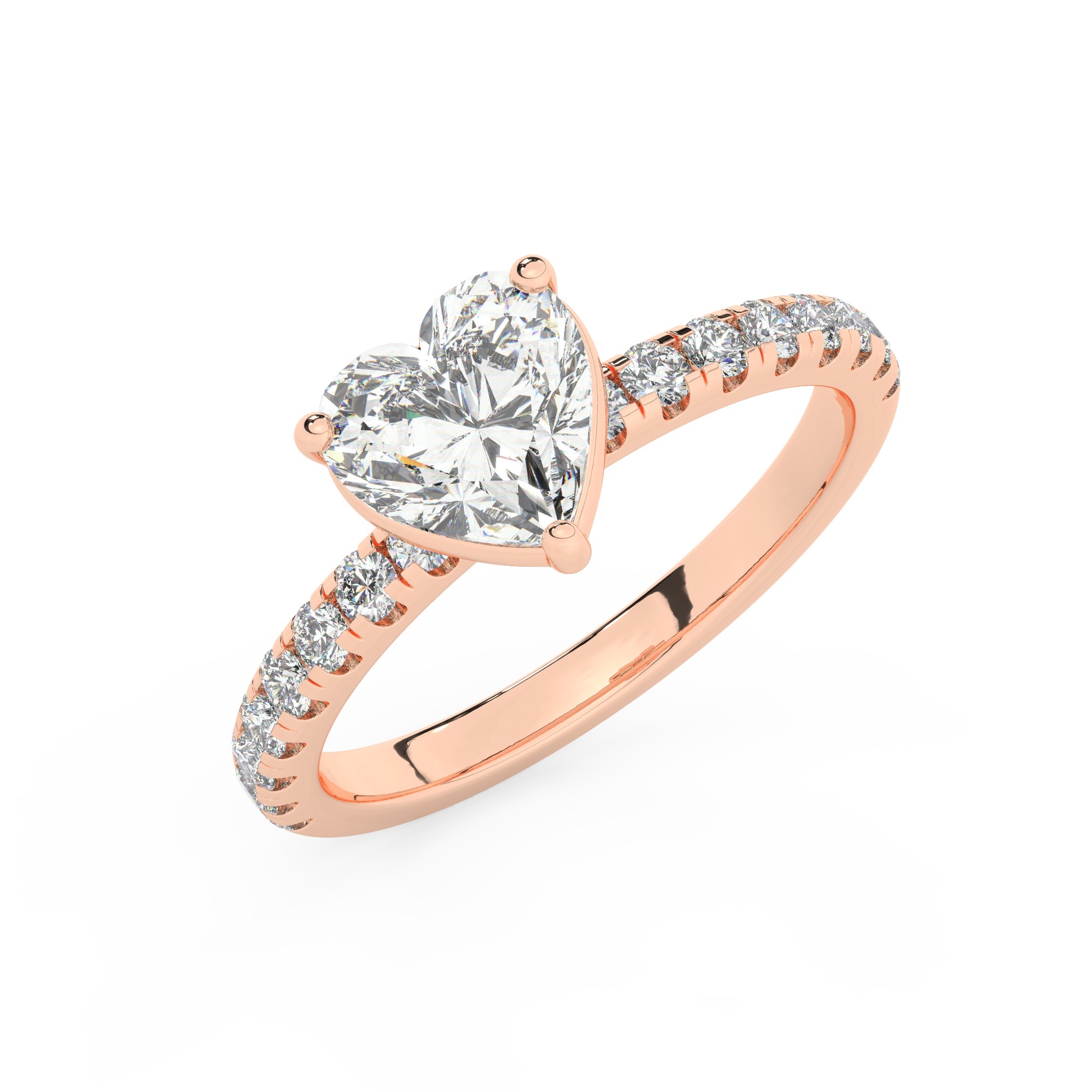 טבעת אירוסין סוליטר וזירקונים בצדדים דגם 50037 זהב אדום רוזגולד 14 קראט במרכז זירקוניה 0.75 קראט בחיתוך לב מסביב ובצדדים זירקונים בחיתוך עגול