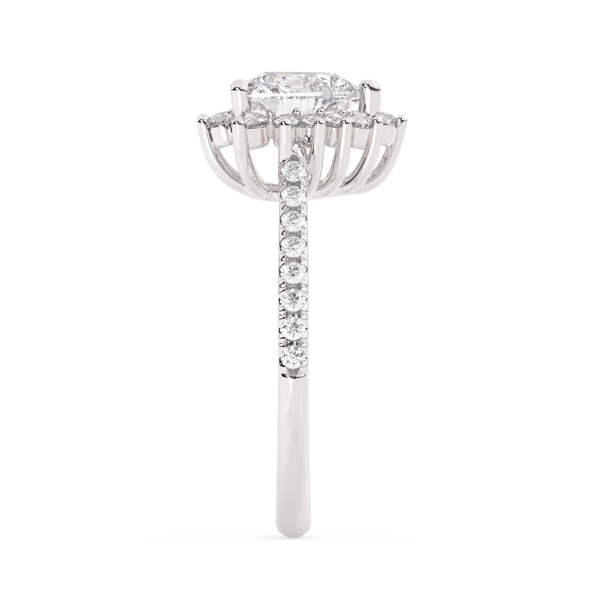 טבעת אירוסין היילו דגם 50024 זהב לבן 14 קראט במרכז זירקוניה 0.75 קראט בחיתוך לב מסביב ובצדדים זירקונים בחיתוך עגול