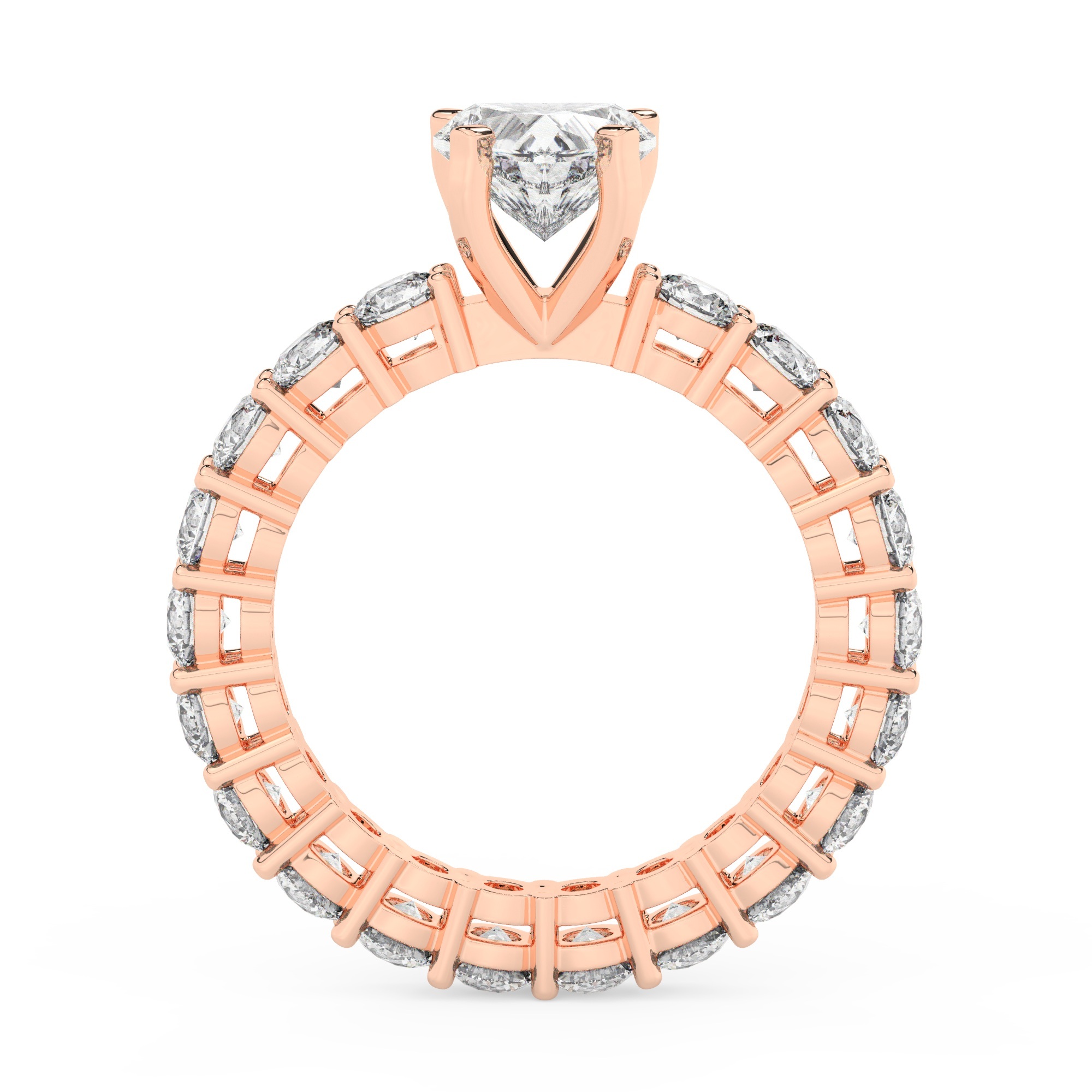 טבעת אירוסין סוליטר וזירקונים בצדדים איטרנטיני דגם 50044 זהב אדום רוזגולד 14 קראט במרכז זירקוניה 1 קראט בחיתוך לב מסביב ובצדדים זירקונים בחיתוך עגול