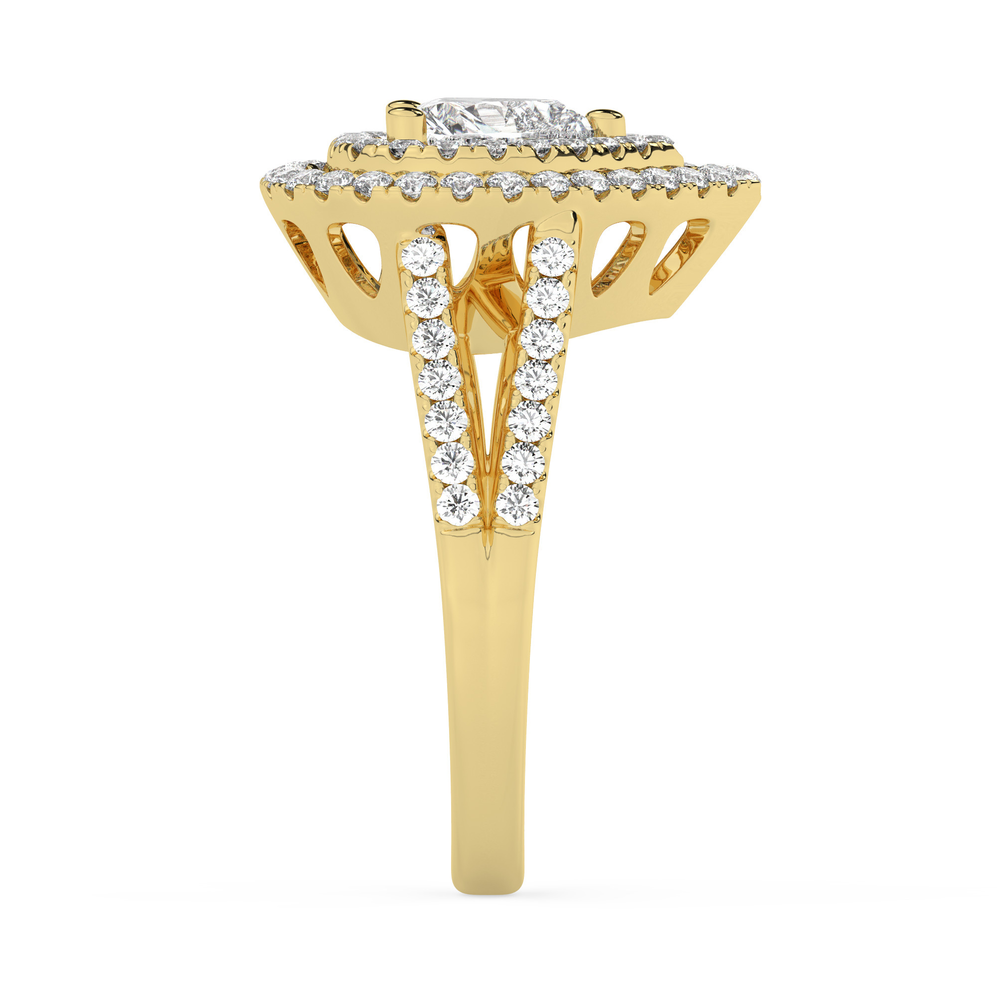 50% הנחהטבעת אירוסין היילו דגם ליטל זהב צהוב 14 קראט במרכז יהלום מעבדה 1 קראט מסביבו ובצדדים שורה של יהלומים עם תעודה גמולוגית אירופאית IGI טבעת הצעת נישואין