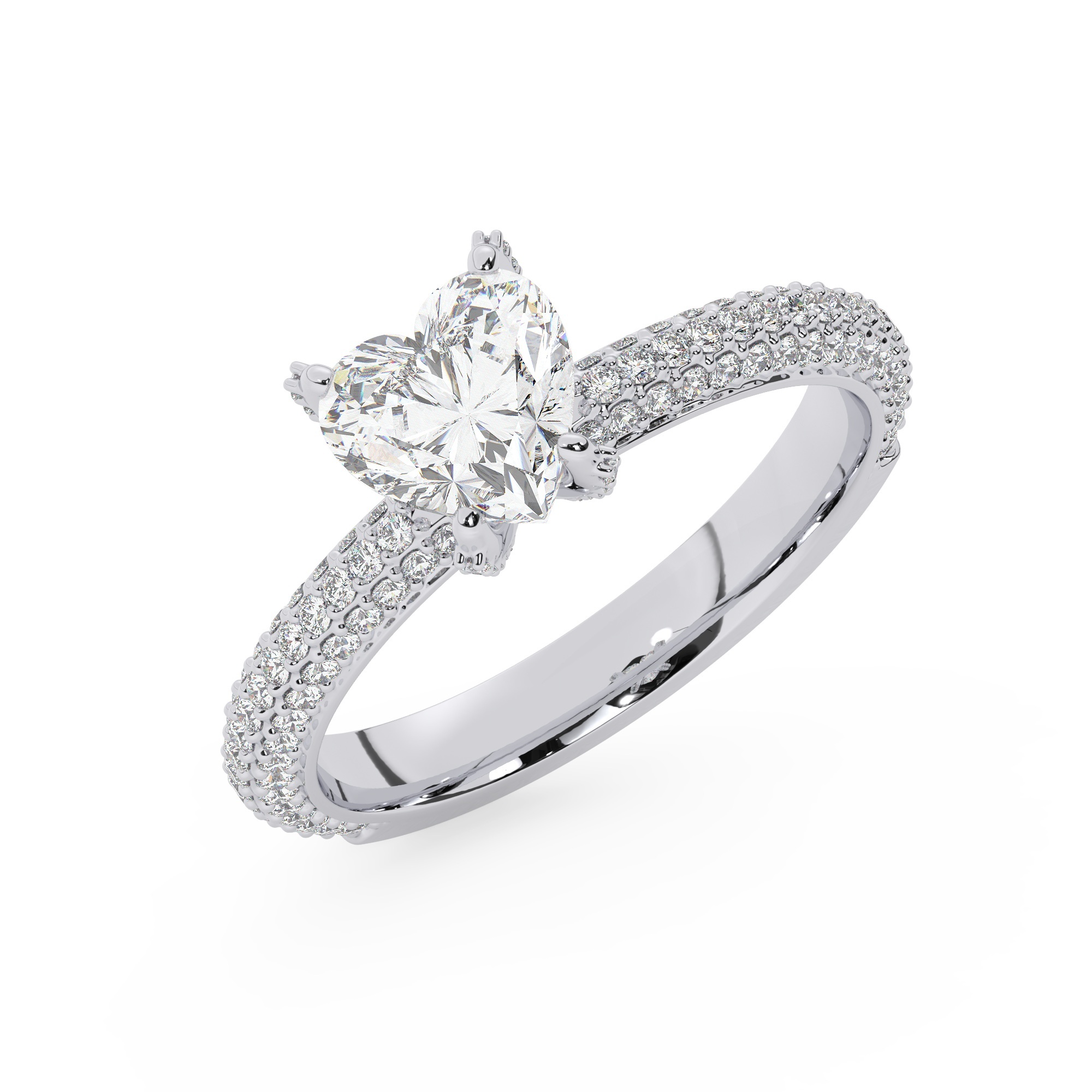 טבעת אירוסין סוליטר ויהלומים בצדדים דגם 50012 זהב לבן 14 קראט במרכז זירקוניה 1.50 קראט בחיתוך לב מסביב ובצדדים זירקונים בחיתוך עגול