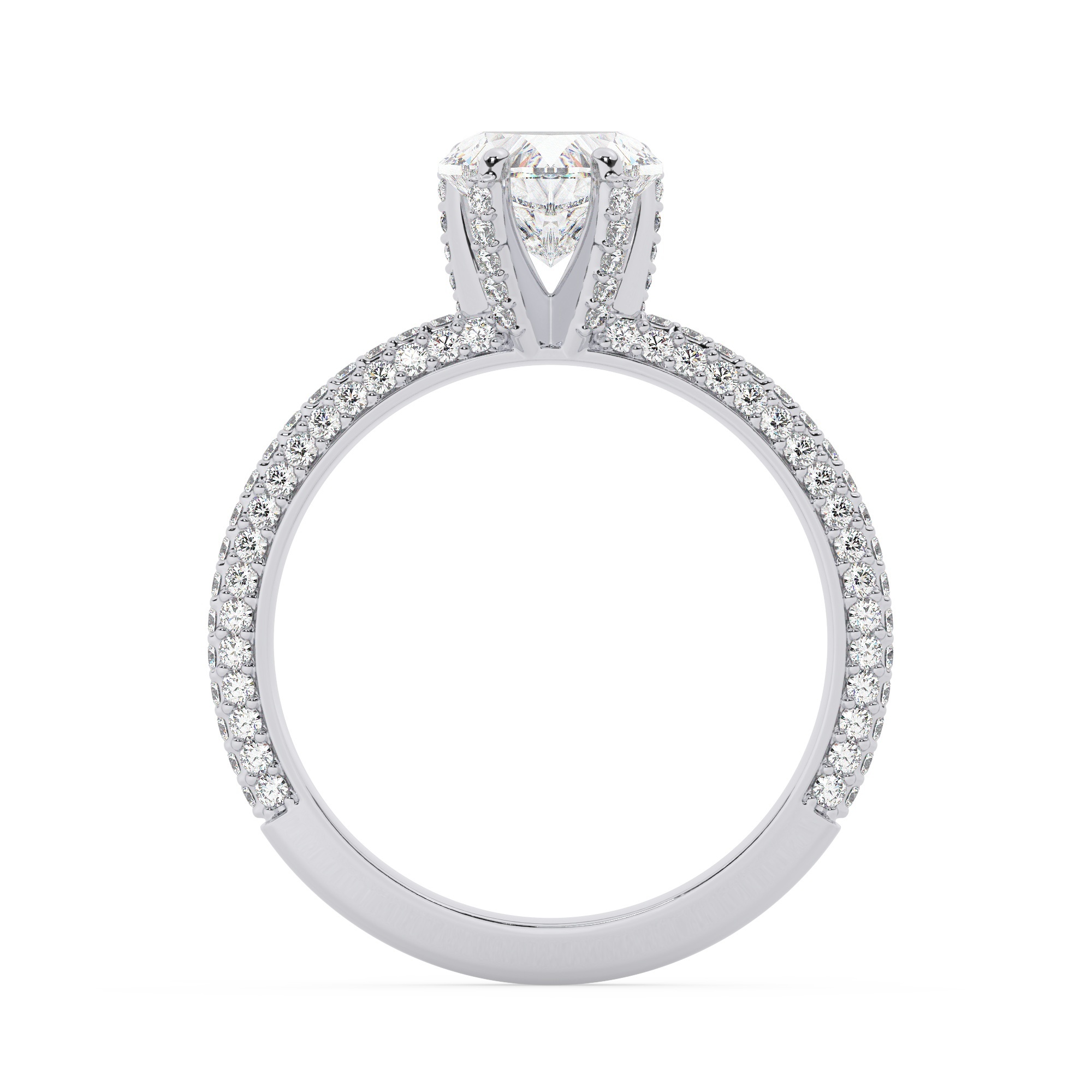 50% הנחהטבעת אירוסין דגם מירב זהב לבן 14 קראט אבן מעבדה מוסונייט בחיתוך פרינסס 0.50 קראט ובצדדים שתי אבני מעבדה בחיתוך טיפה עם תעודה גמולוגית בינלאומית GRA