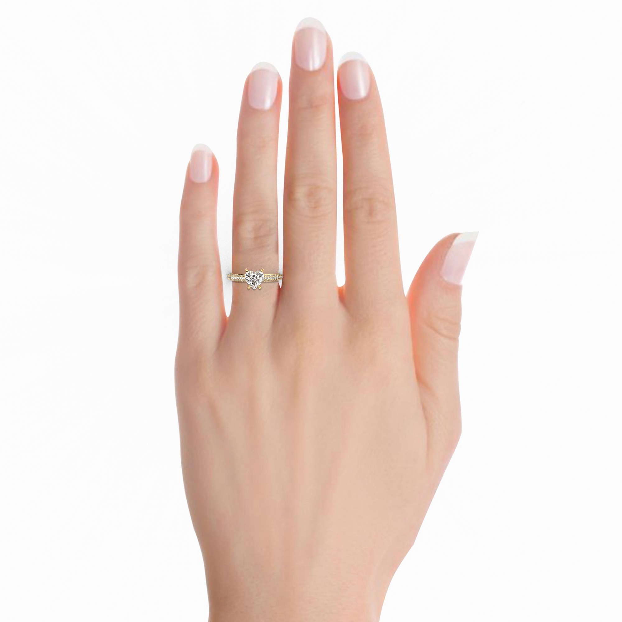 טבעת אירוסין סוליטר ויהלומים בצדדים דגם 50012 זהב צהוב 14 קראט במרכז זירקוניה 1.50 קראט בחיתוך לב מסביב ובצדדים זירקונים בחיתוך עגול